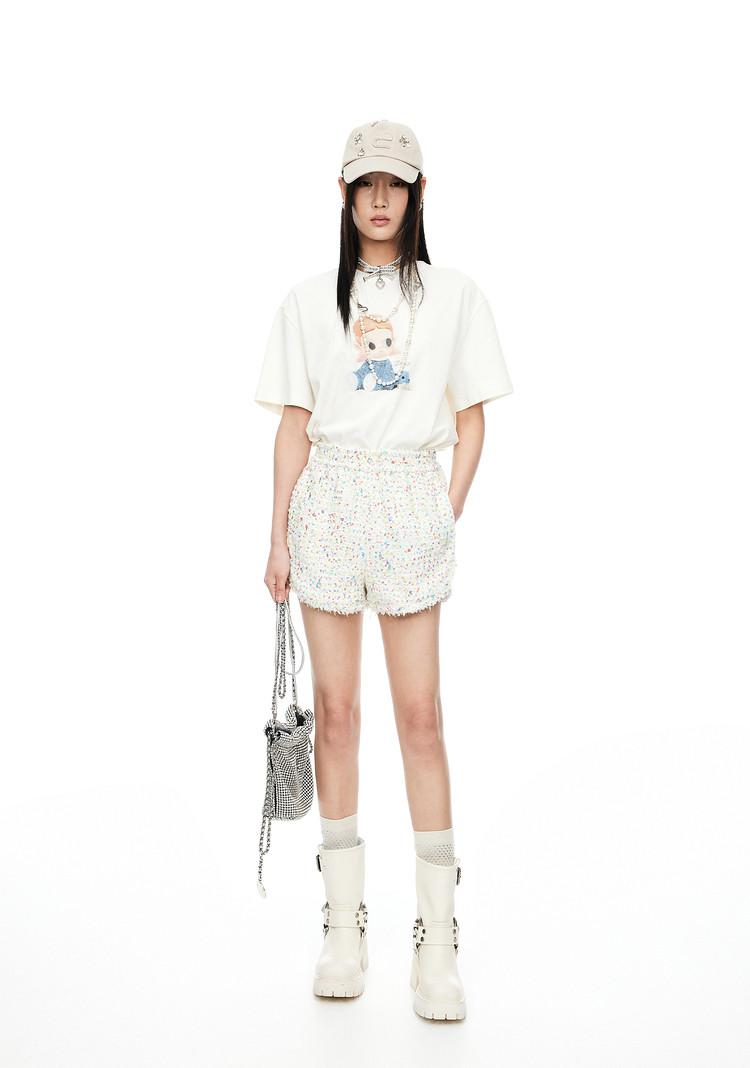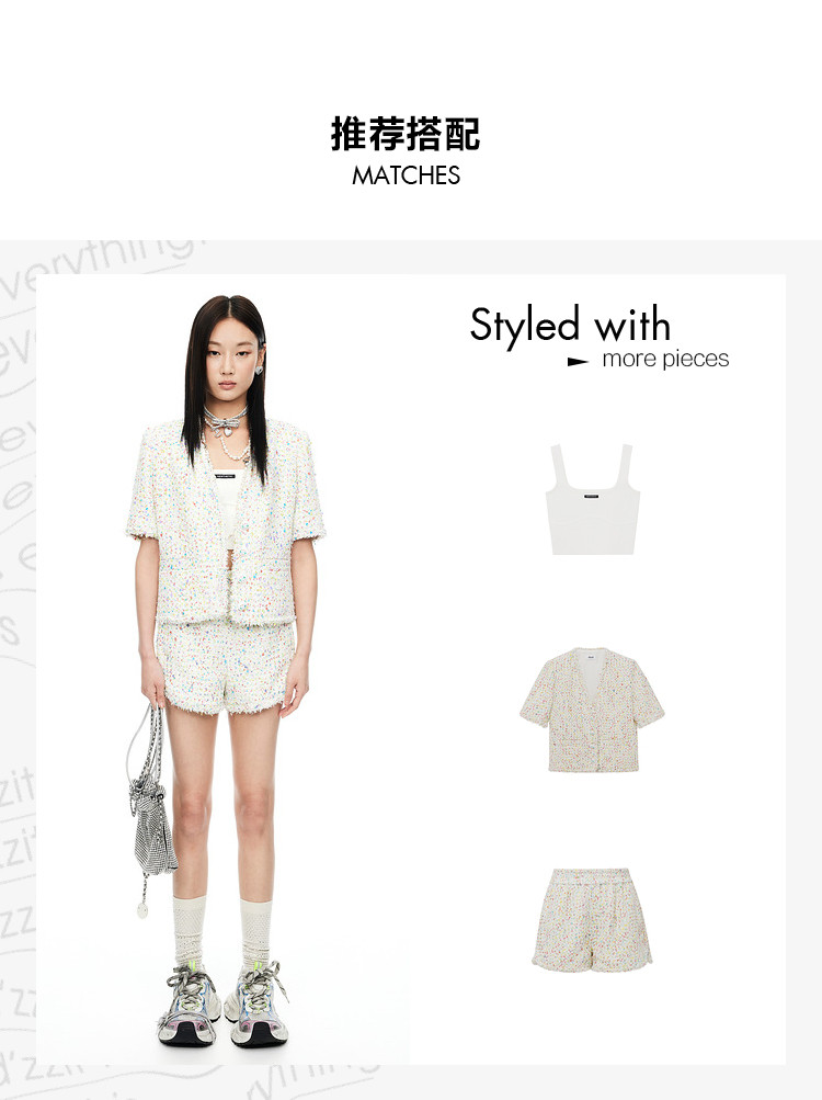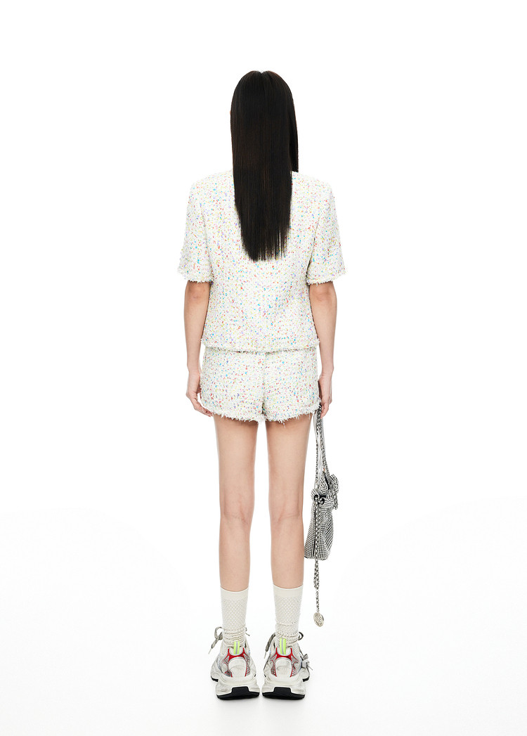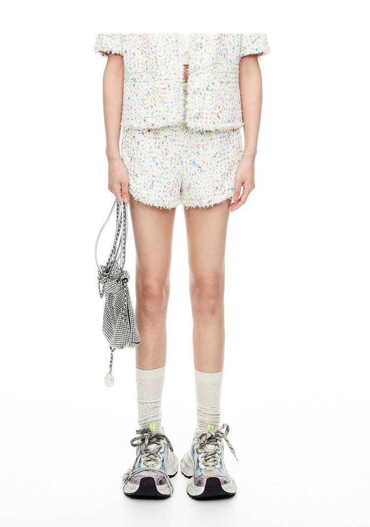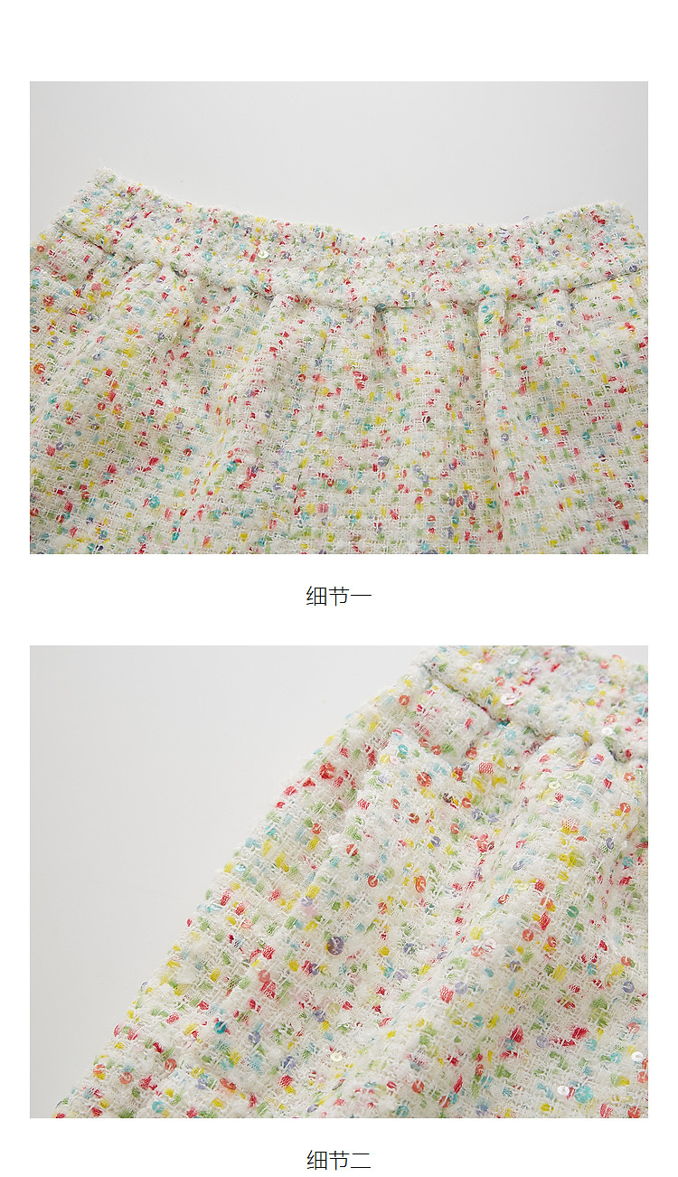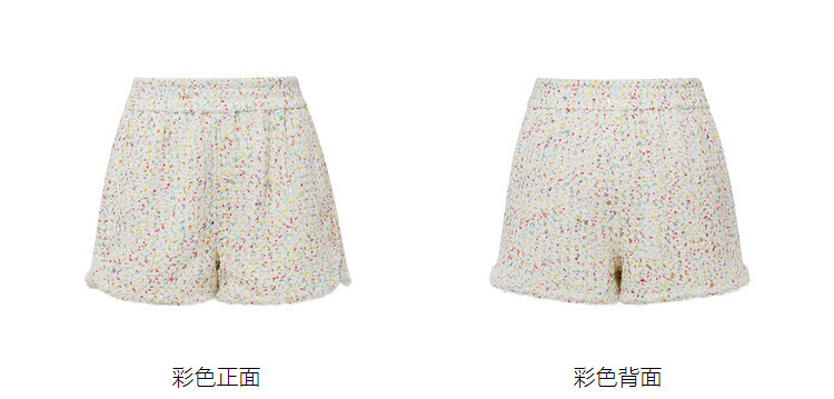 商品名称:地素短裤夏季彩色氛围松紧腰粗花呢设计裤子女 006603