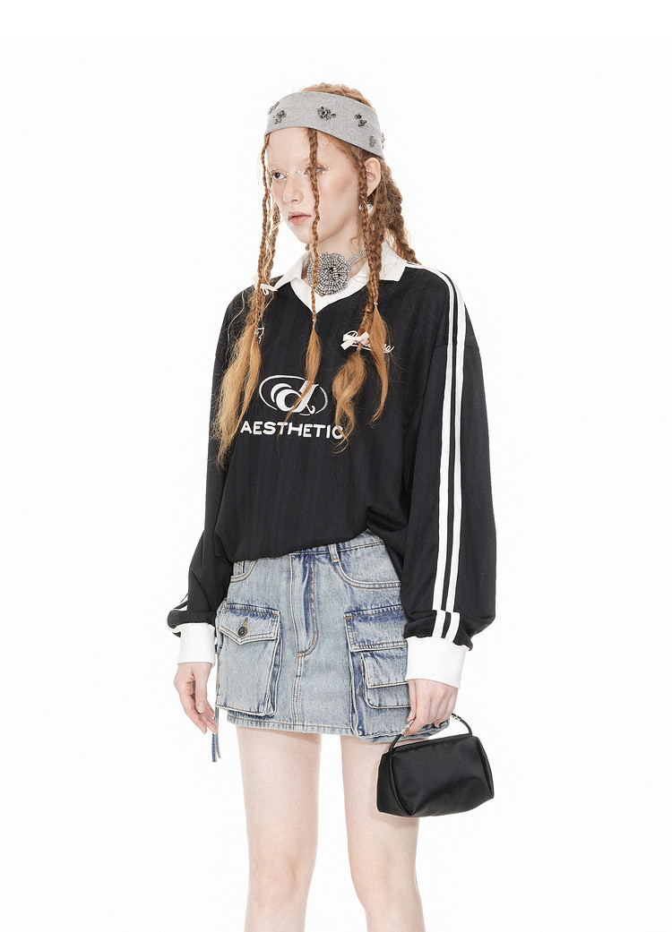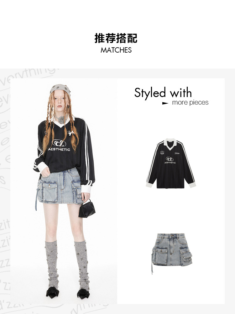 商品名称:地素暗纹提花球衣夏季专柜美式运动宽松长袖上衣女 414155