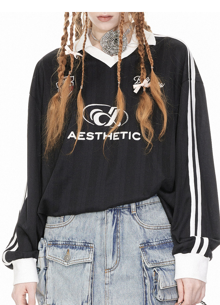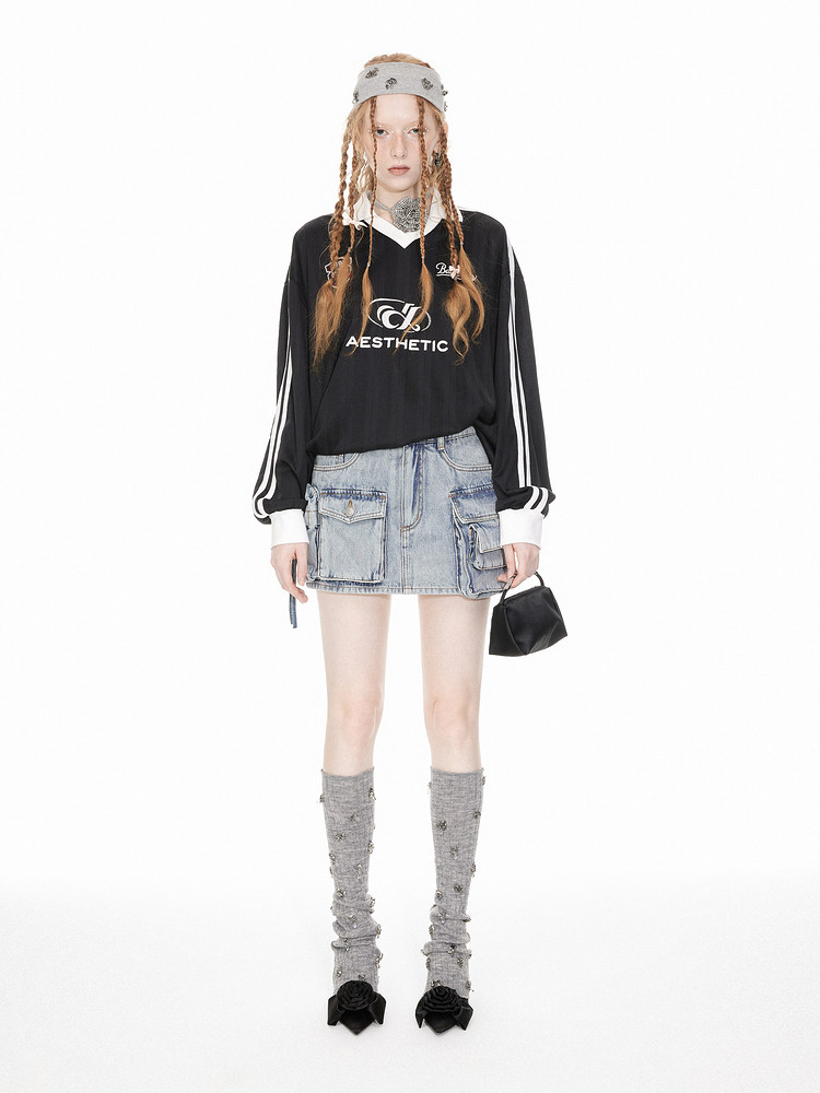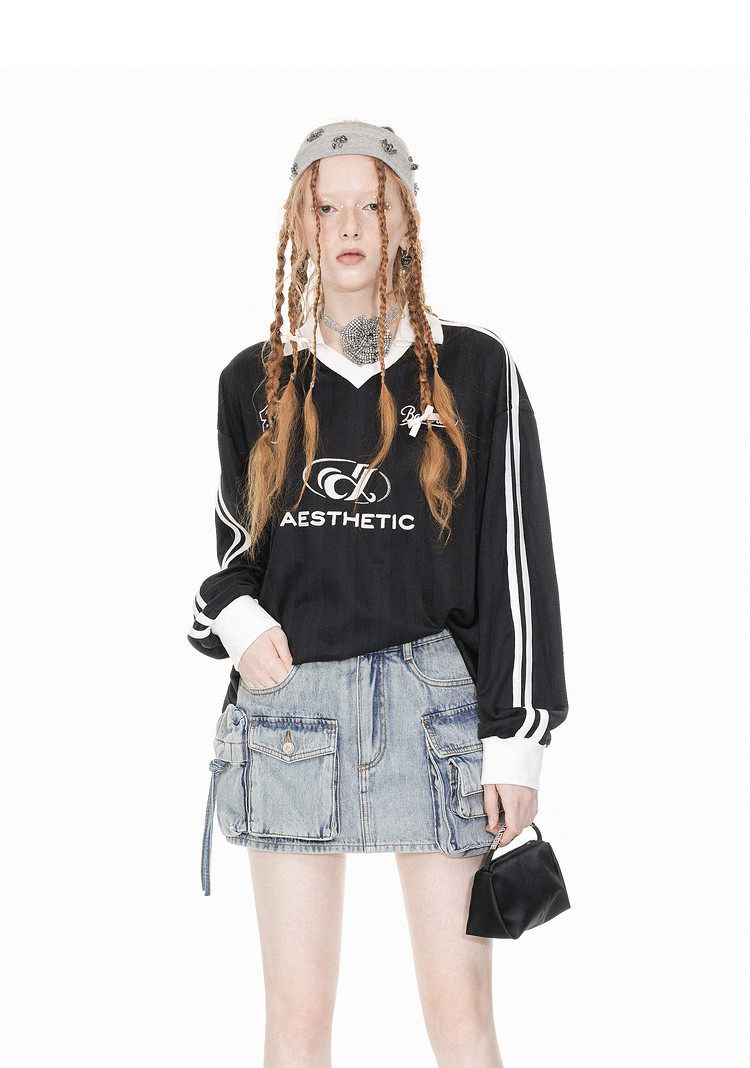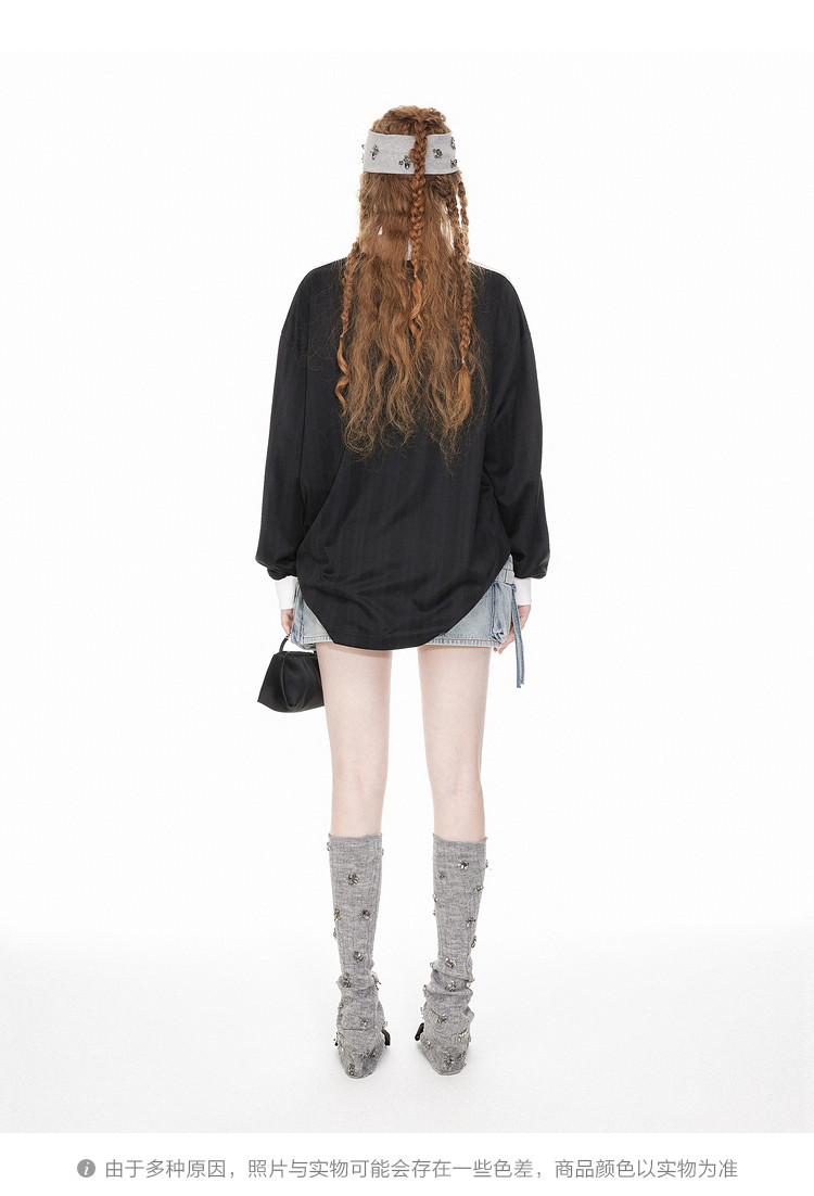地素暗纹提花球衣夏季专柜美式运动宽松长袖上衣女 414155