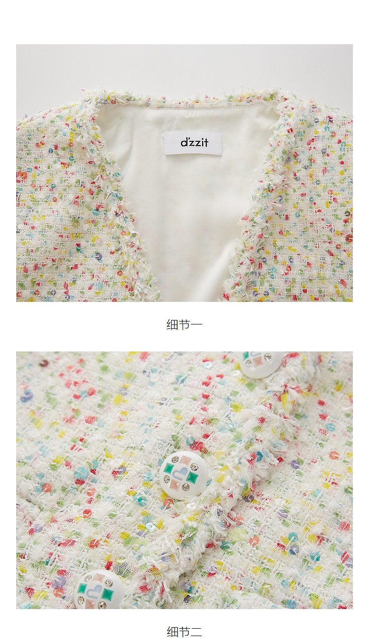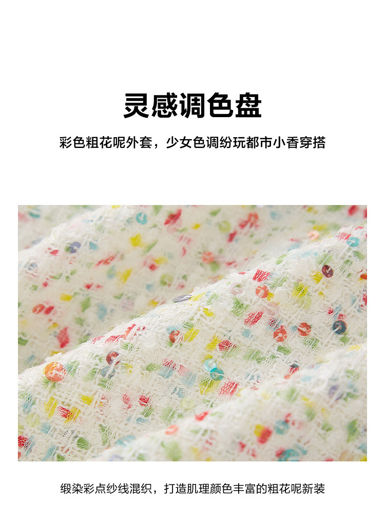 商品名称:地素短外套夏季彩色粗花呢小香风V领上衣女 957451