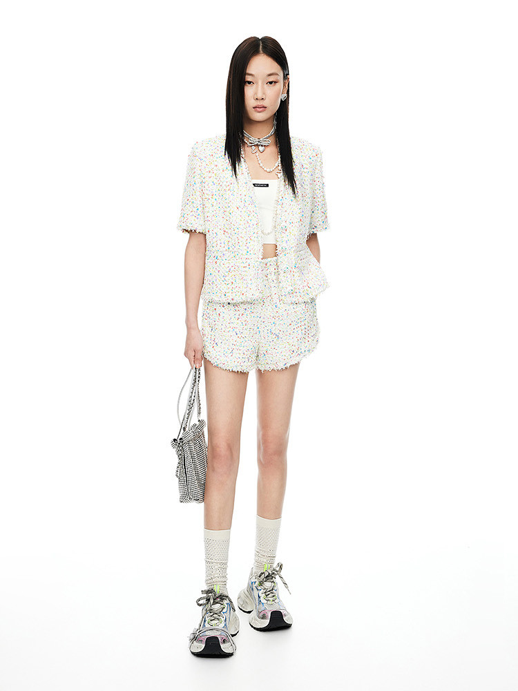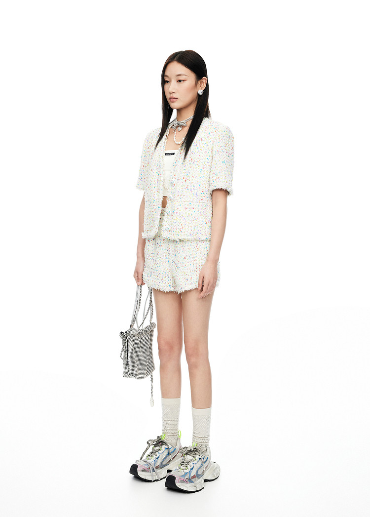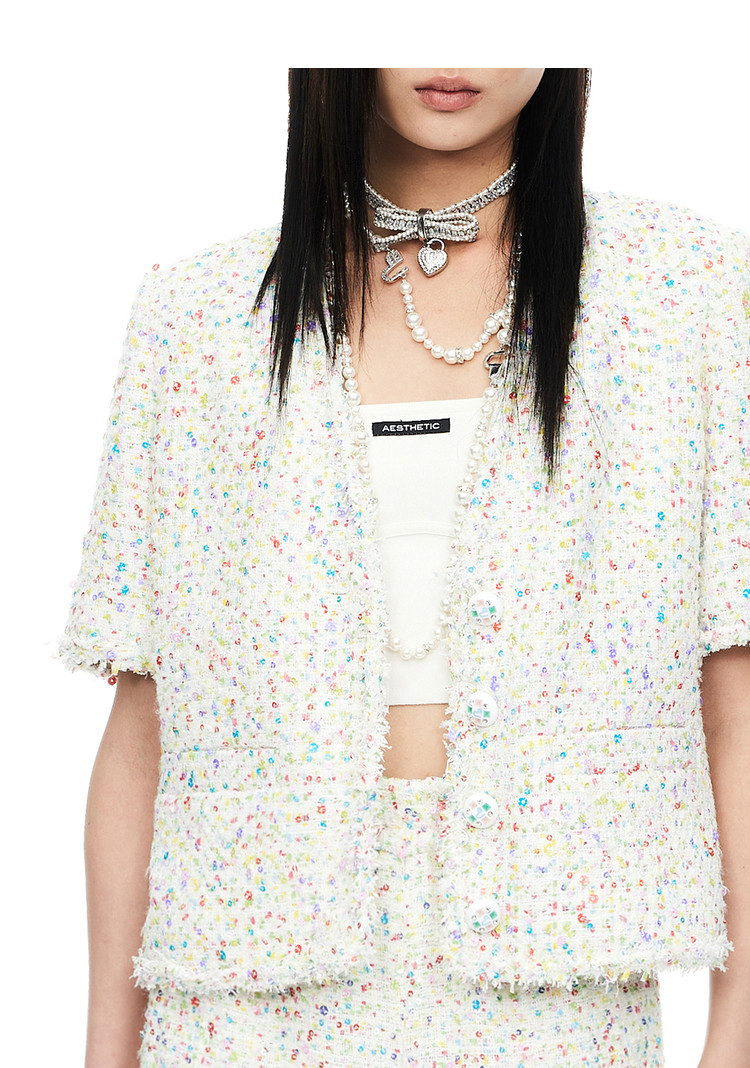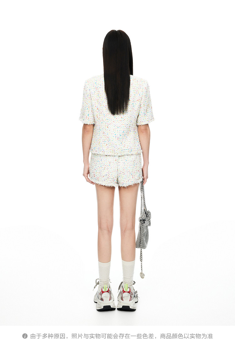 地素短外套夏季彩色粗花呢小香风V领上衣女 957451