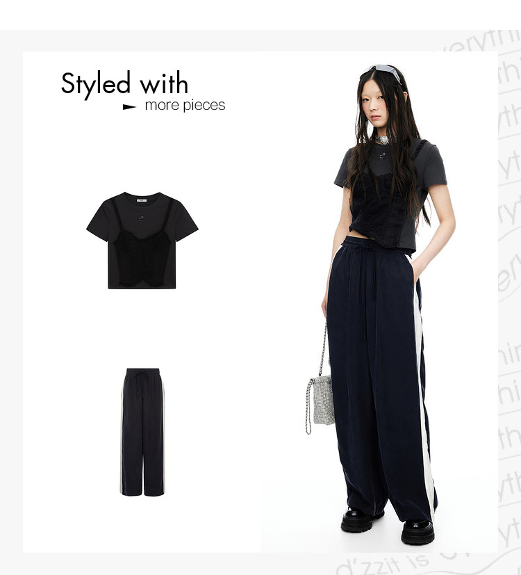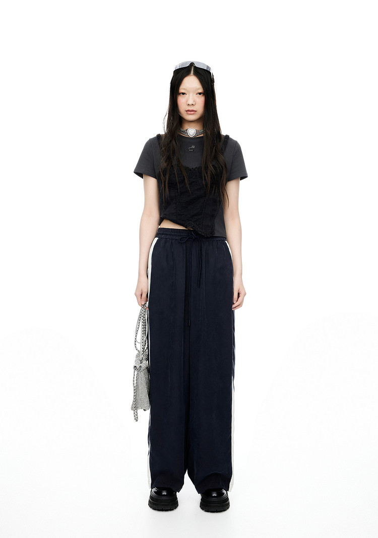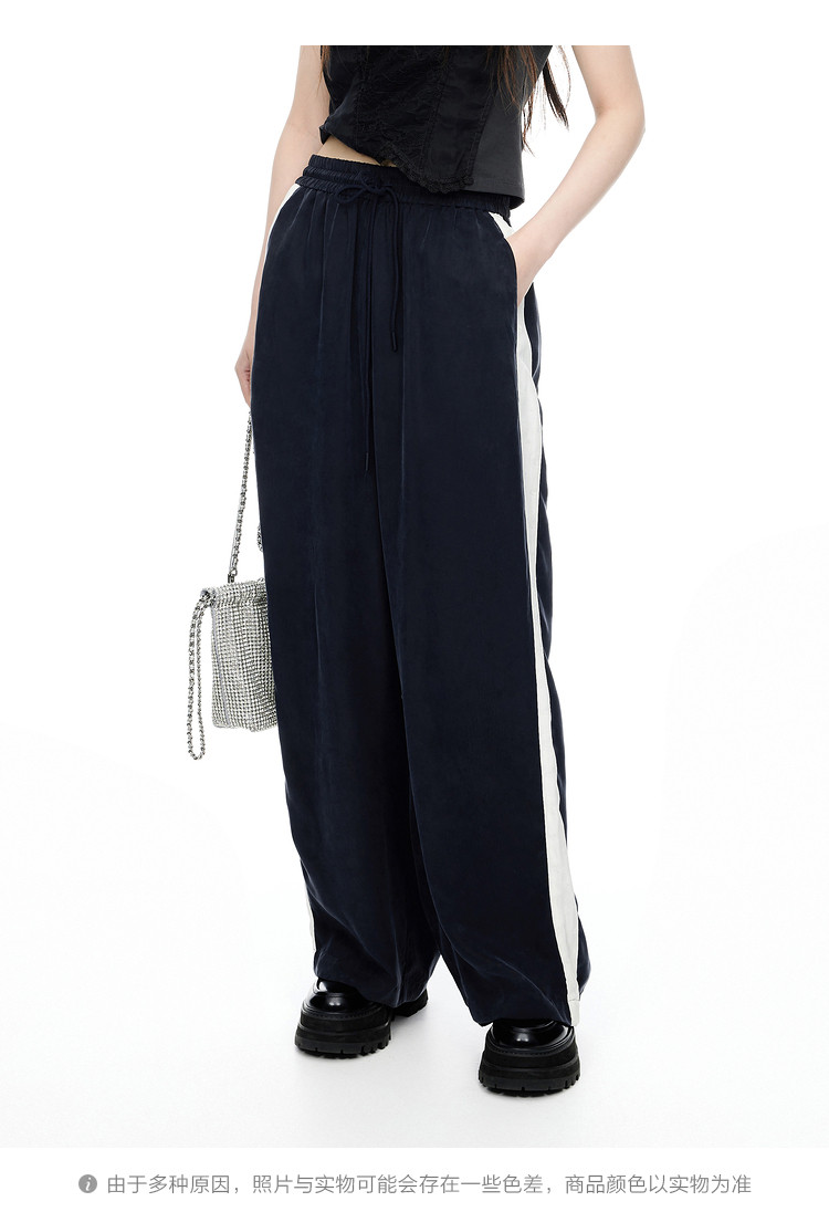 地素拼接长裤夏季运动风侧边拼条休闲直筒裤女 529291