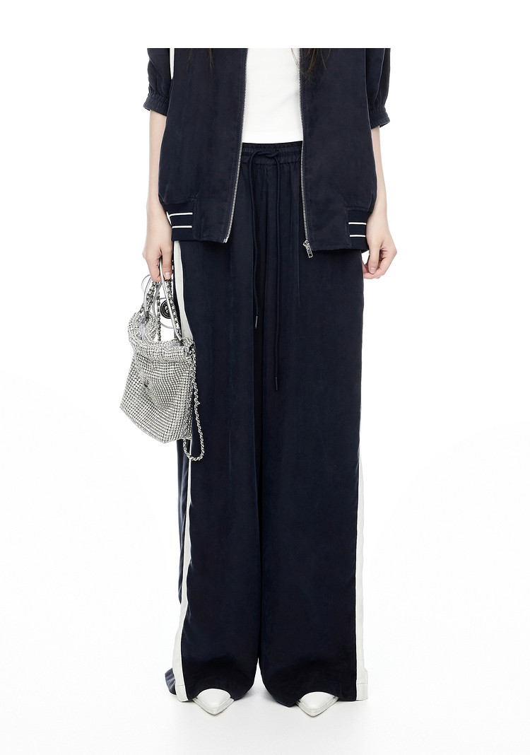 商品名称:地素拼接长裤夏季运动风侧边拼条休闲直筒裤女 529291