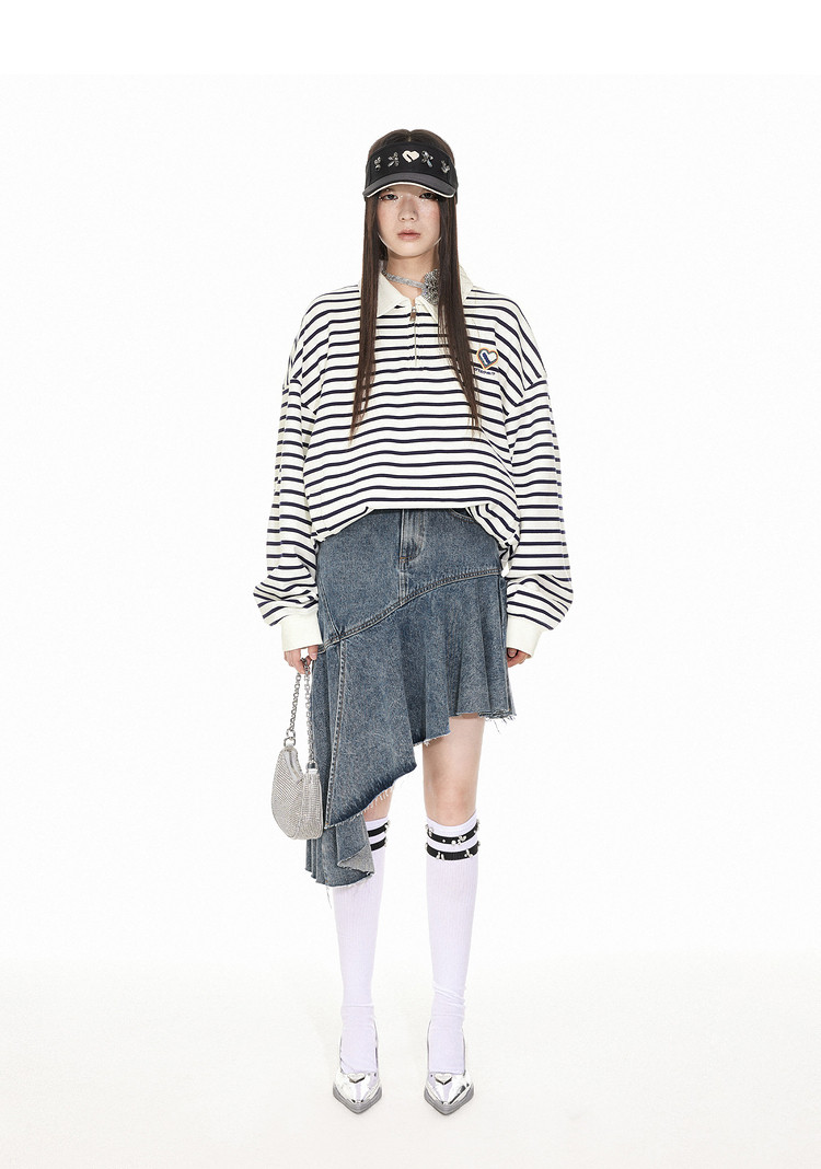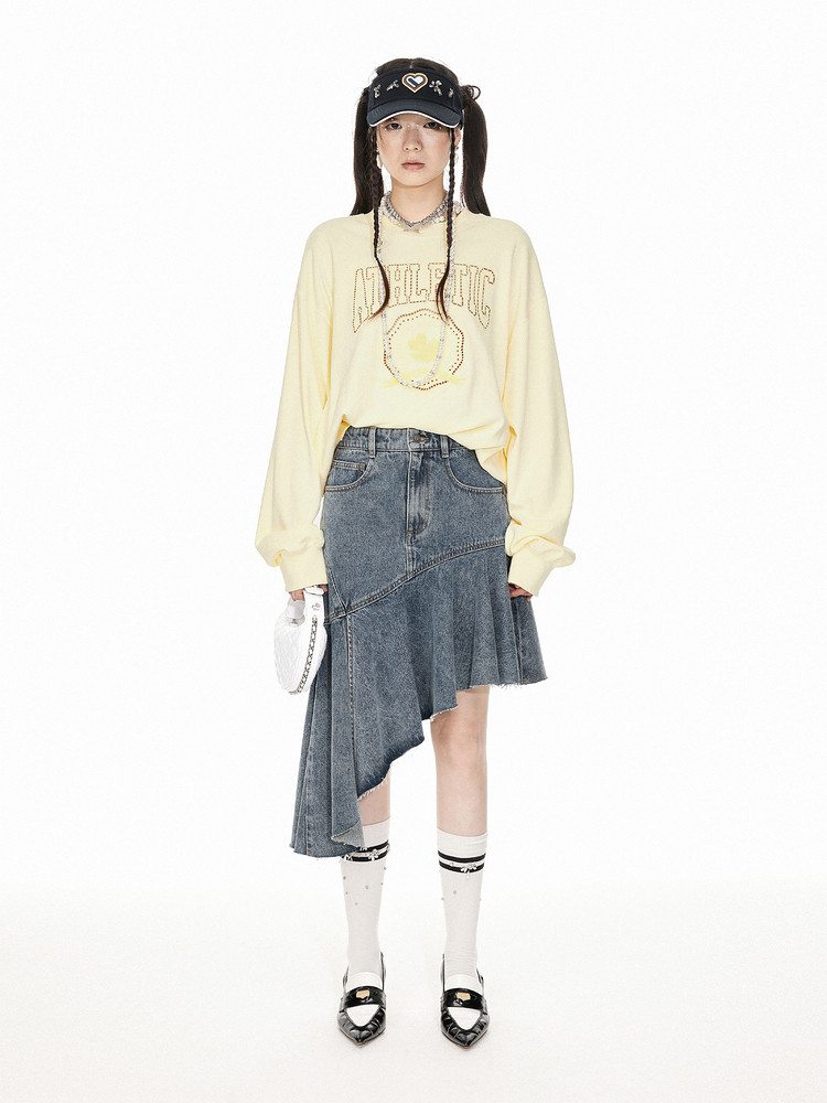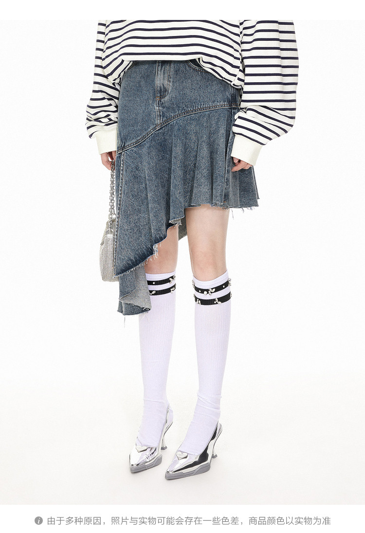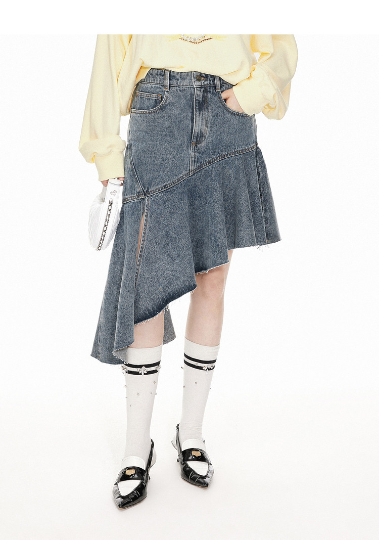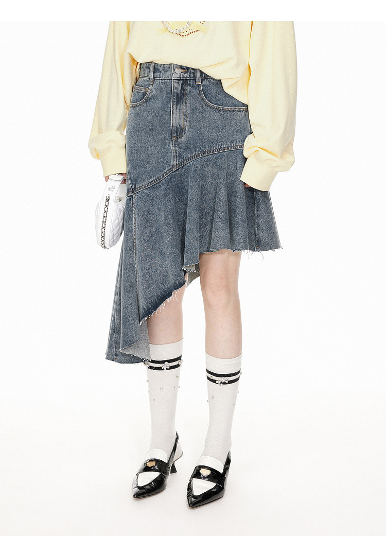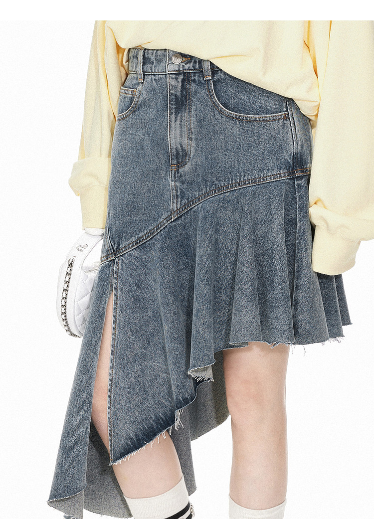 地素牛仔半裙春秋不规则设计感棉质半身裙女 033867