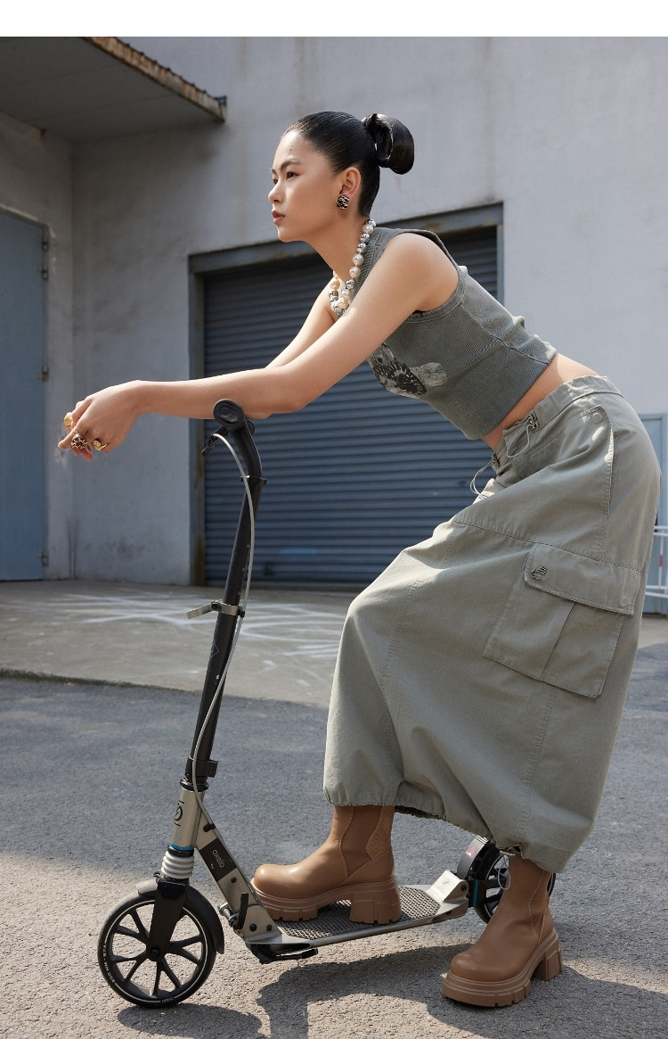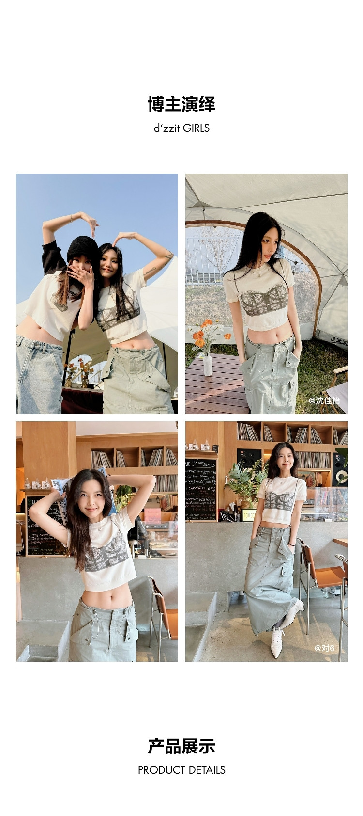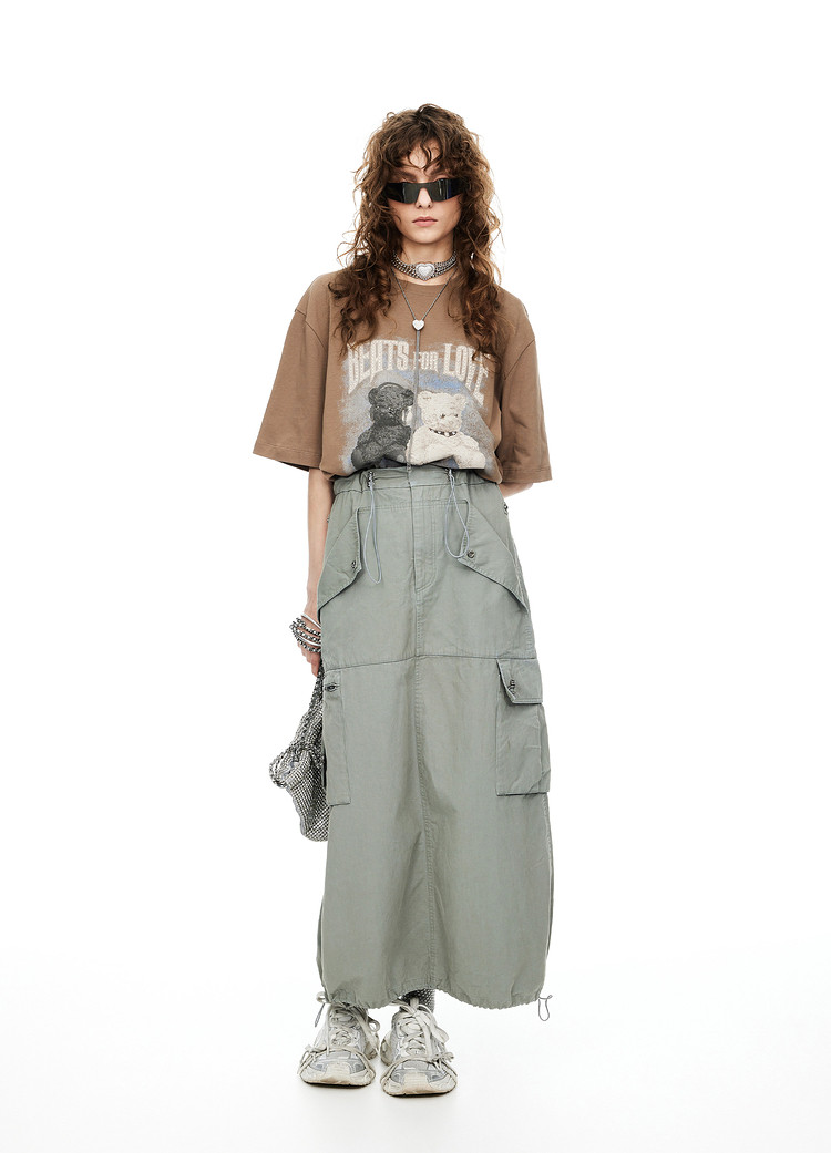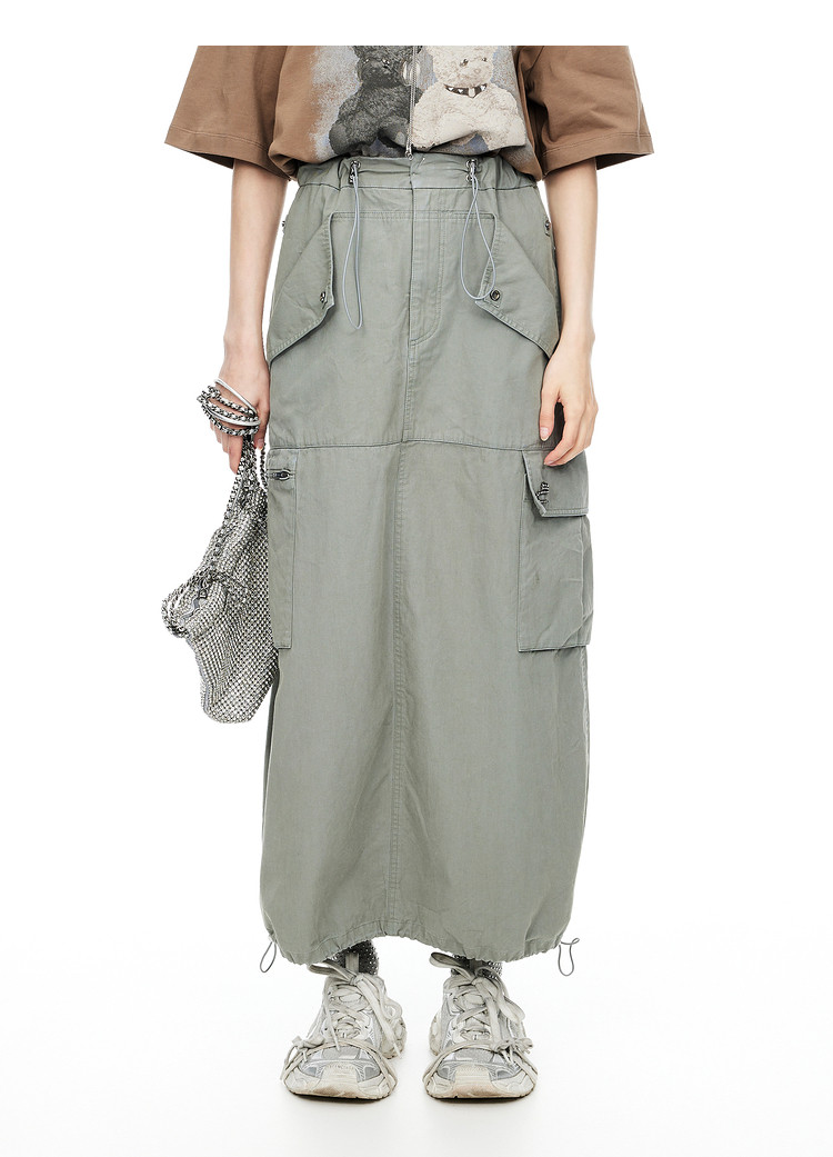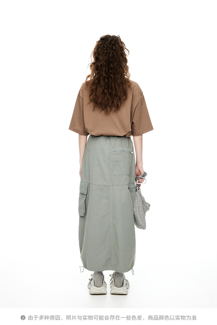 地素工装半裙夏季摩紧腰抽绳长裙女 395723