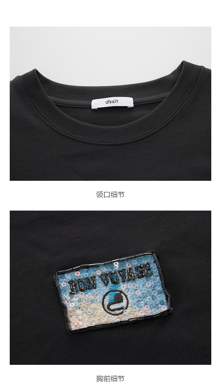 商品名称:地素长袖T恤春秋珠片绣设计圆领短款上衣女 552331