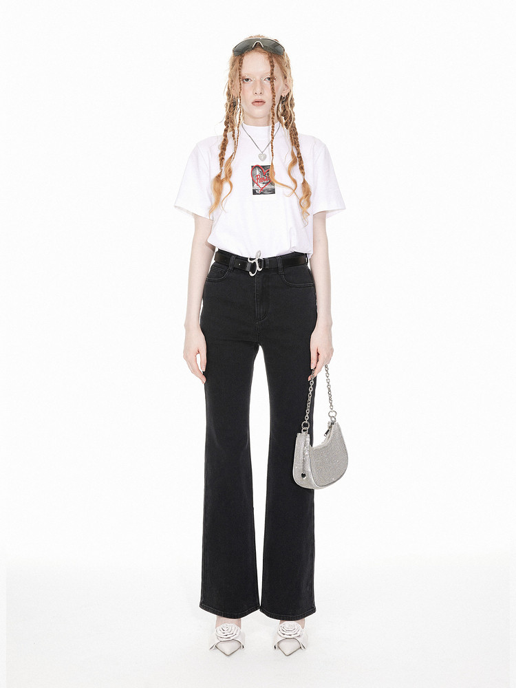 地素牛仔喇叭裤春季专柜复古修身长裤女 017803