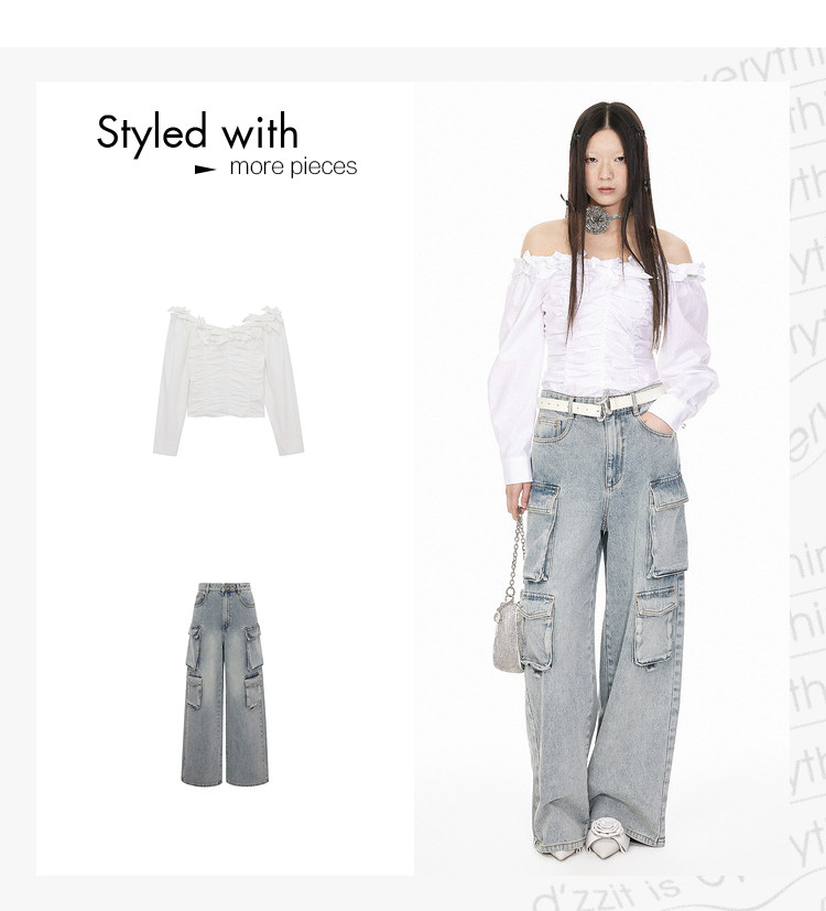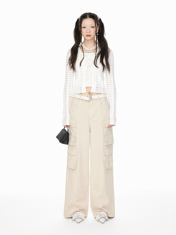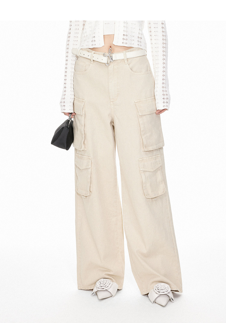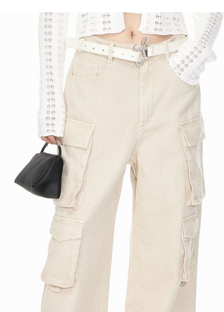 地素牛仔长裤夏季专柜工装风多口袋宽松阔腿裤长裤女 344523