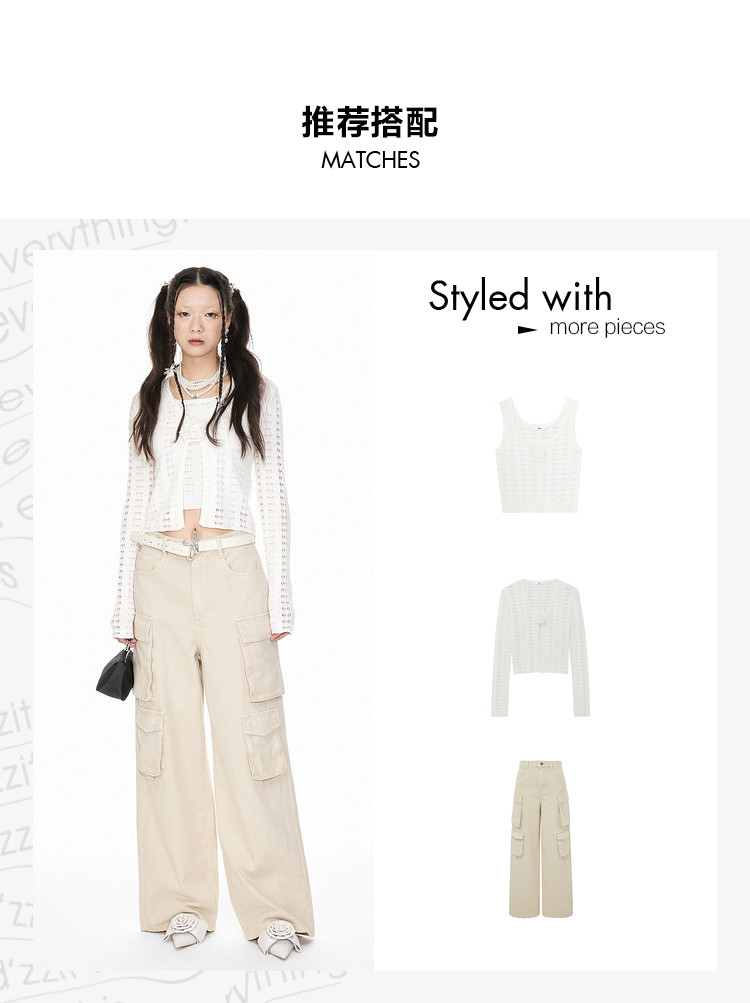 商品名称:地素牛仔长裤夏季专柜工装风多口袋宽松阔腿裤长裤女 344523