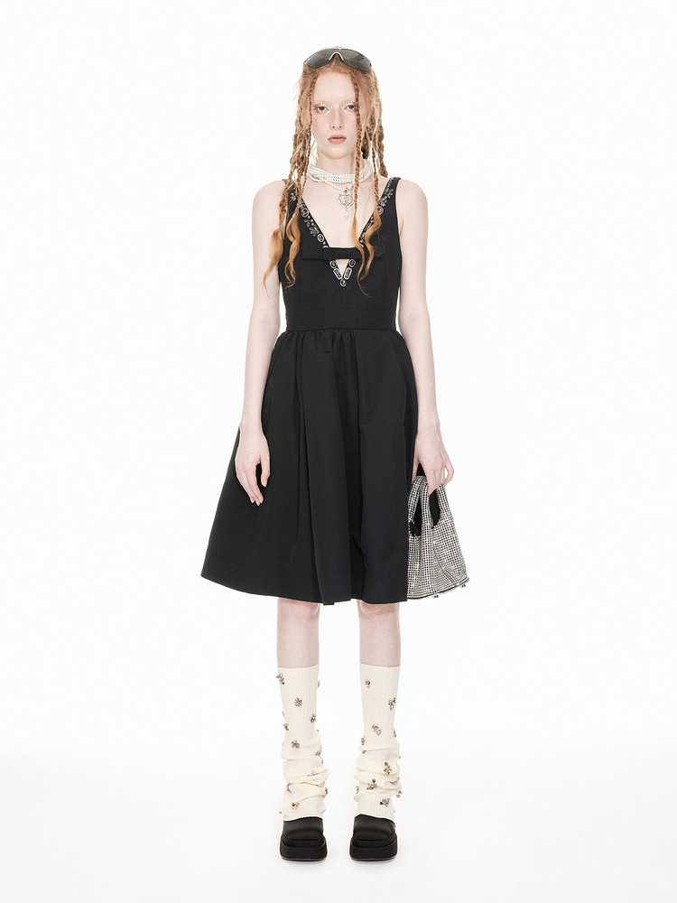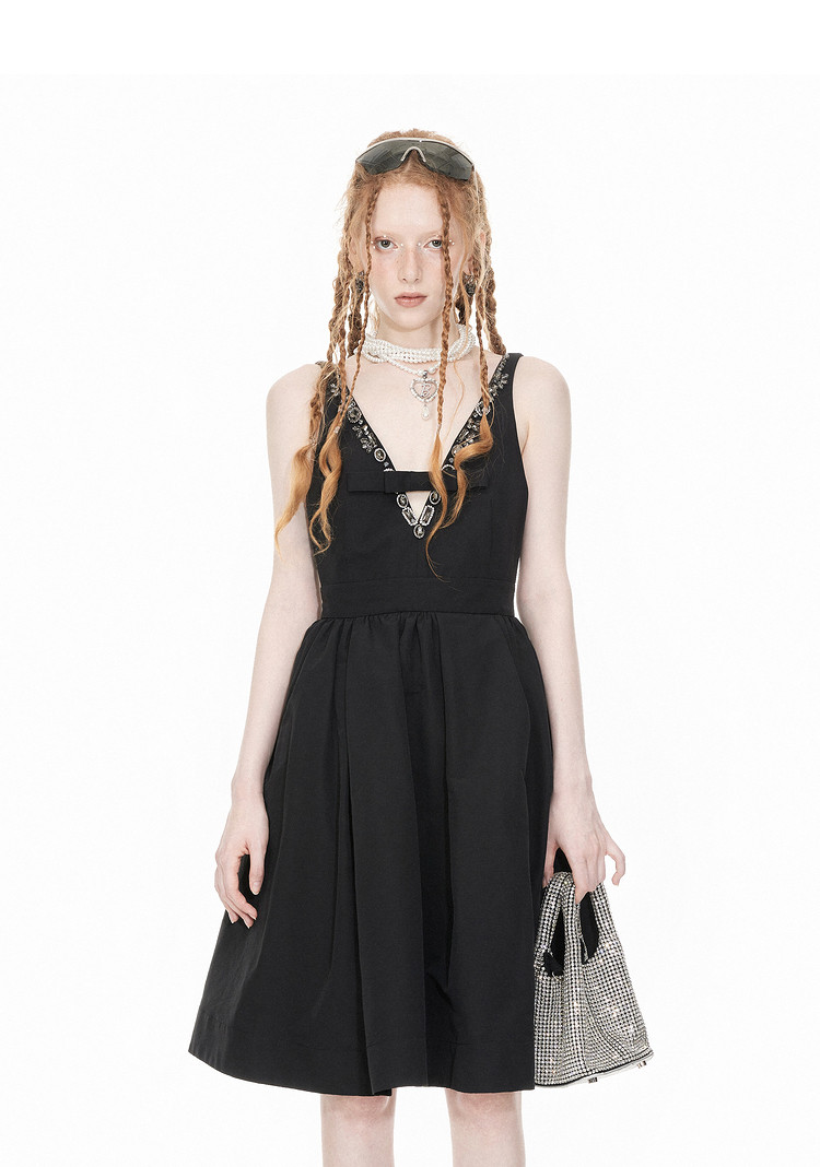 地素聚会钉珠连衣裙春季专柜复古冷酷经典小黑裙女 756811