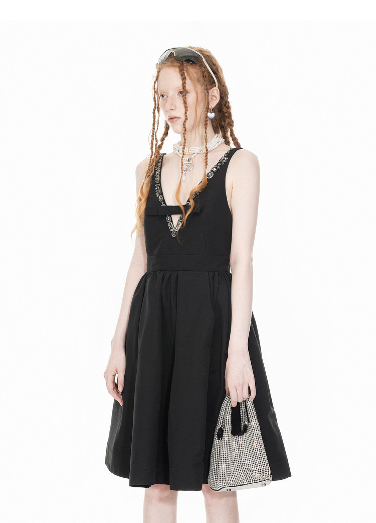 商品名称:地素聚会钉珠连衣裙春季专柜复古冷酷经典小黑裙女 756811