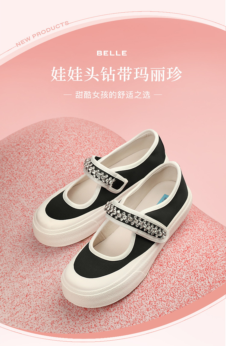 商品名称:百丽厚底帆布鞋小白鞋女魔术贴平底休闲鞋 911642