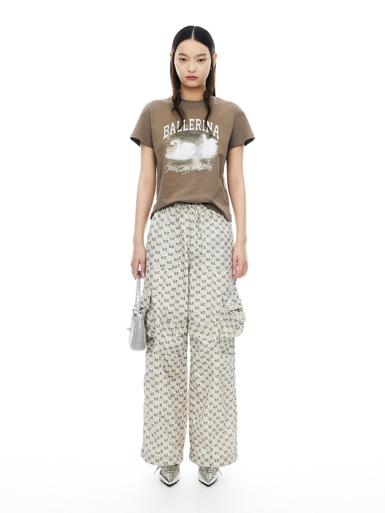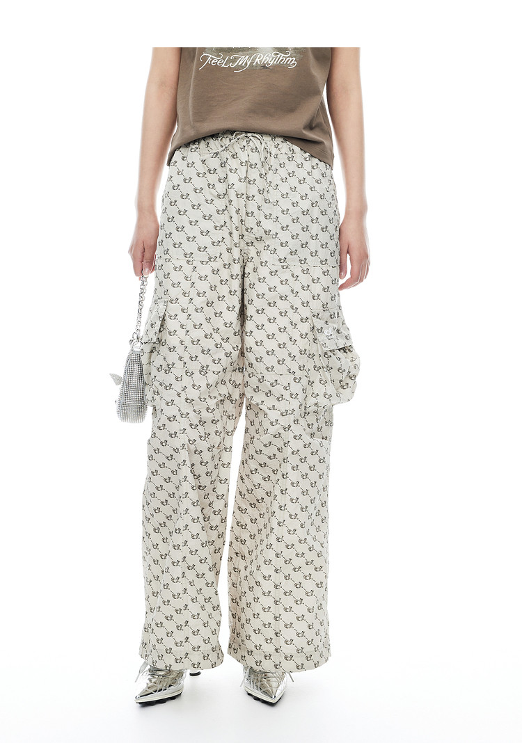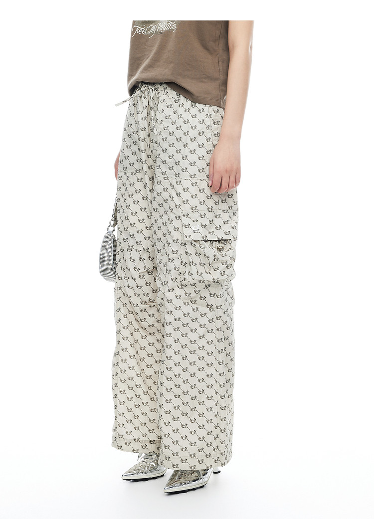 商品名称:地素老花长裤夏季专柜时髦宽松薄款阔腿裤休闲裤 410059