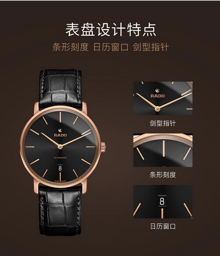 雷达RADO 钻霸系列男士皮制表带金属陶瓷表壳机械手表R14068166