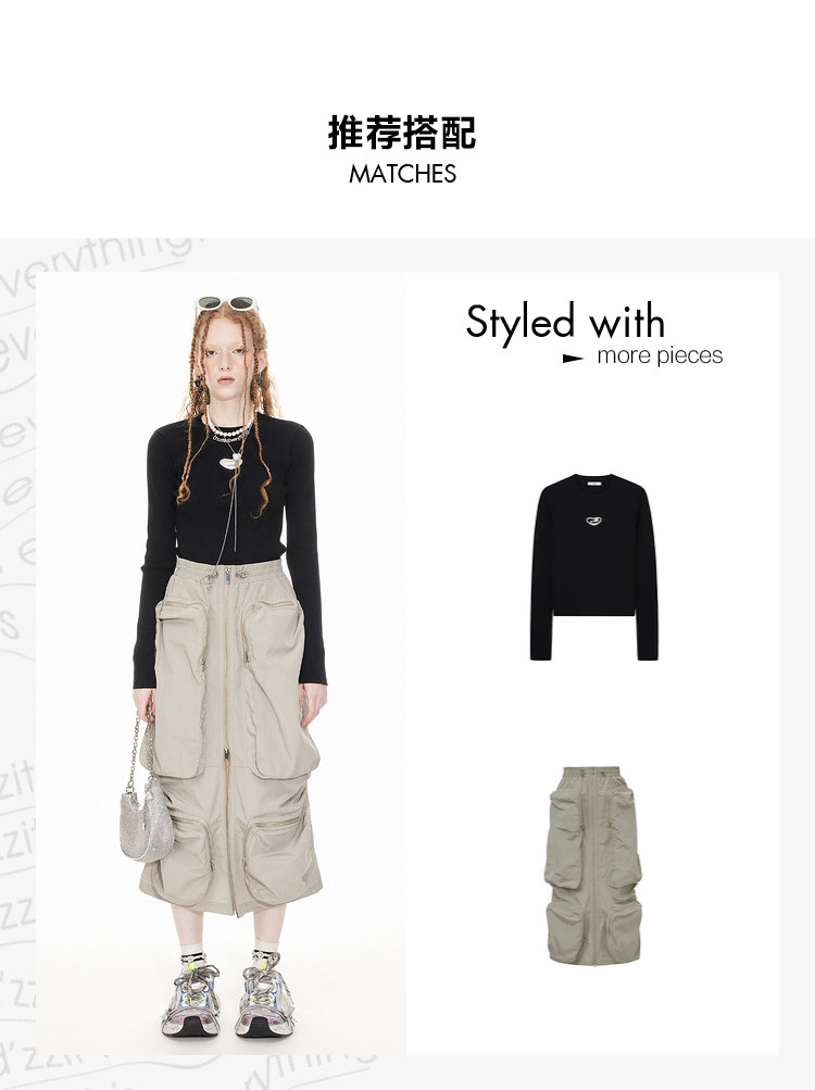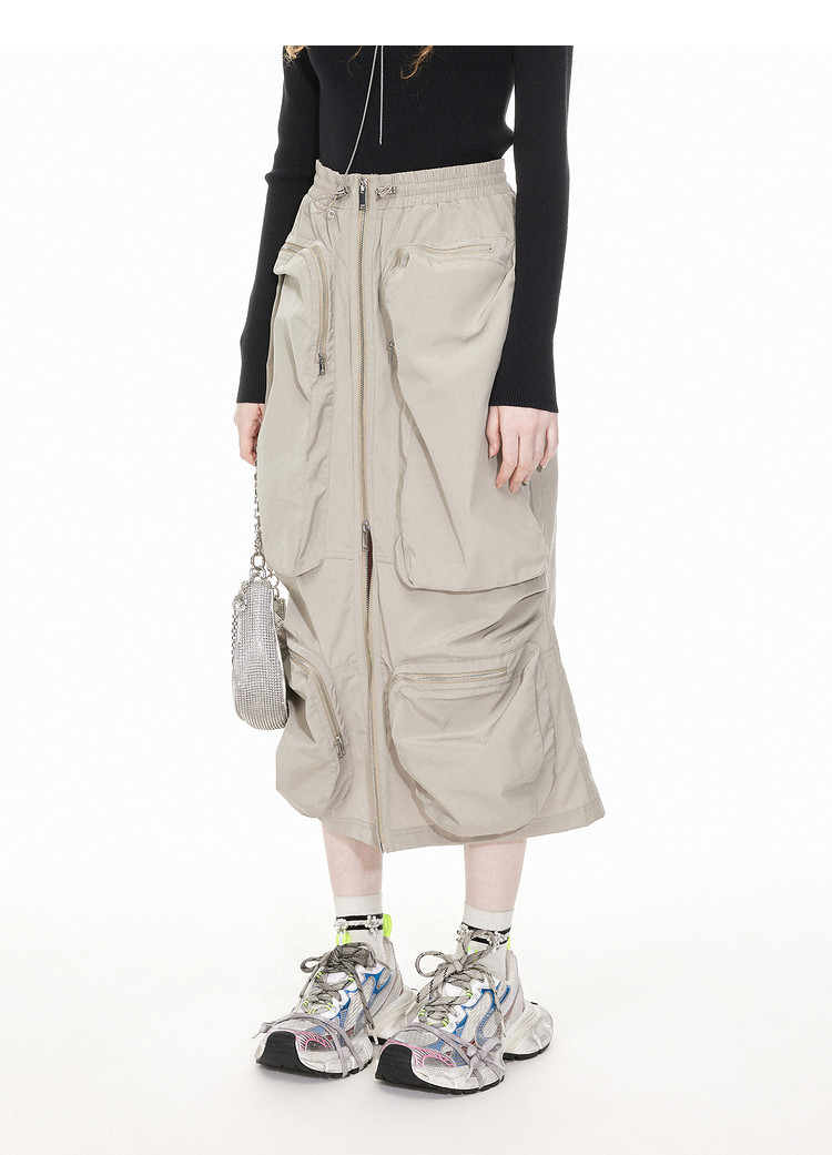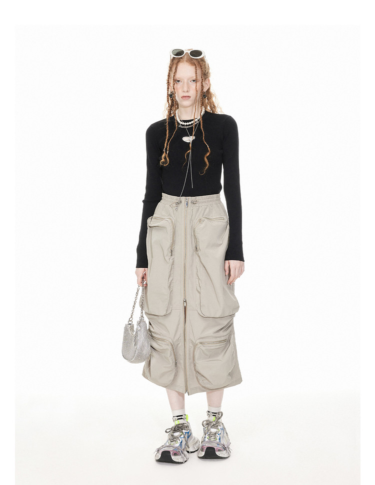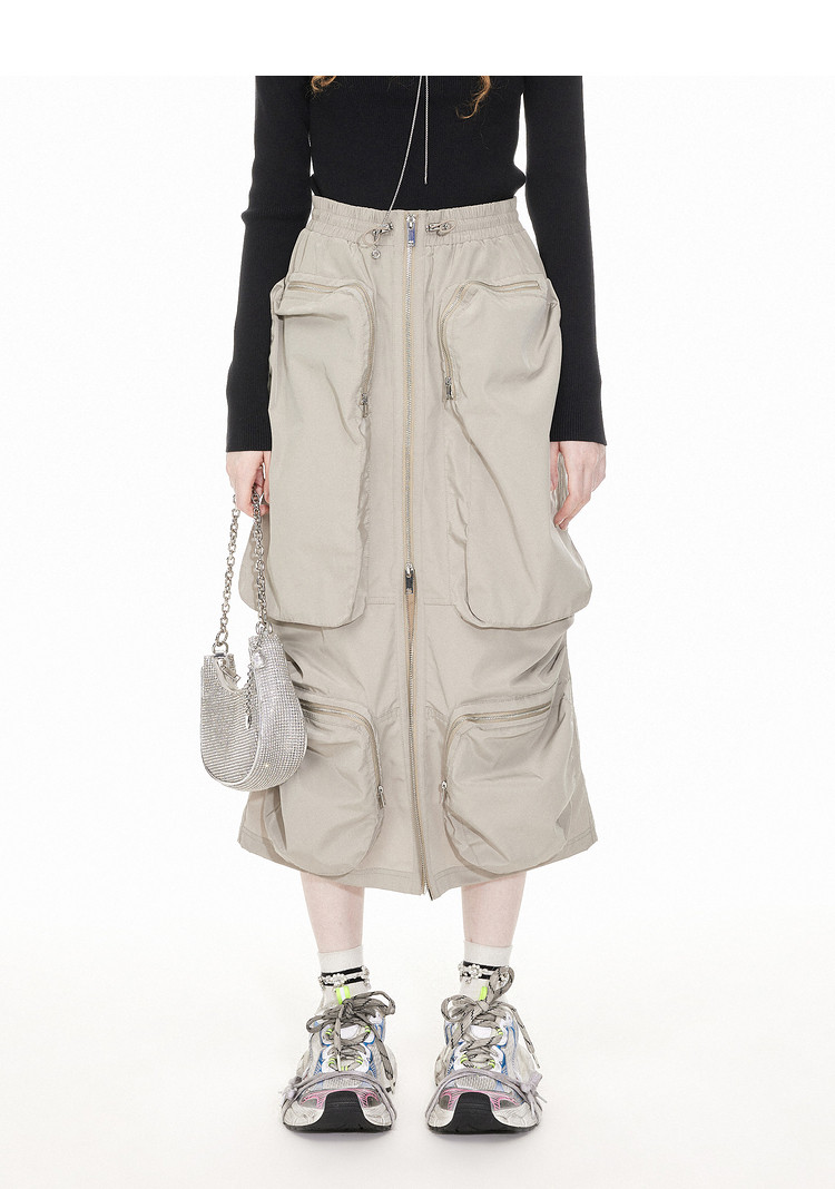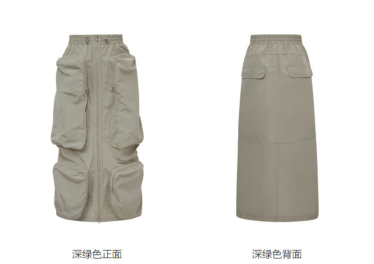 地素工装长裙春秋工装风多口袋装饰半身裙女 081419