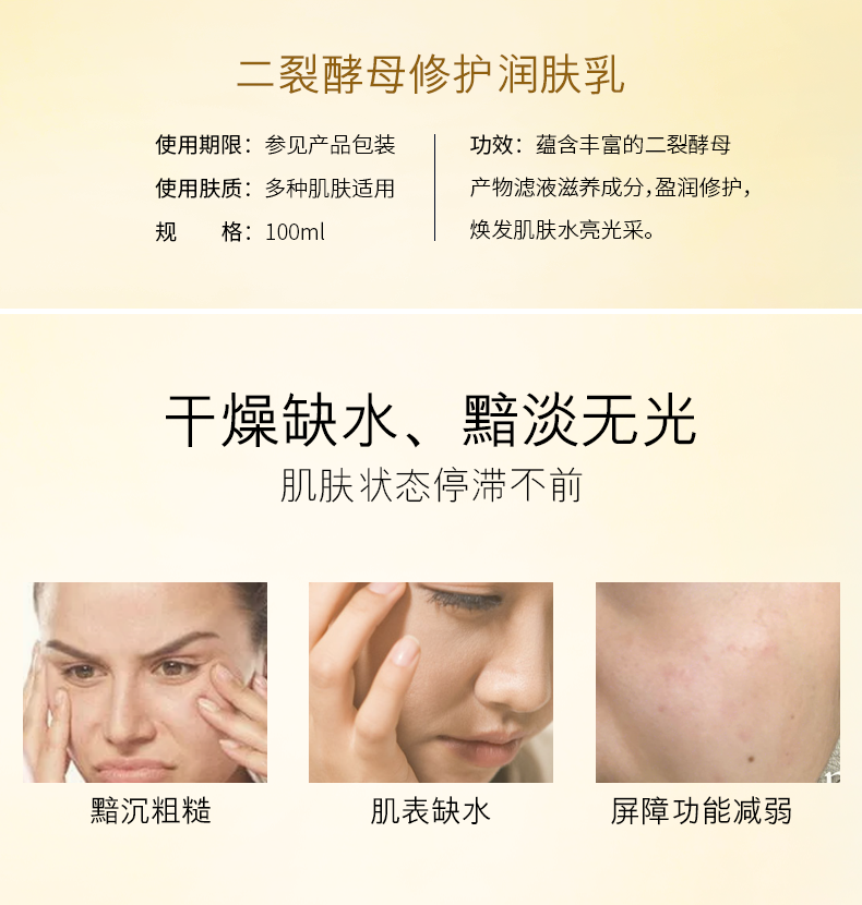 商品名称:欧佩 二裂酵母修护润肤乳 100ml 水润亮泽柔嫩细滑紧实面部乳液