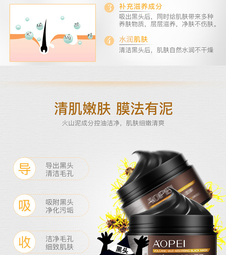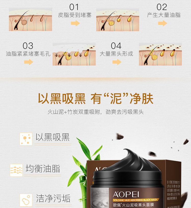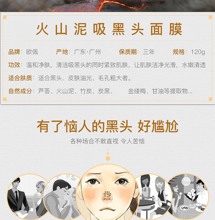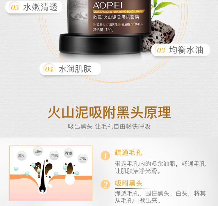 商品名称:欧佩 火山泥吸黑头面膜 120g