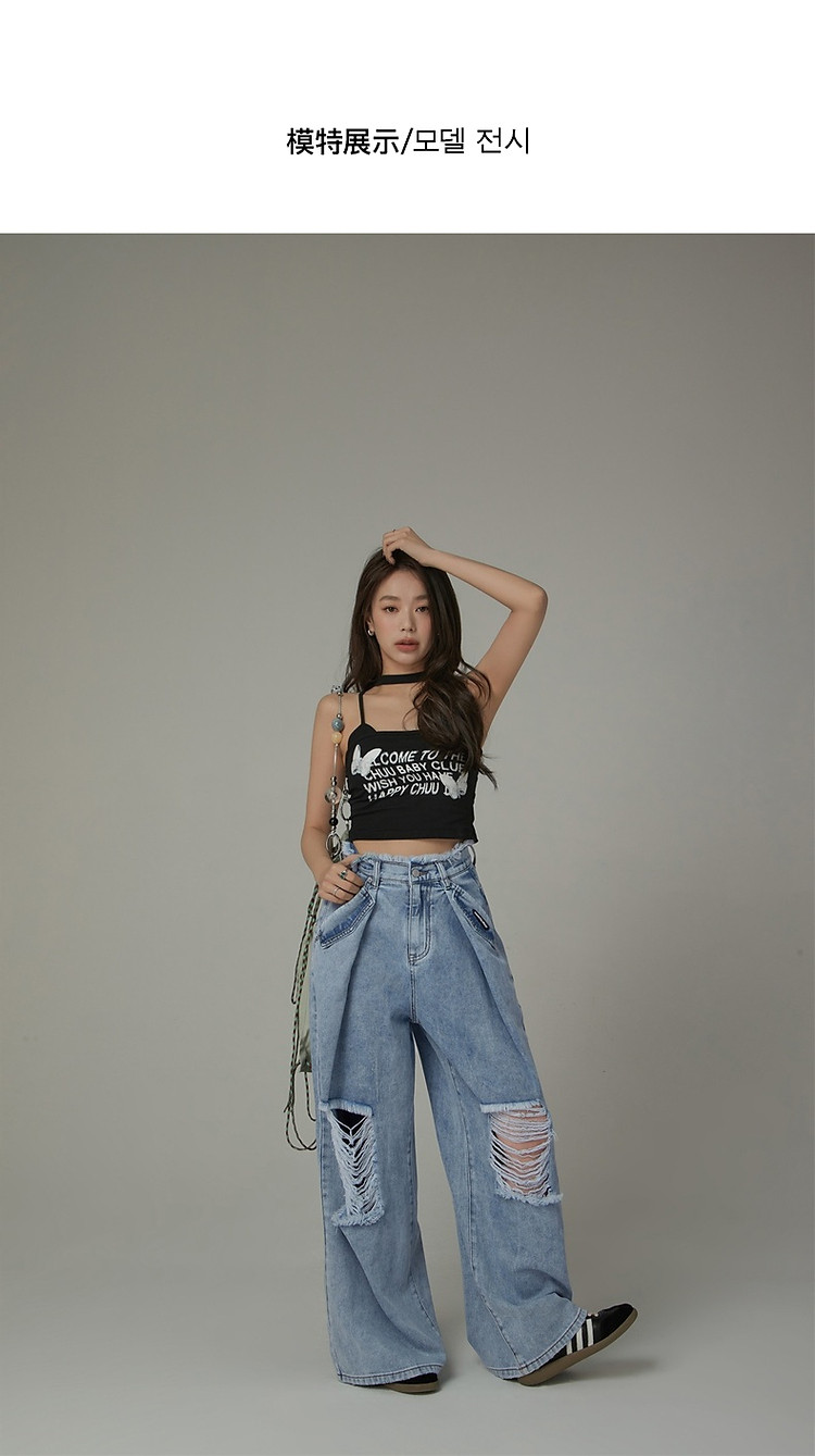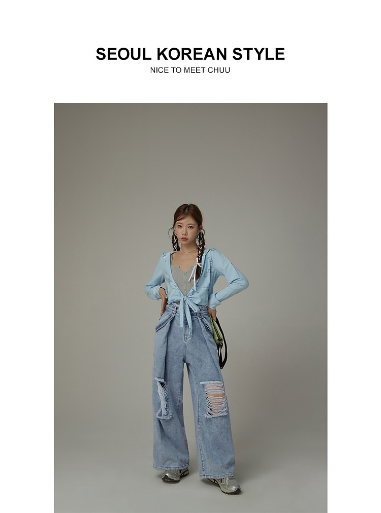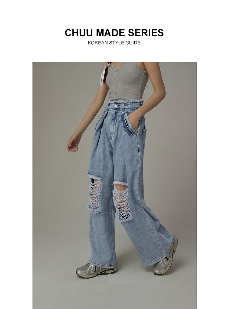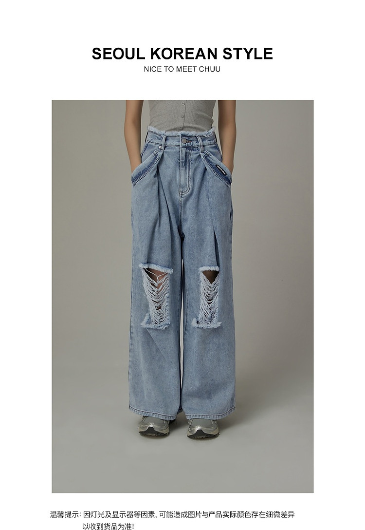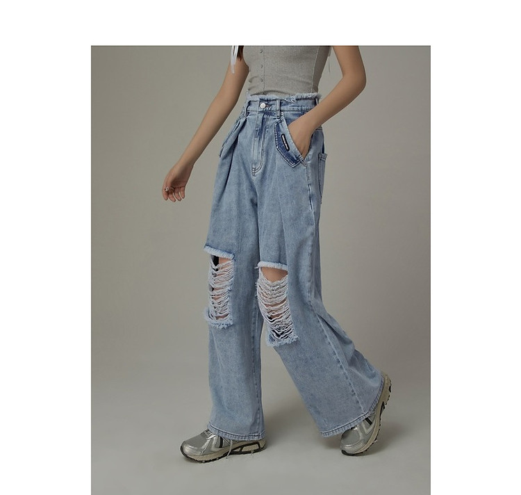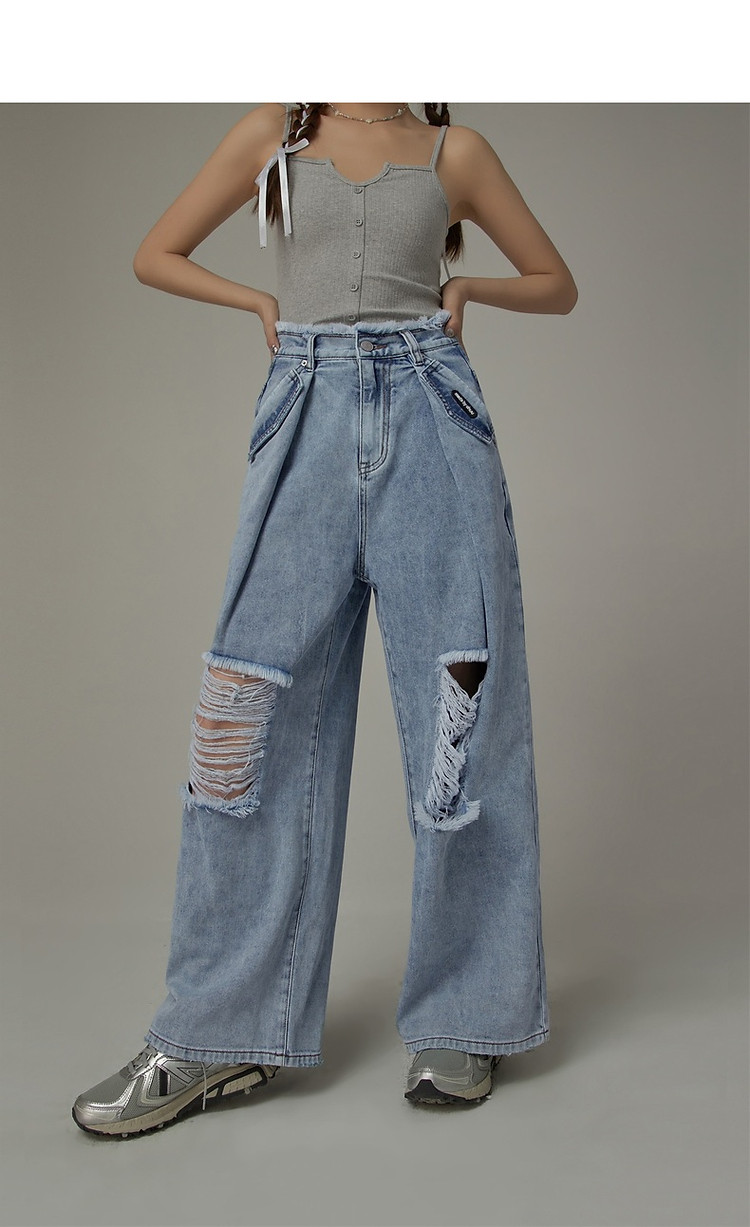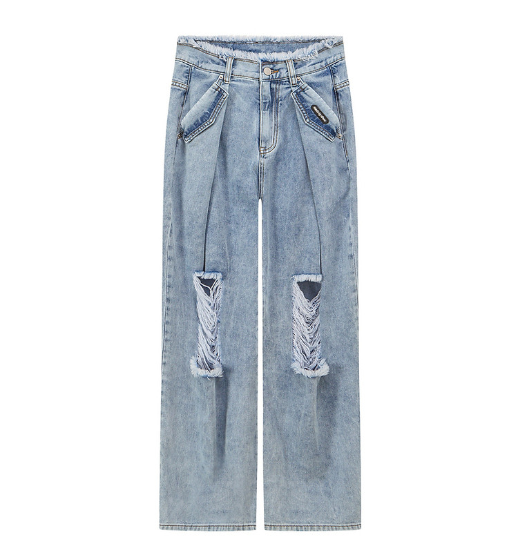 商品名称:破洞阔腿牛仔裤女士夏辣妹高腰磨破拖地长裤子潮 464595