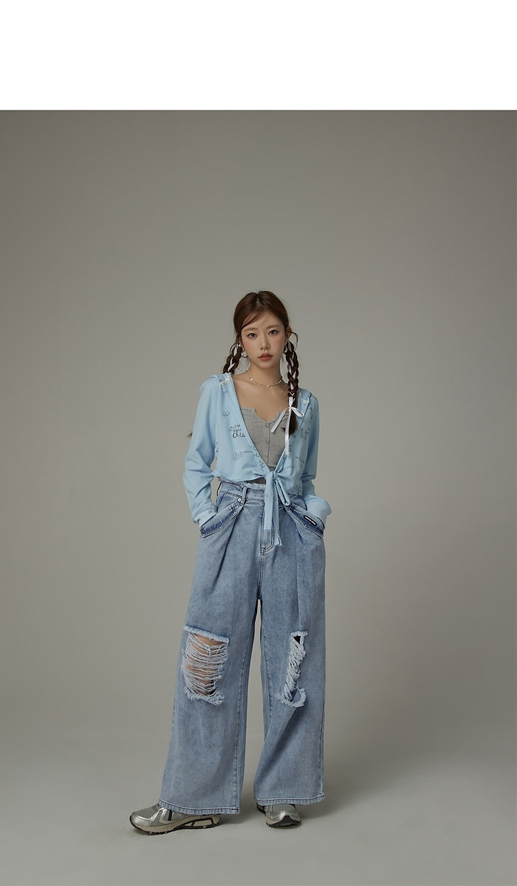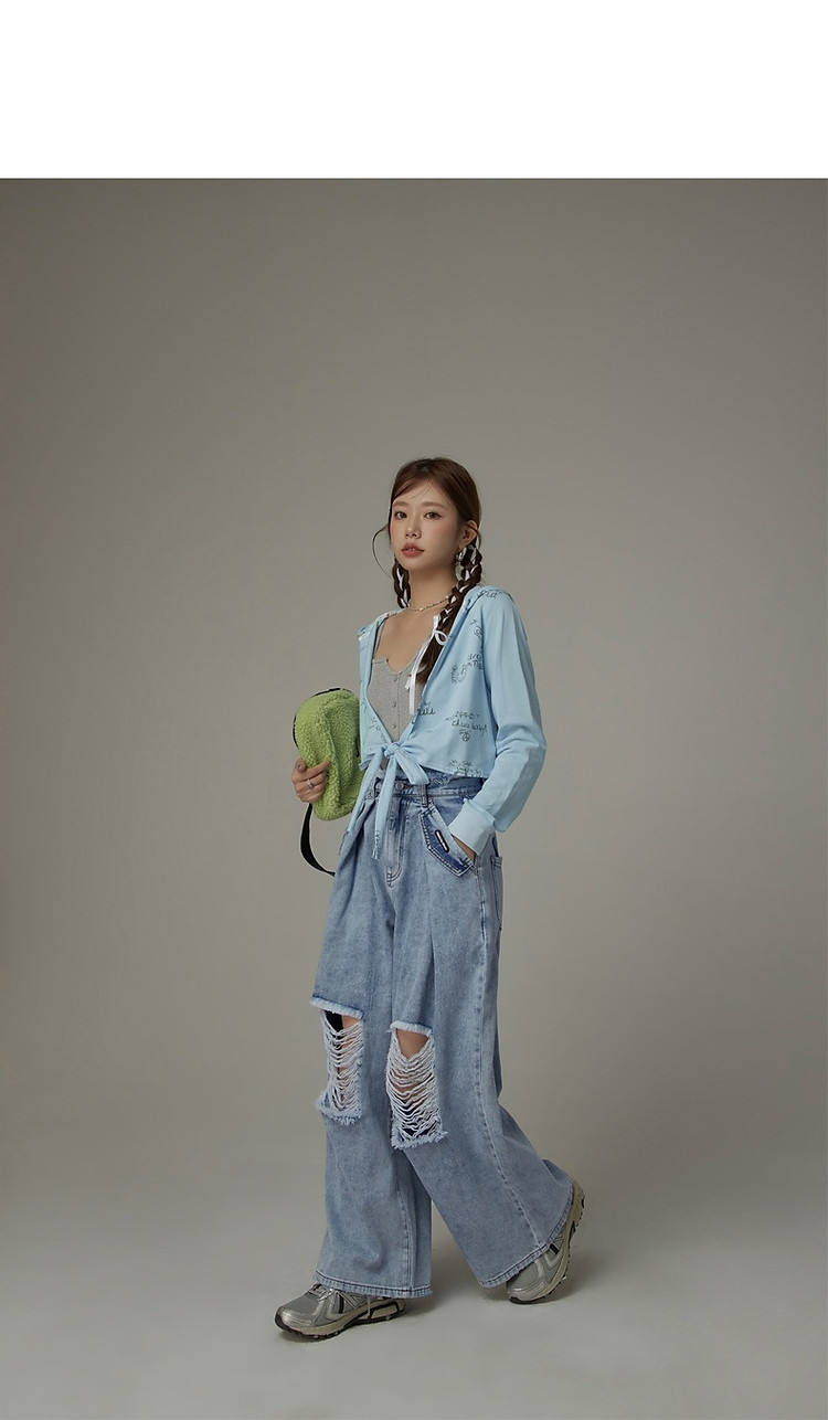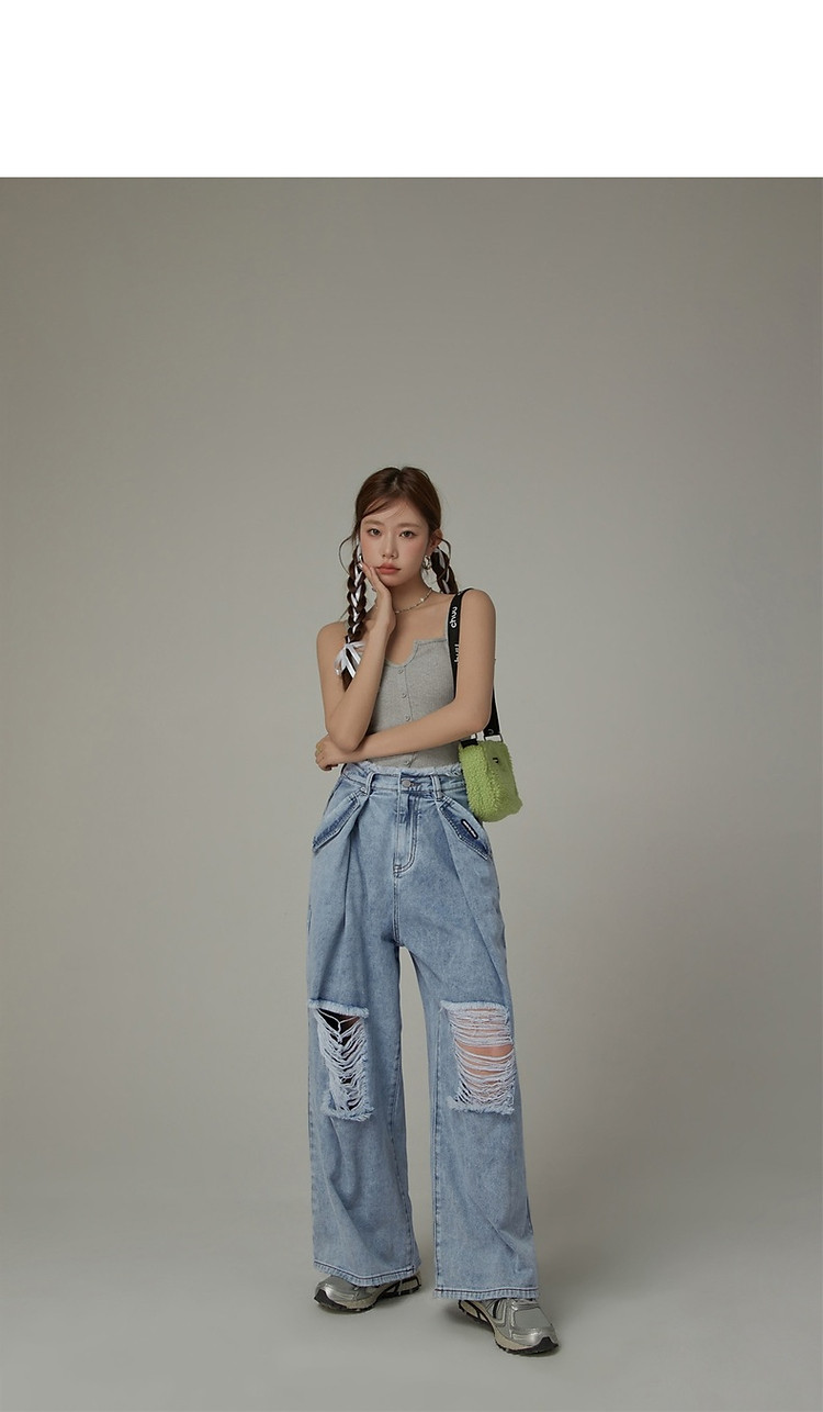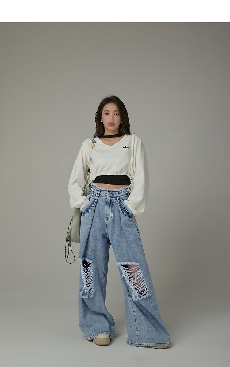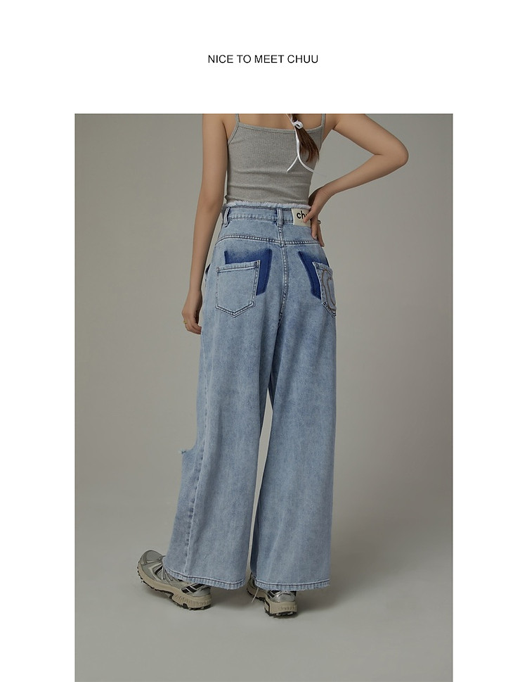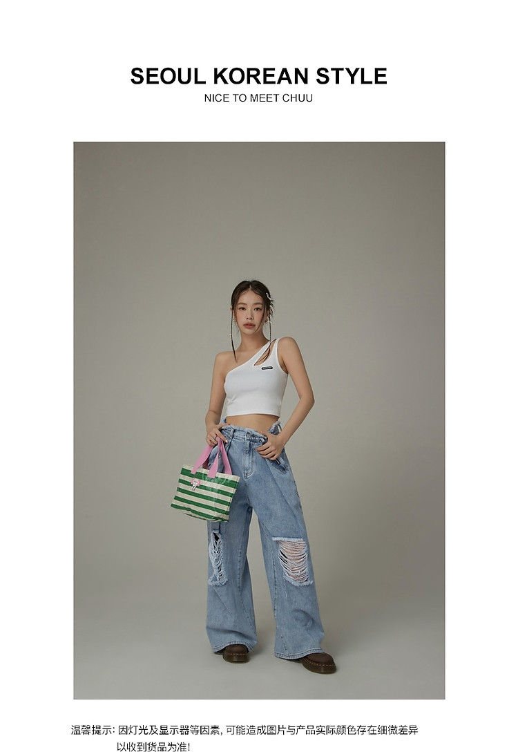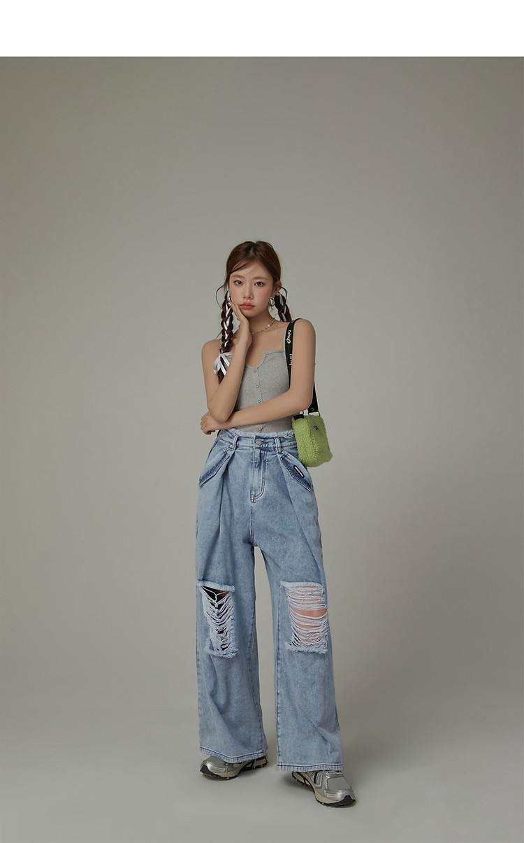 商品名称:破洞阔腿牛仔裤女士夏辣妹高腰磨破拖地长裤子潮 464595