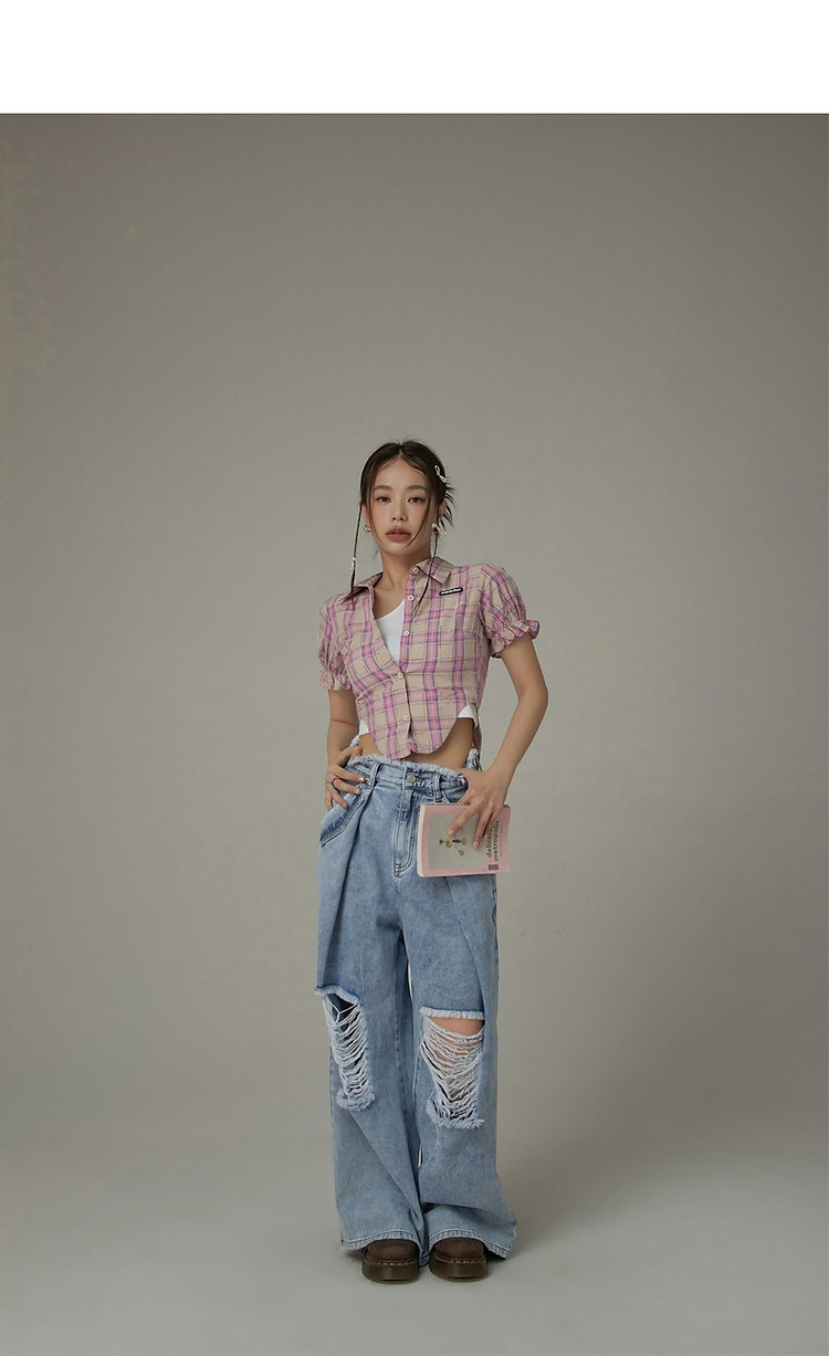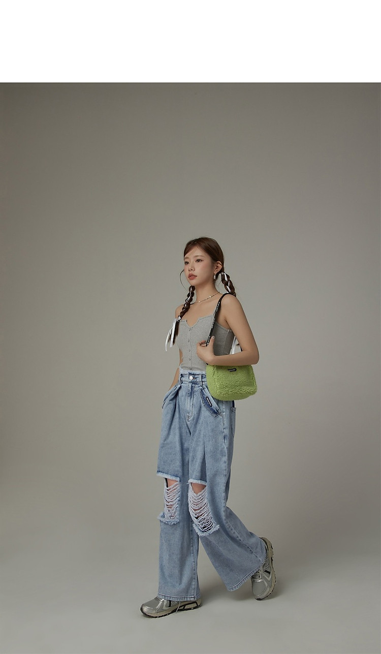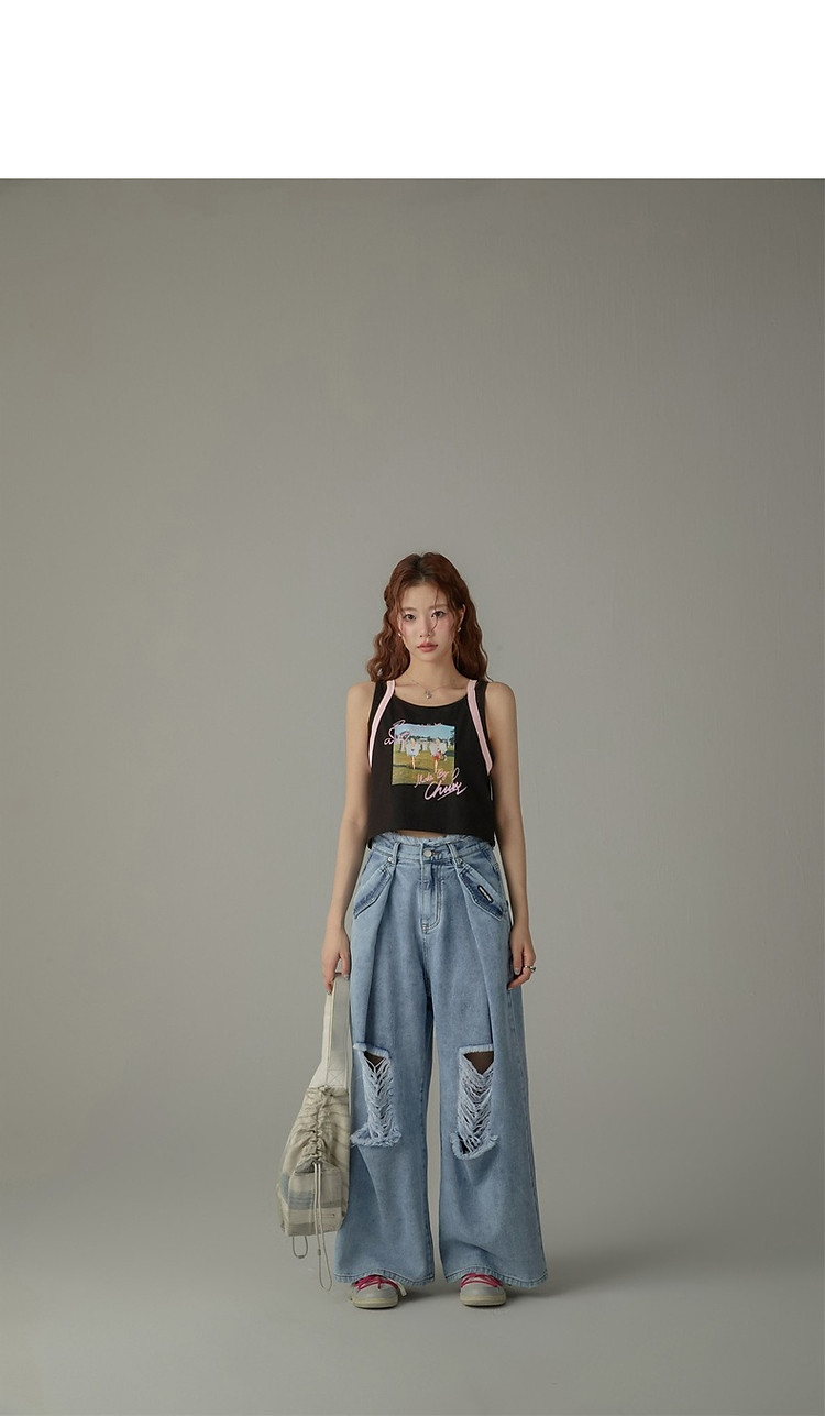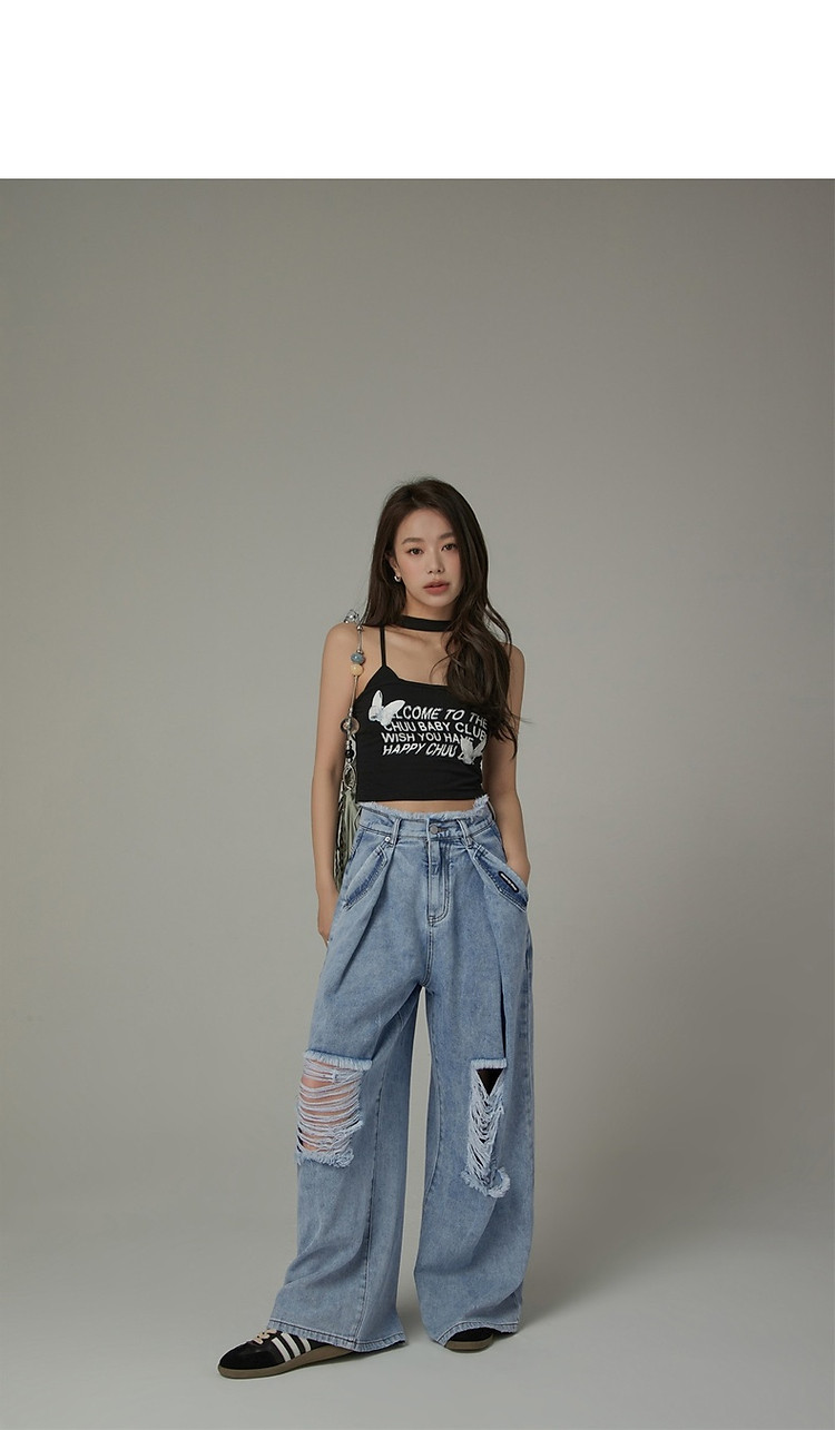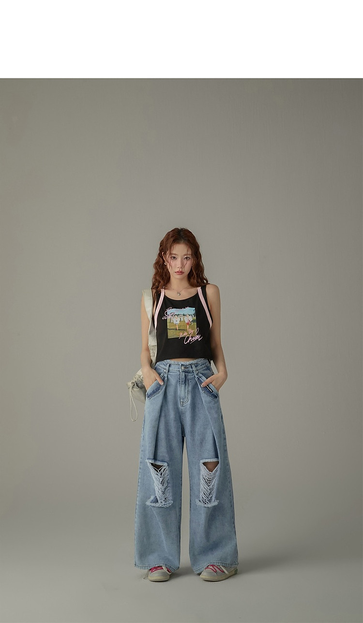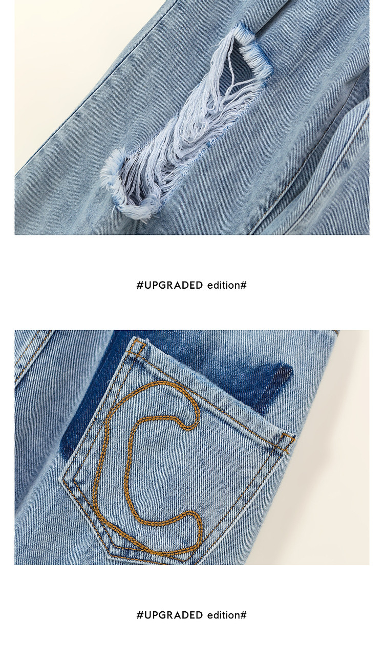 商品名称:破洞阔腿牛仔裤女士夏辣妹高腰磨破拖地长裤子潮 464595