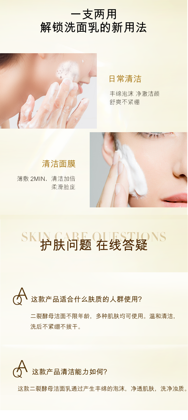 欧佩 二裂酵母净颜洁面乳 100g 深层清洁补水保湿细腻紧致草本洁面