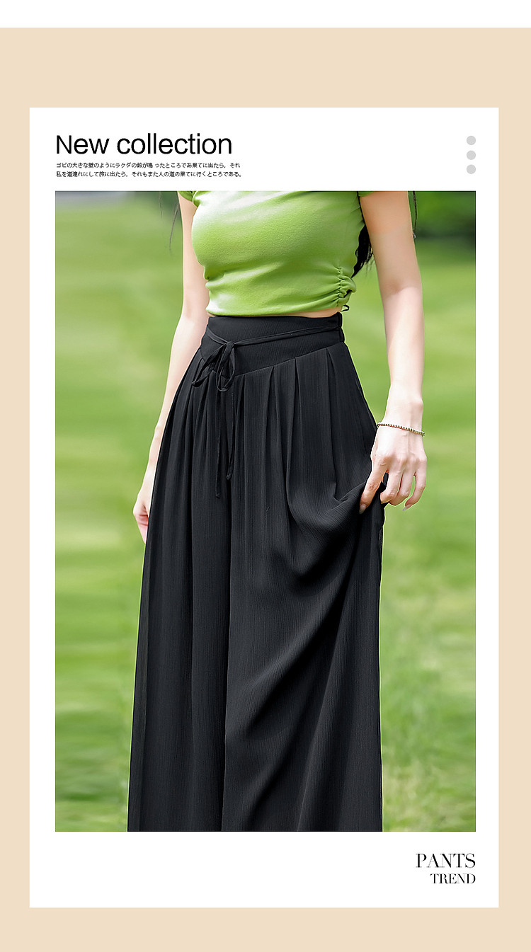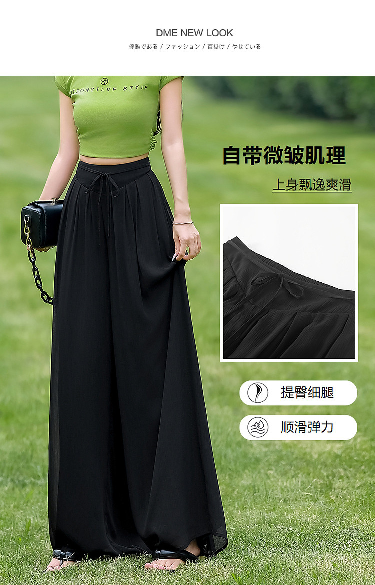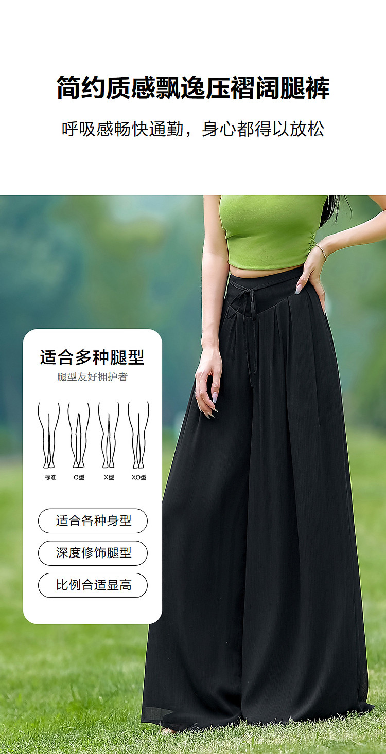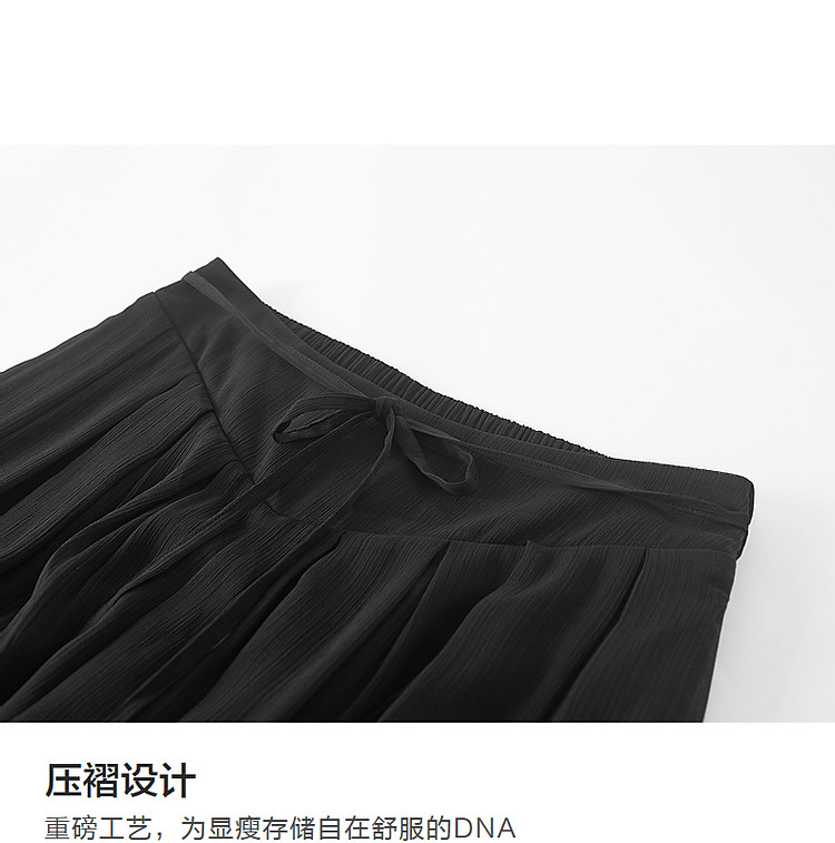 商品名称:【飘逸压褶阔腿裤】夏通勤简约宽腰节轻薄微皱顺纡绉雪纺休闲裤 275393