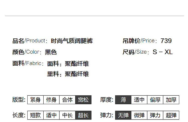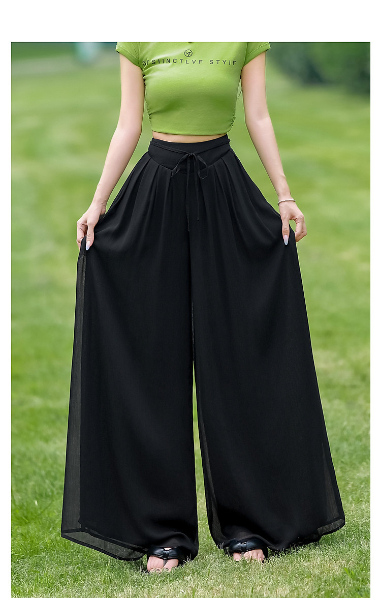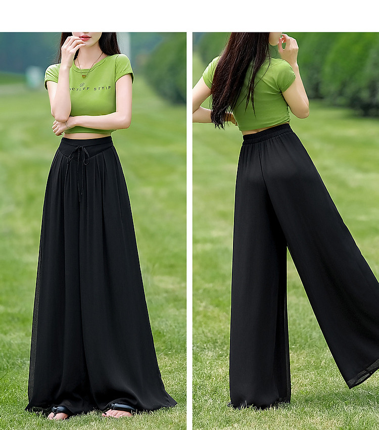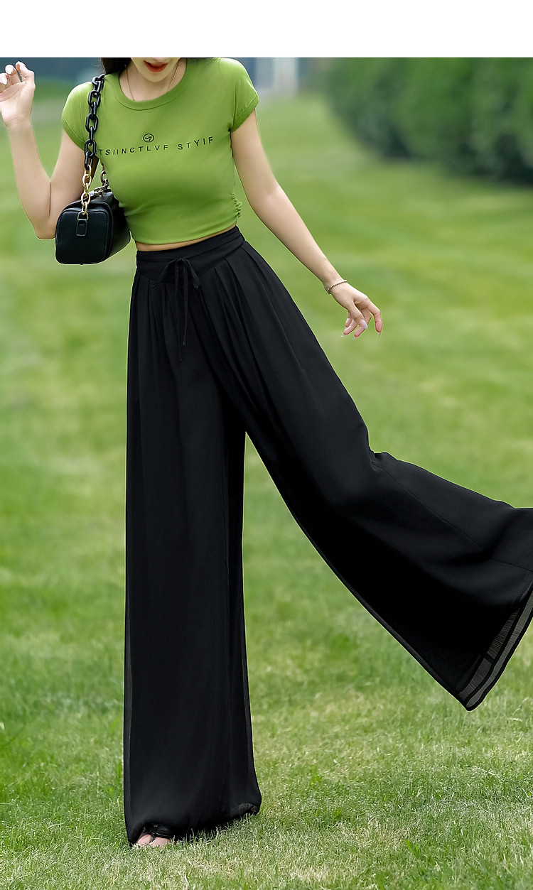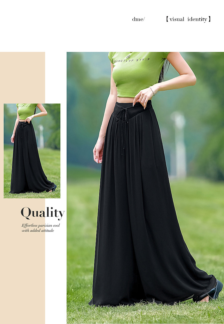 商品名称:【飘逸压褶阔腿裤】夏通勤简约宽腰节轻薄微皱顺纡绉雪纺休闲裤 275393