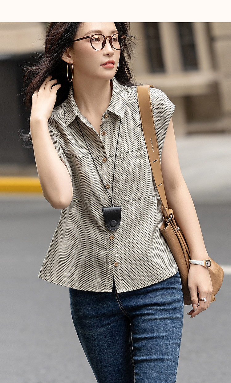 商品名称:【夏日轻氧吧】呼吸感含亚麻衬衫自然褶皱复古密格舒适衬衣女上衣 996801