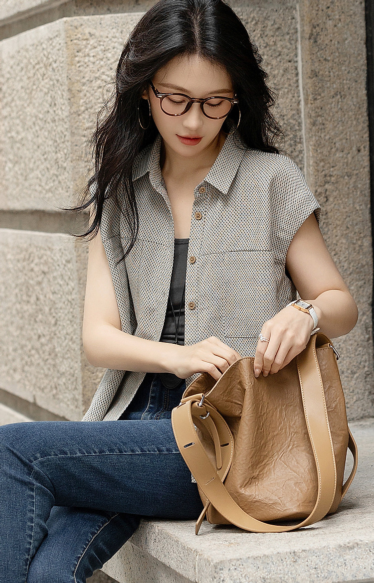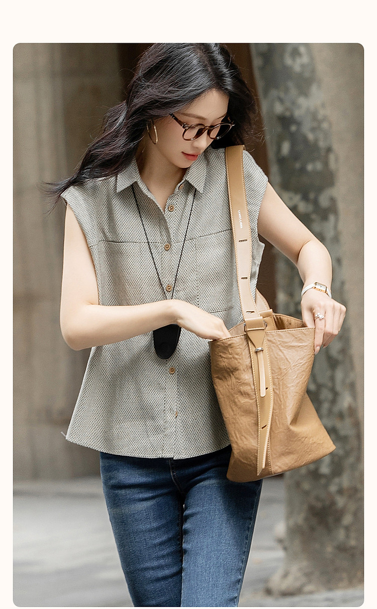 【夏日轻氧吧】呼吸感含亚麻衬衫自然褶皱复古密格舒适衬衣女上衣 996801