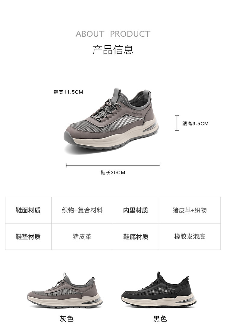 商品名称:百丽男鞋网面透气套脚夏季休闲鞋厚底健步鞋爸爸运动鞋 058010
