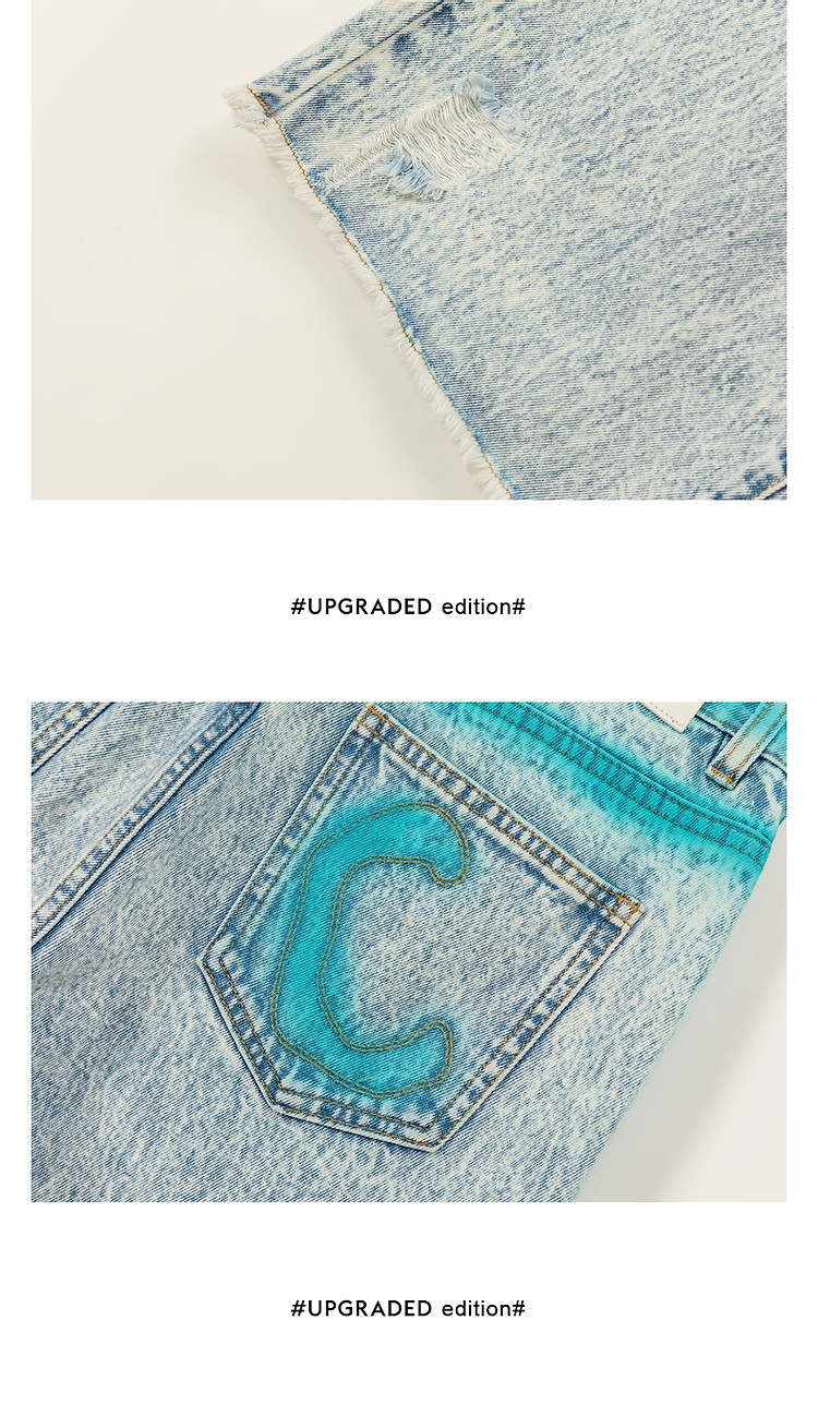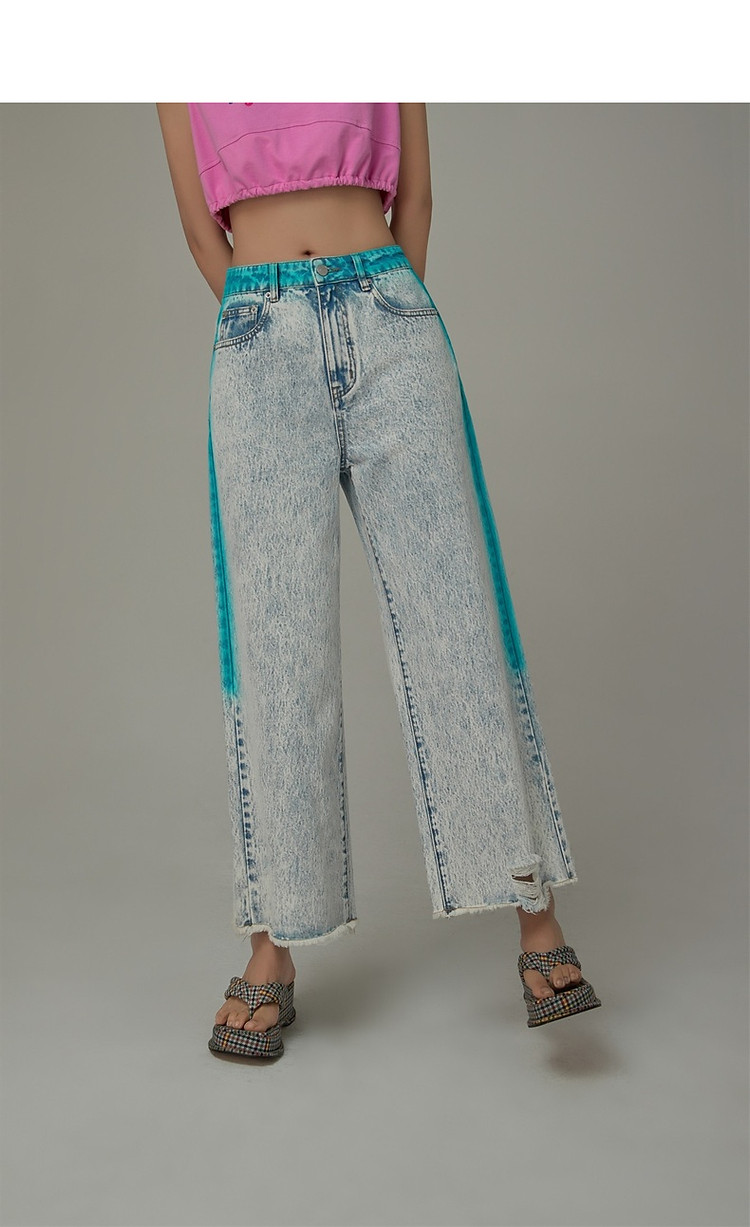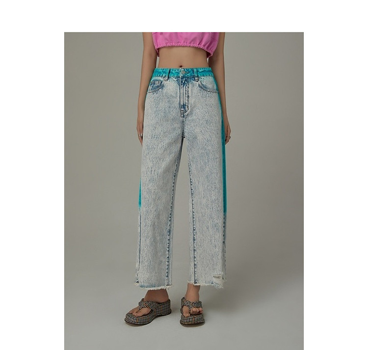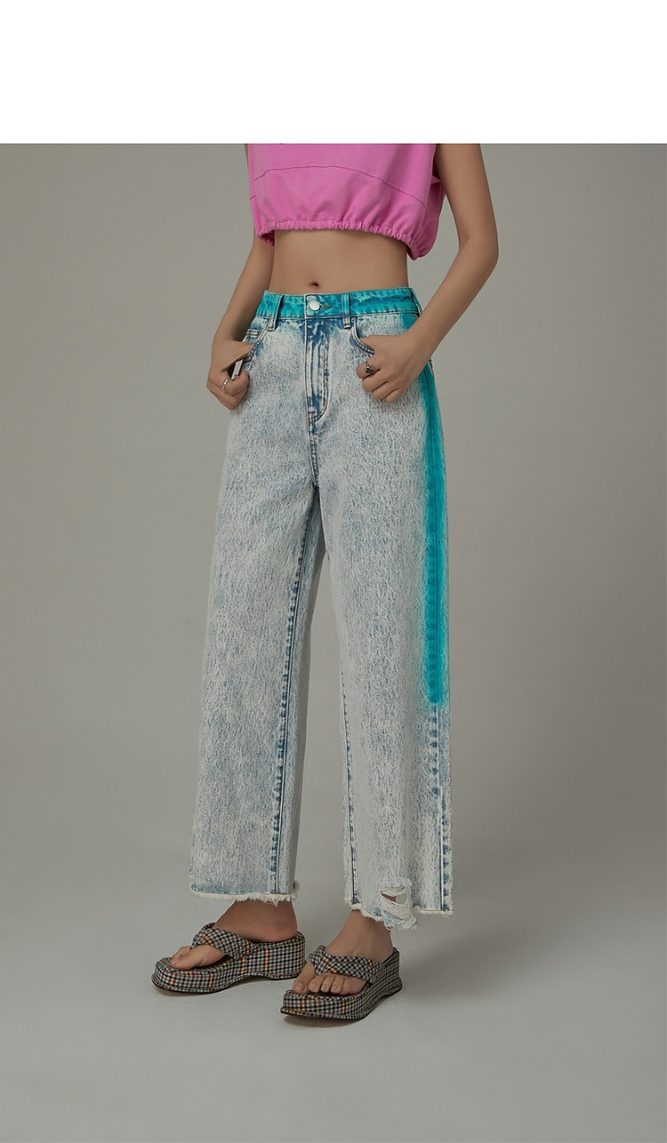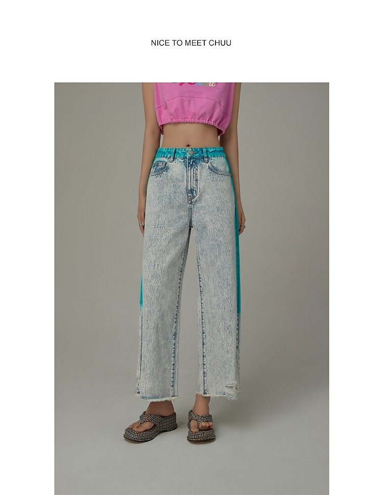 商品名称:高腰直筒牛仔裤女夏设计感宽松显瘦破洞毛边裤子 489171