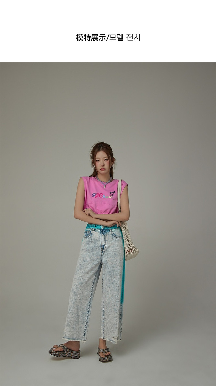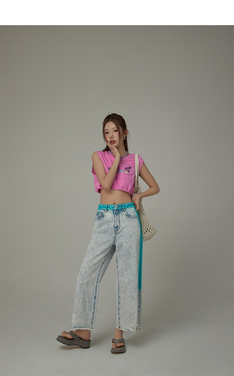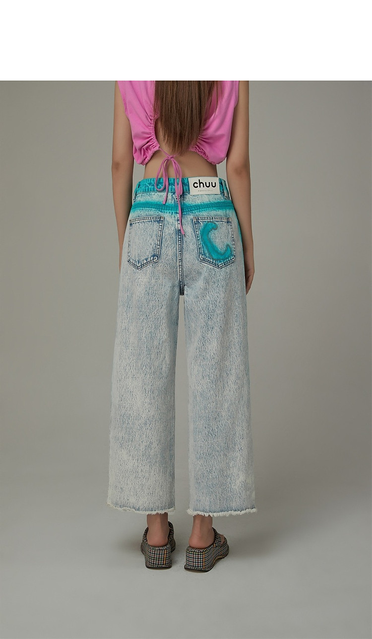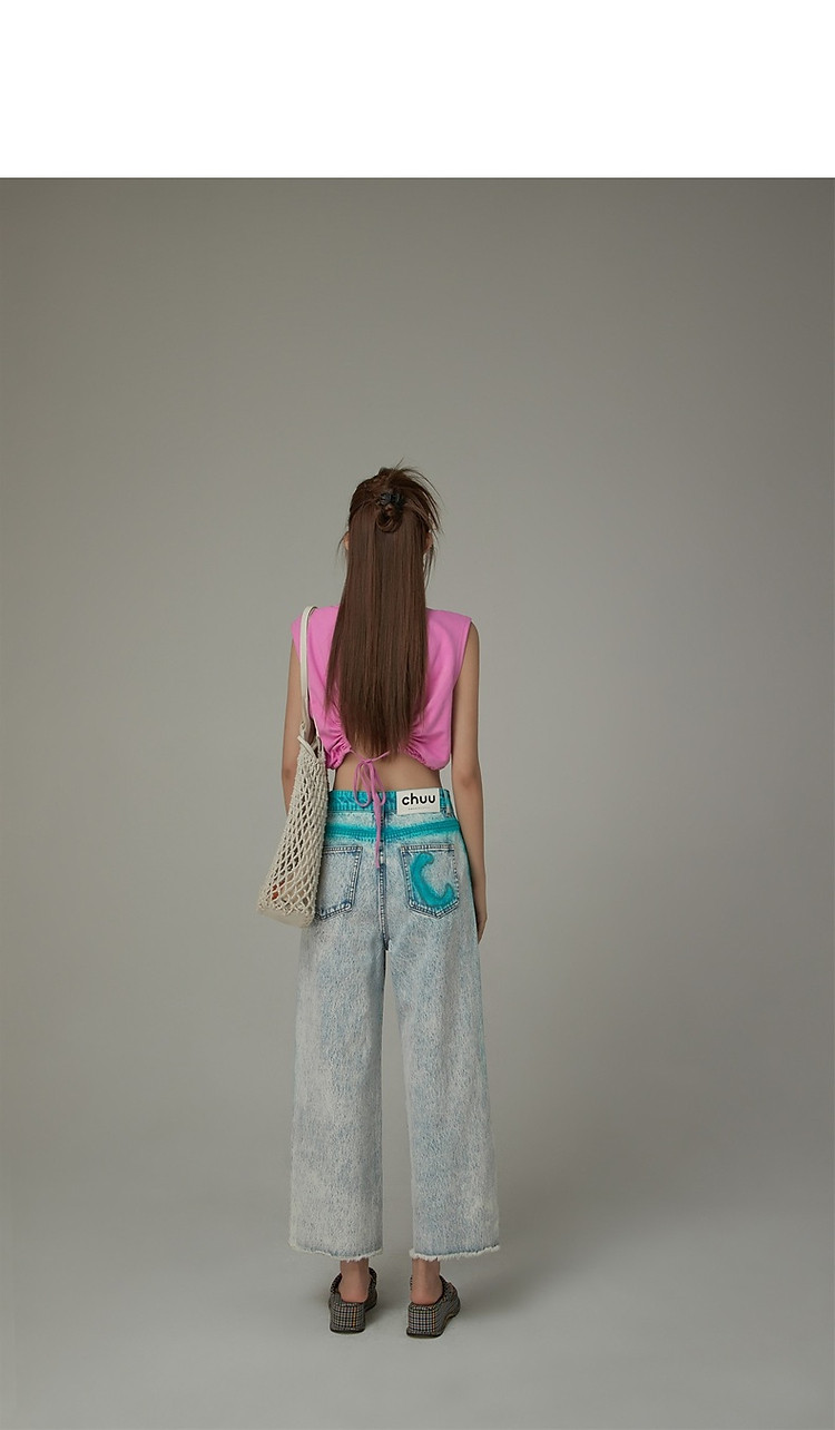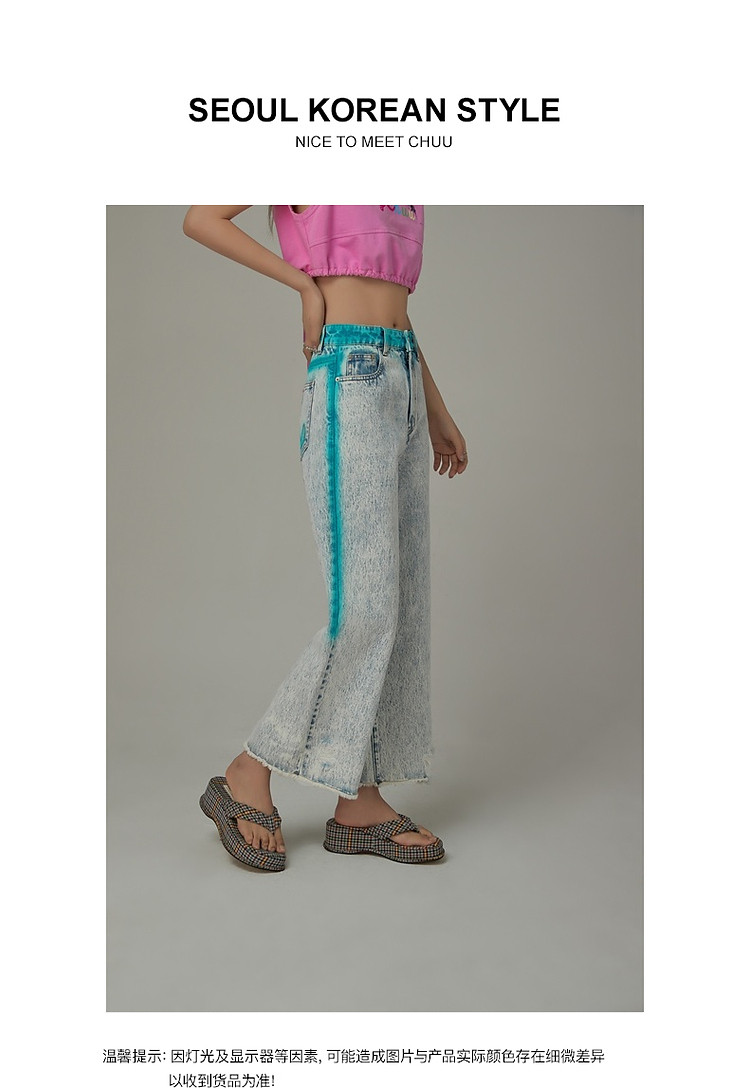 商品名称:高腰直筒牛仔裤女夏设计感宽松显瘦破洞毛边裤子 489171