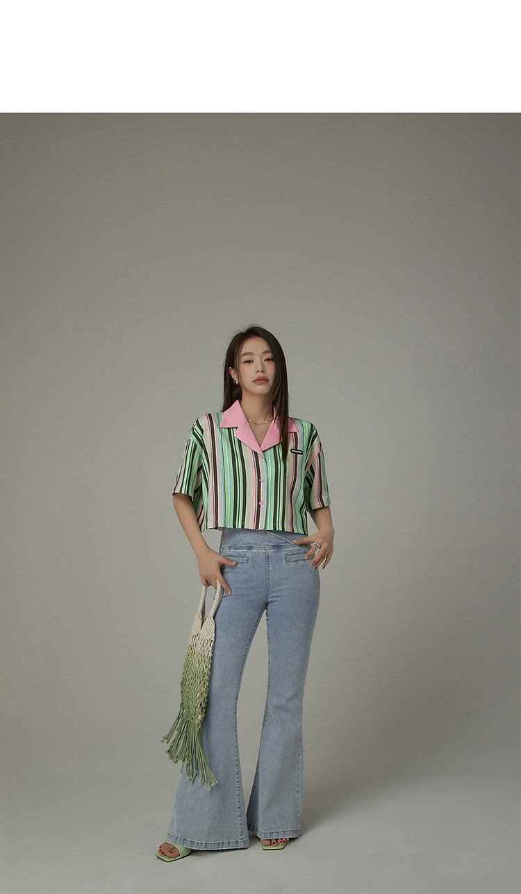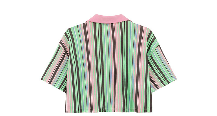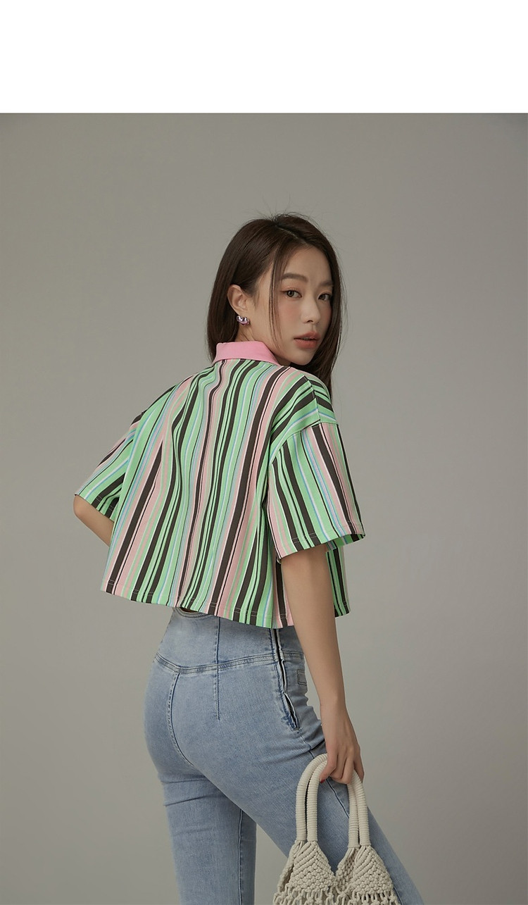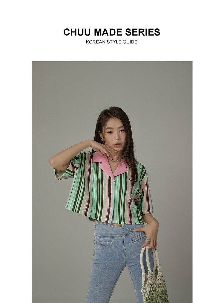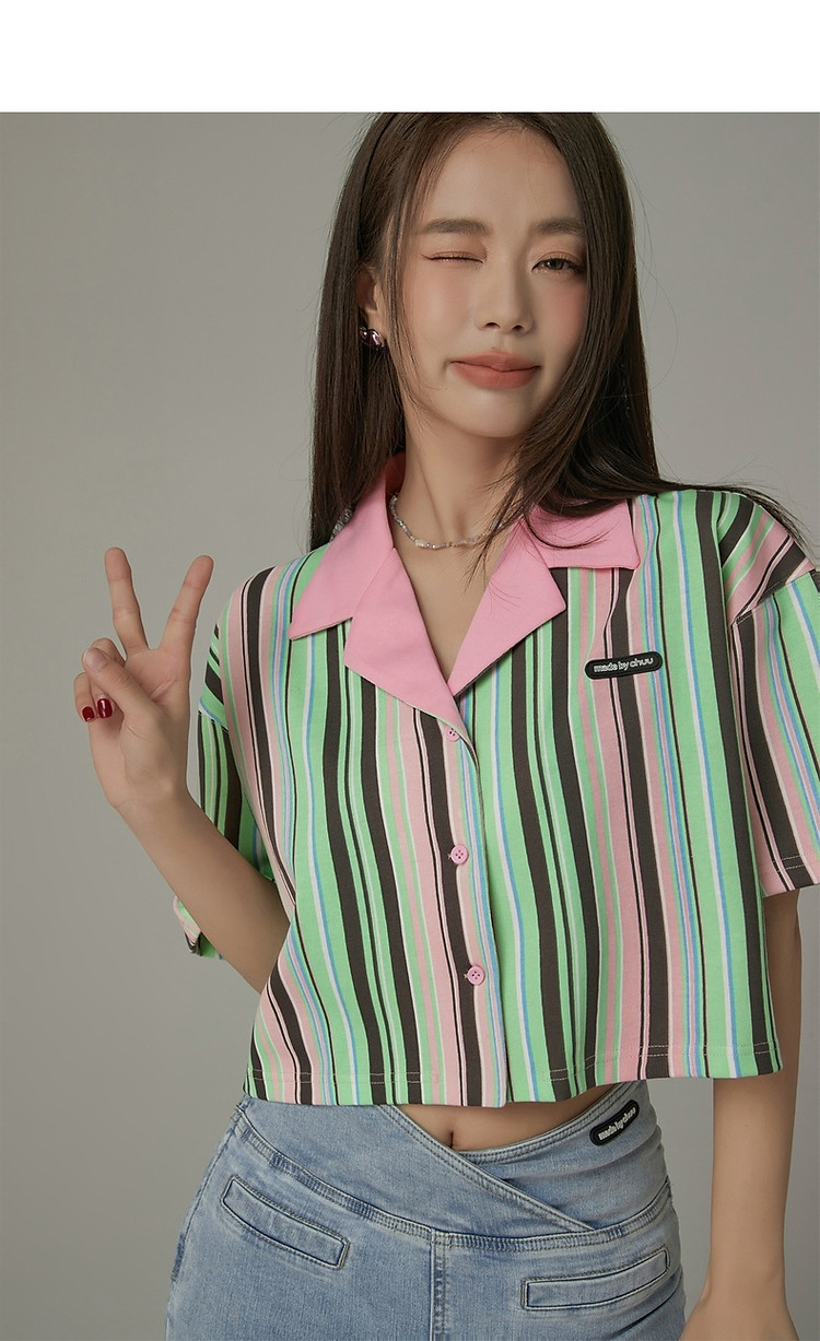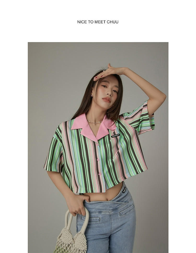 商品名称:翻领条纹衬衫女夏设计感小众宽松显瘦洋气短款上衣 497363