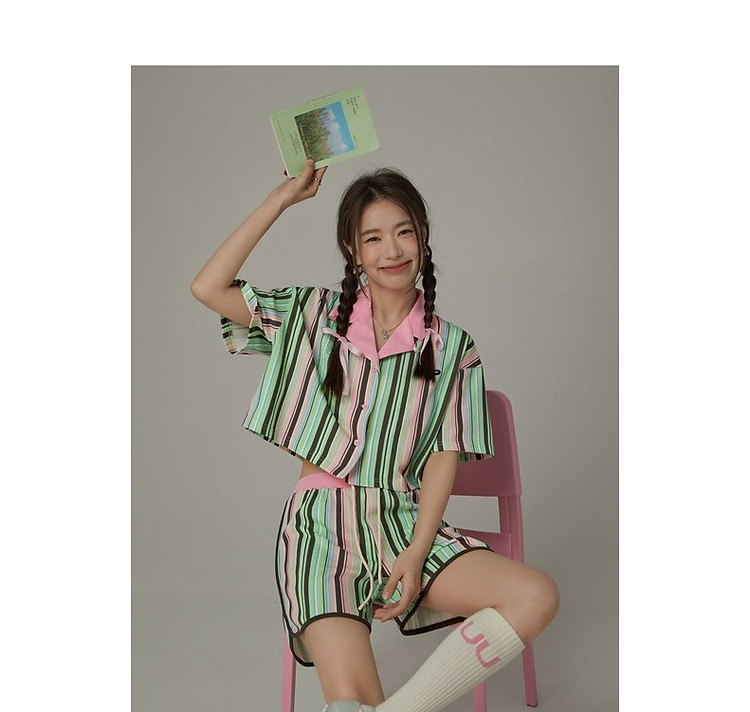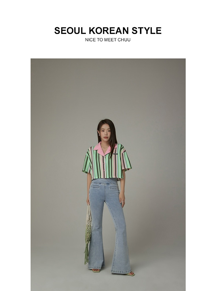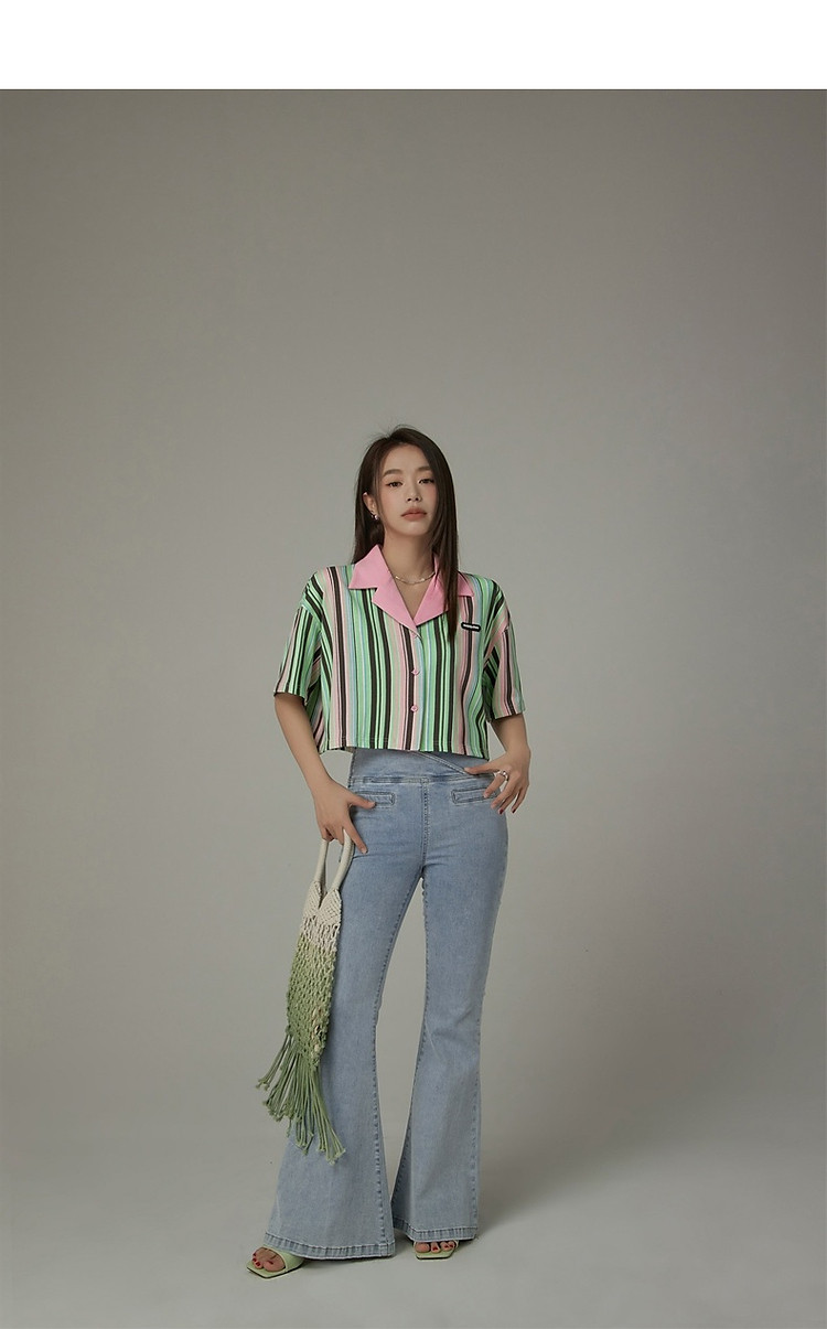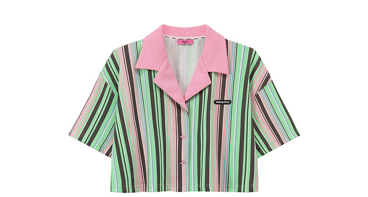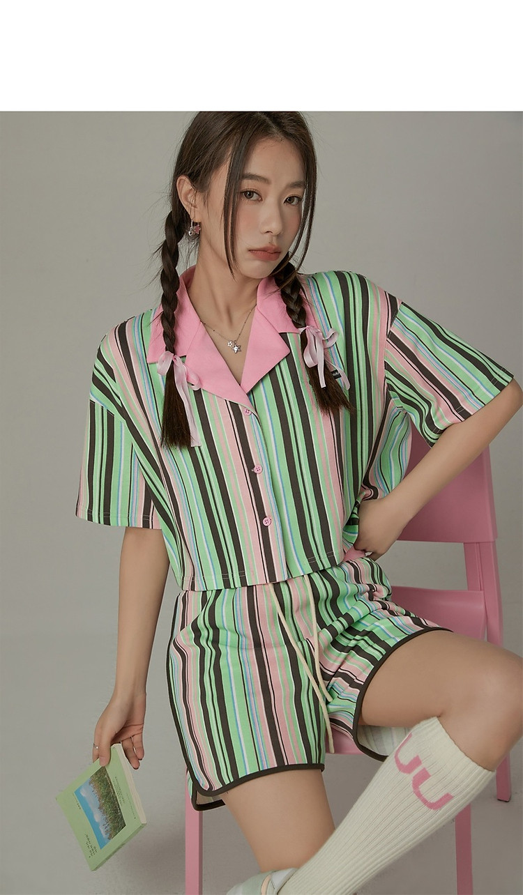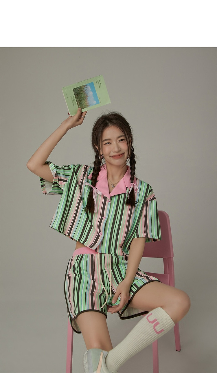 商品名称:翻领条纹衬衫女夏设计感小众宽松显瘦洋气短款上衣 497363