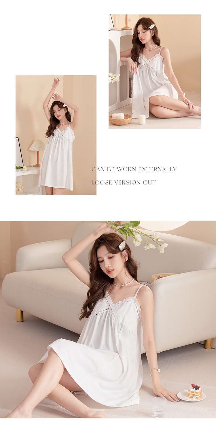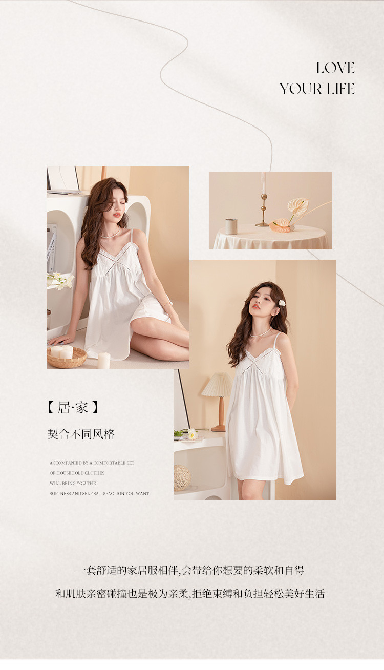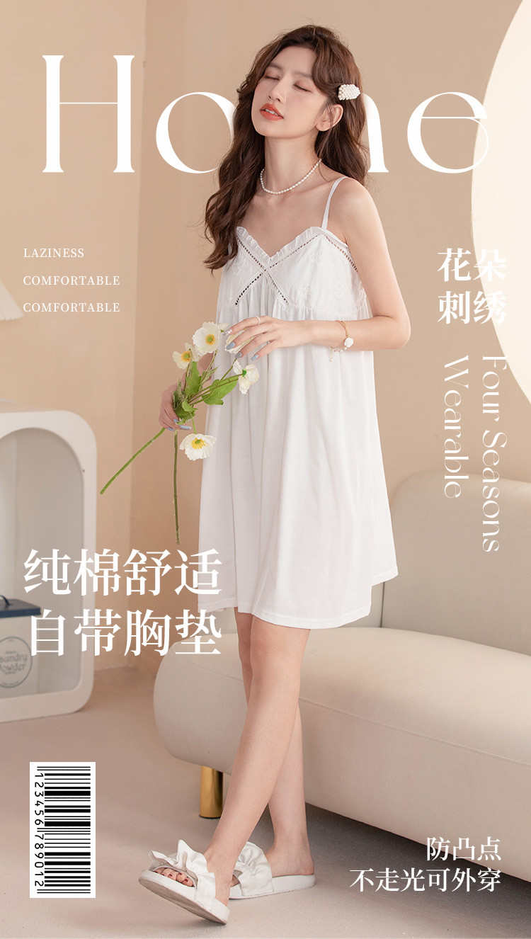【纯棉吊带裙】可外穿带胸垫睡裙女夏款性感纯欲家居服睡衣裙子 476107