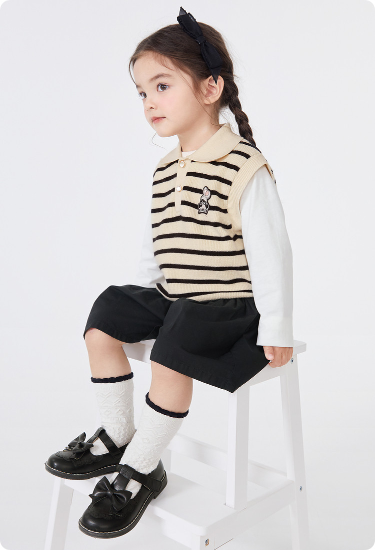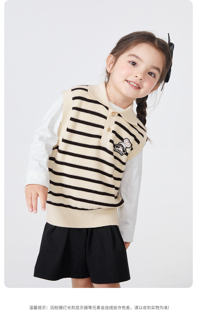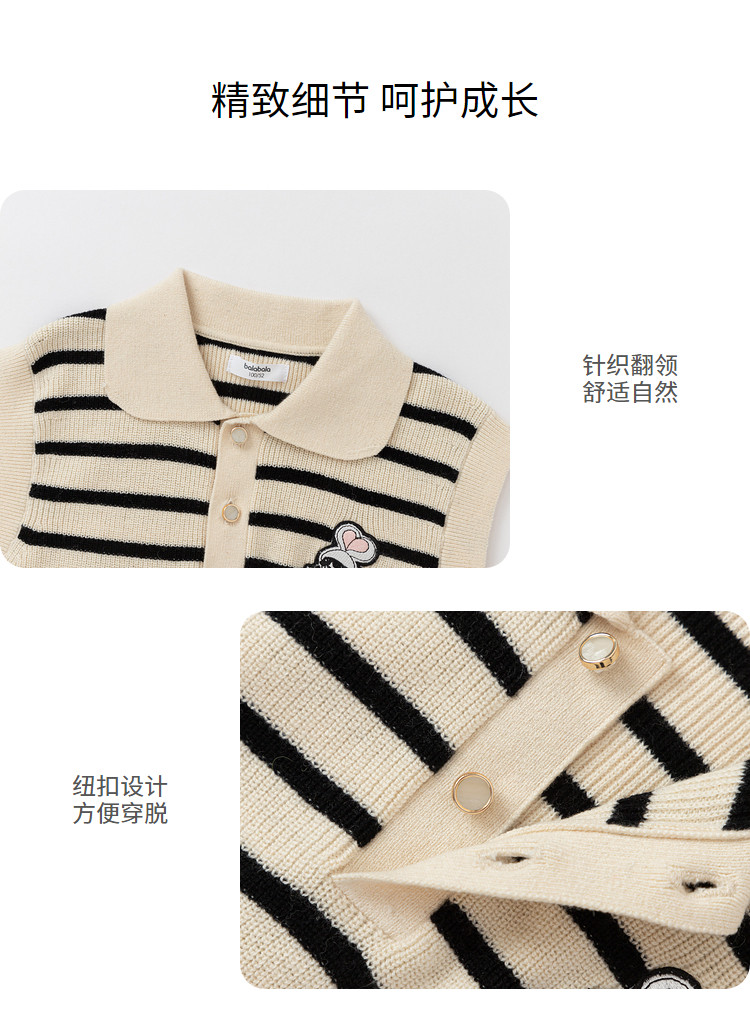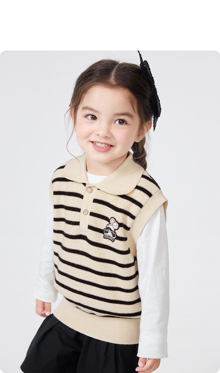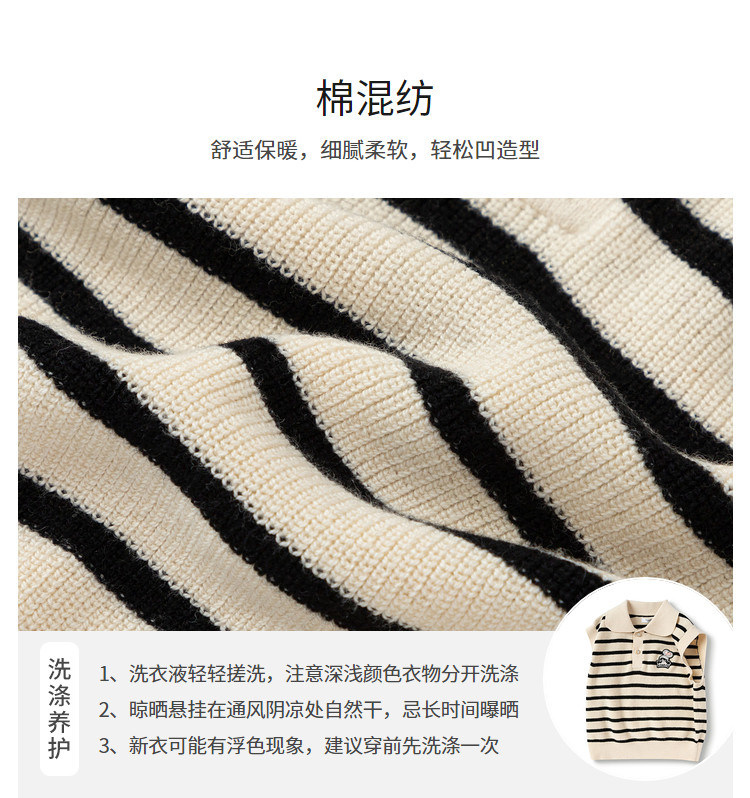 商品名称:POLO领女童背心儿童马甲婴儿针织春秋条纹无袖小童宝宝上衣 135045