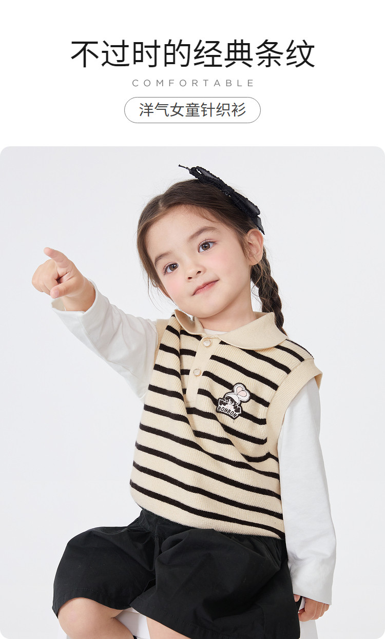 POLO领女童背心儿童马甲婴儿针织春秋条纹无袖小童宝宝上衣 135045