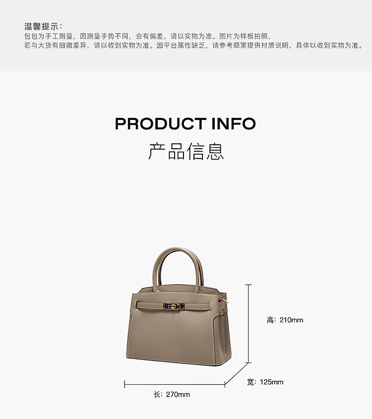商品名称:【鎏金岁月】百丽经典气质优雅铂金包轻奢高级托特包 424410