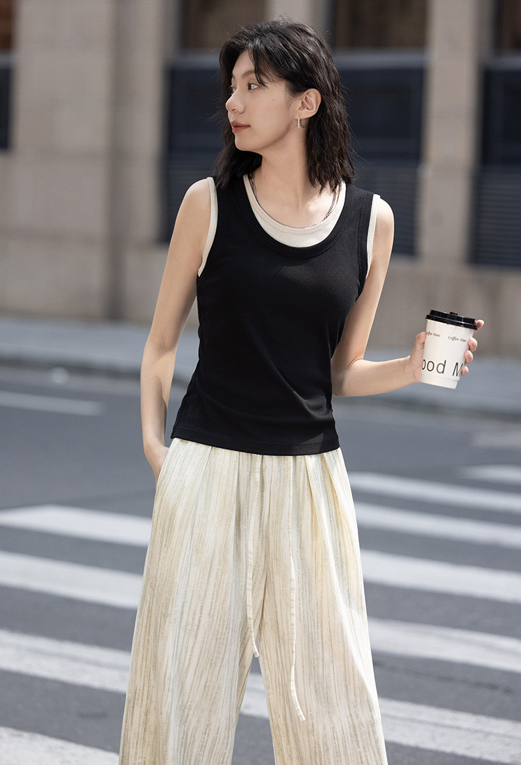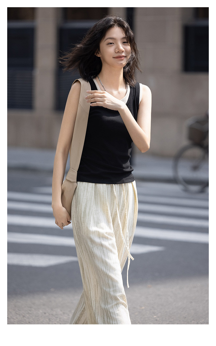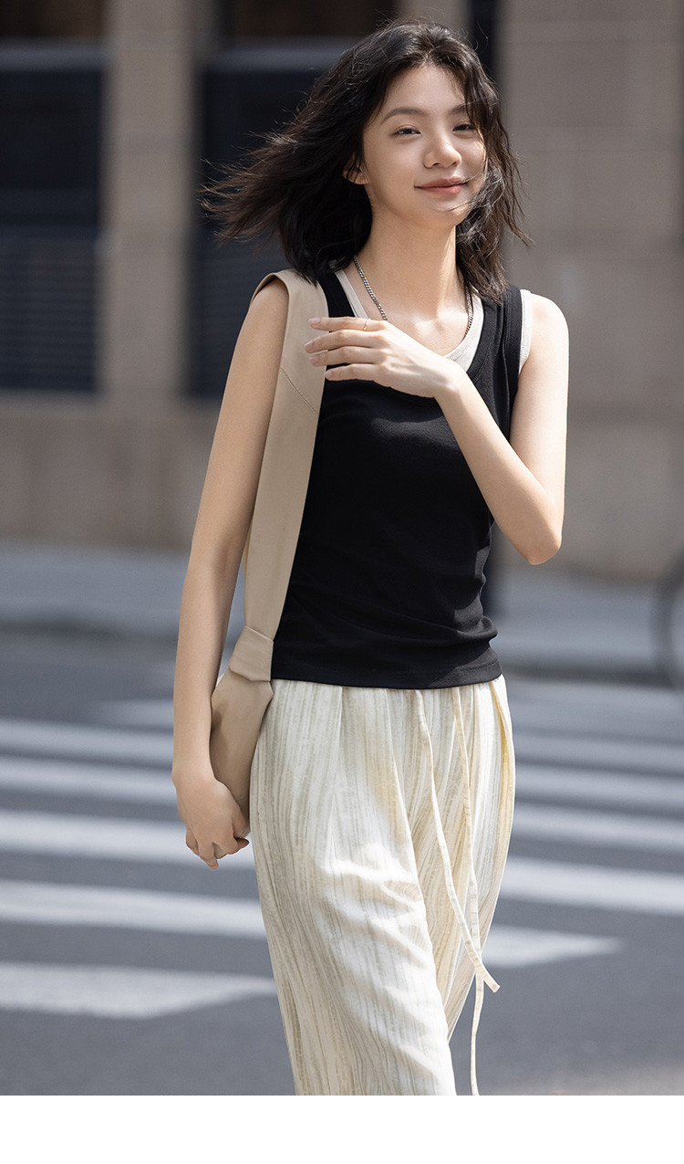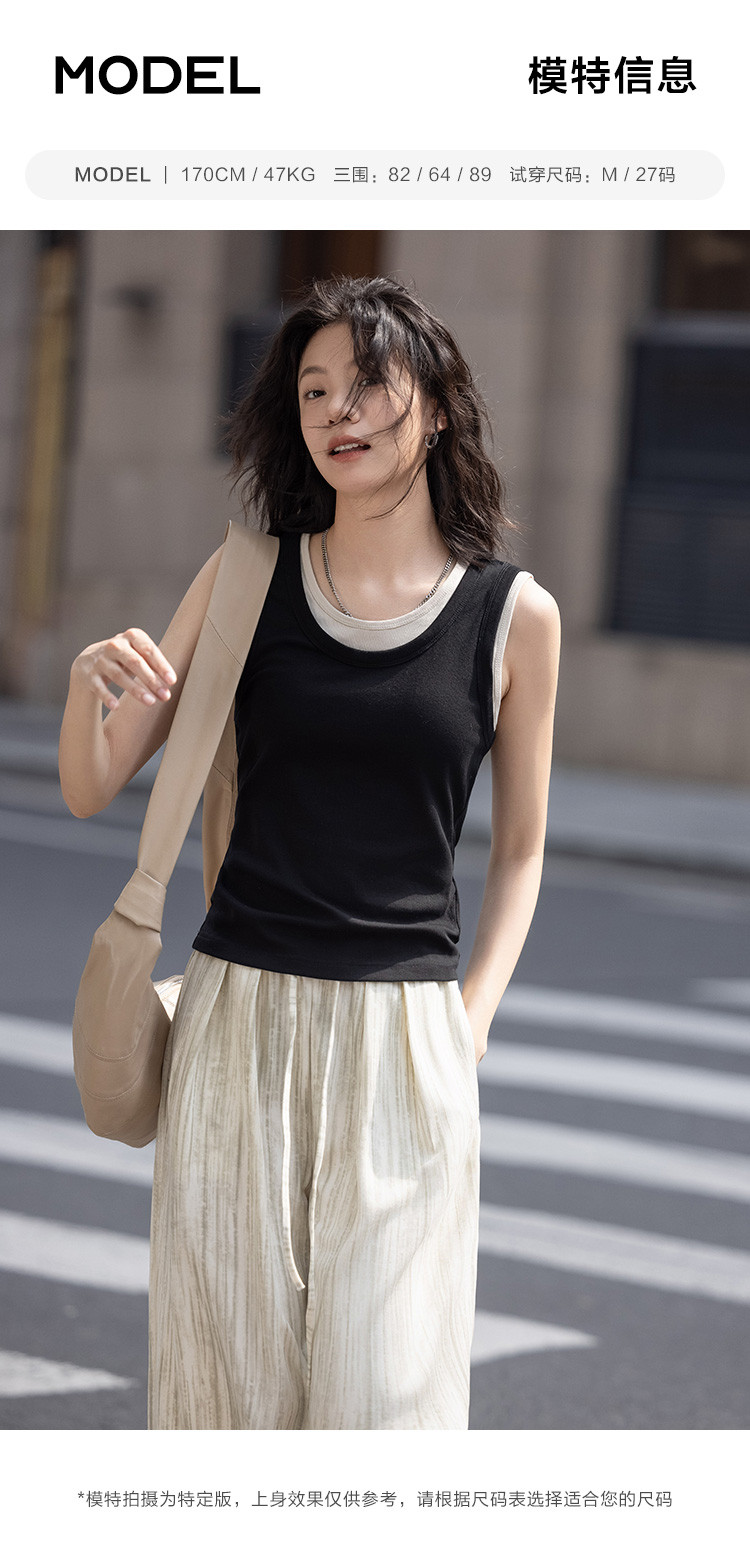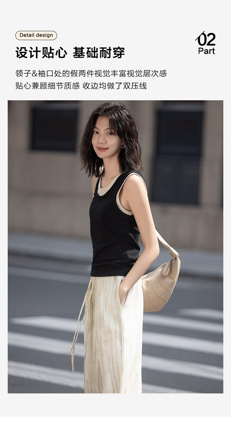 商品名称:【假两件基础款背心】夏款清爽小u领基础背心T恤女 718466