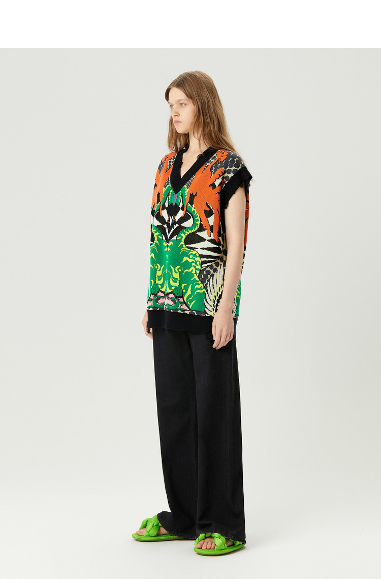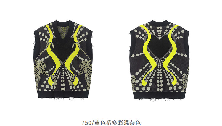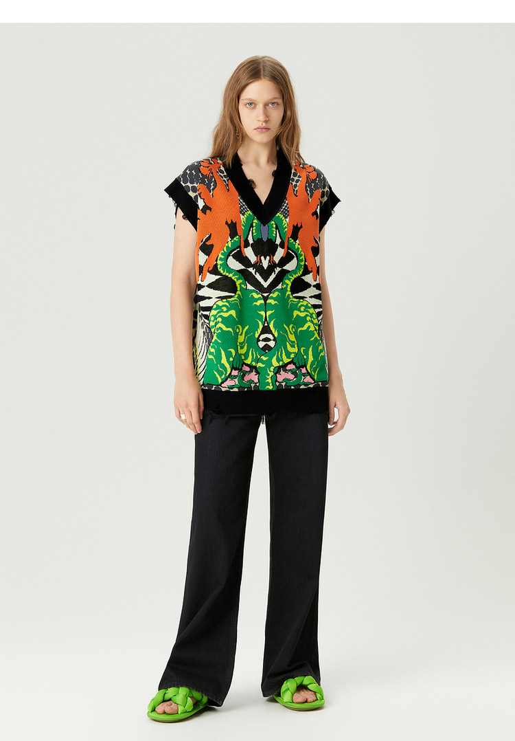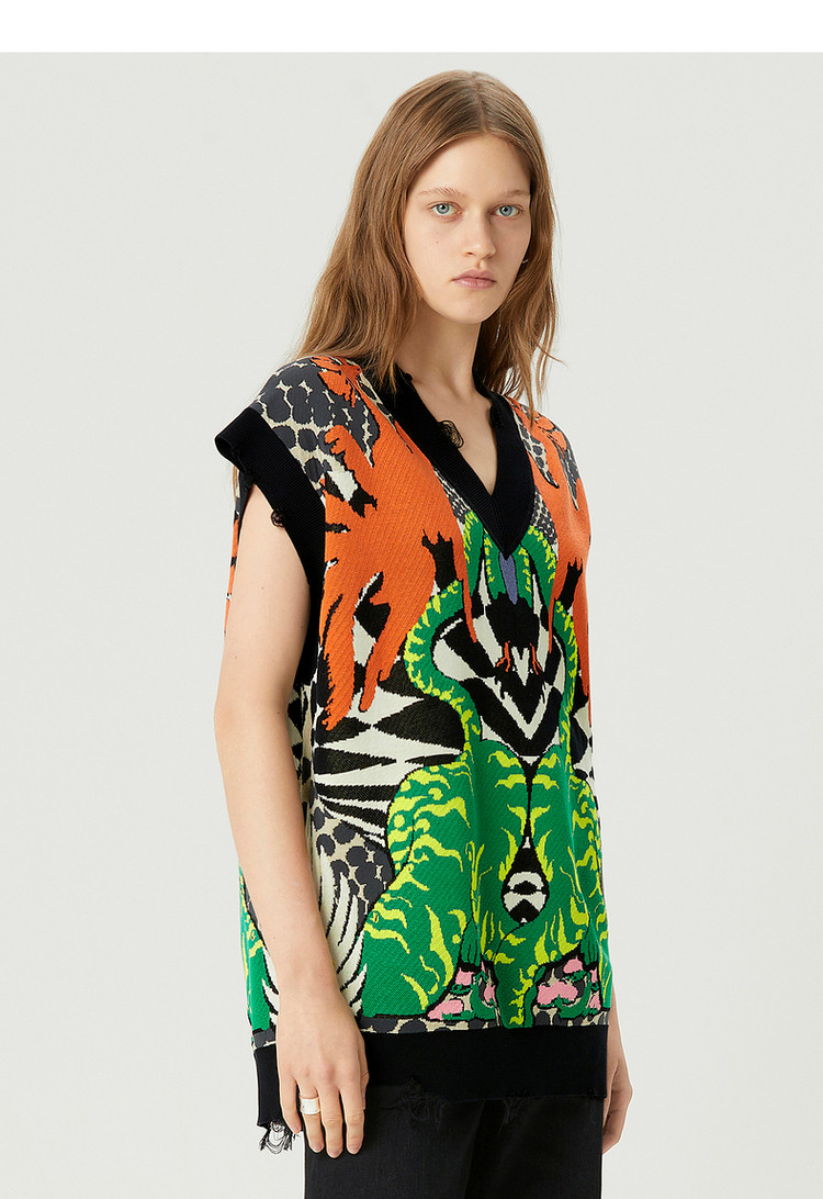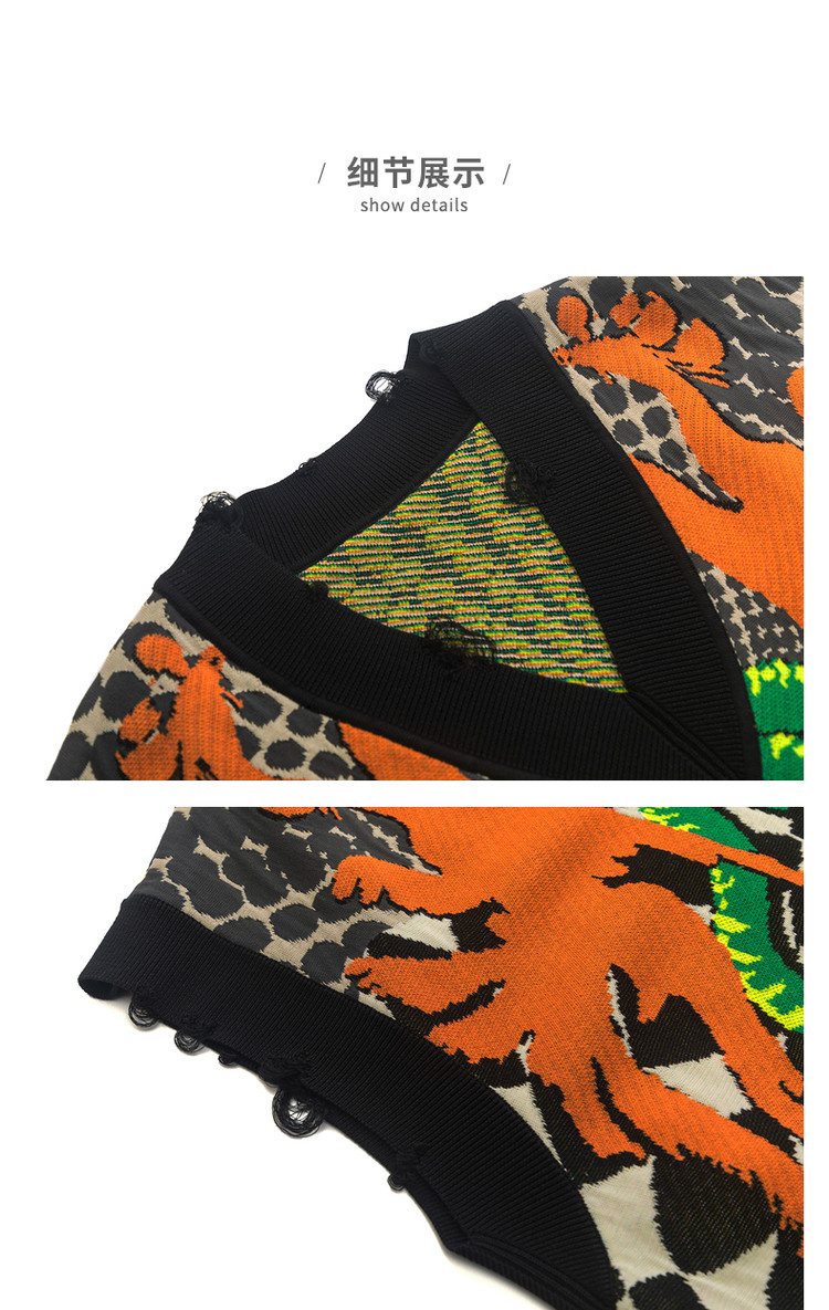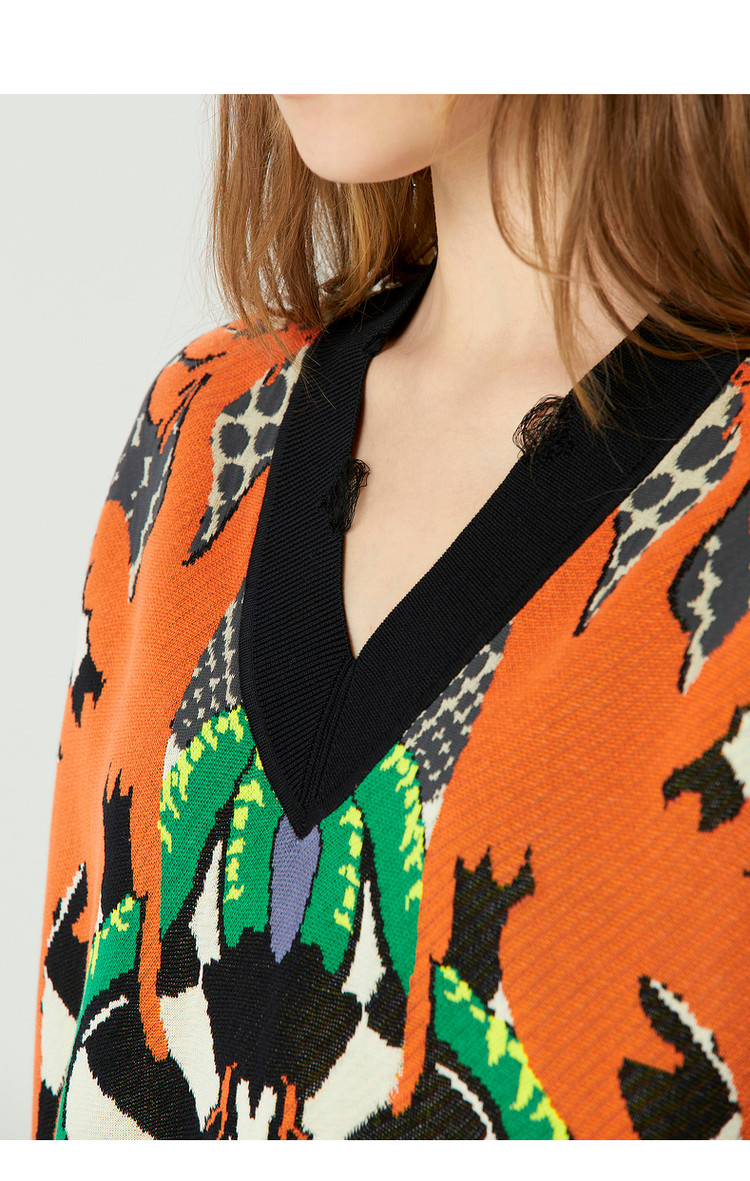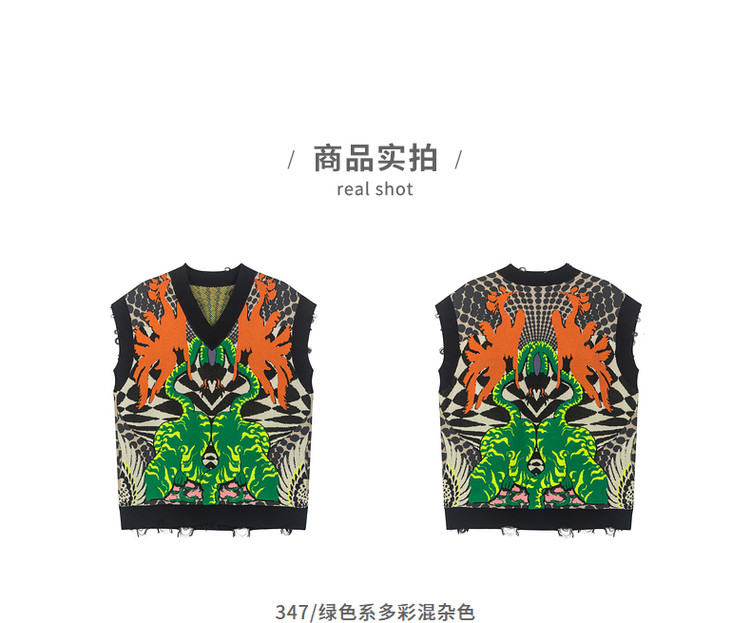 商品名称:春毛衫背心印花宽松V领针织衫女 452363