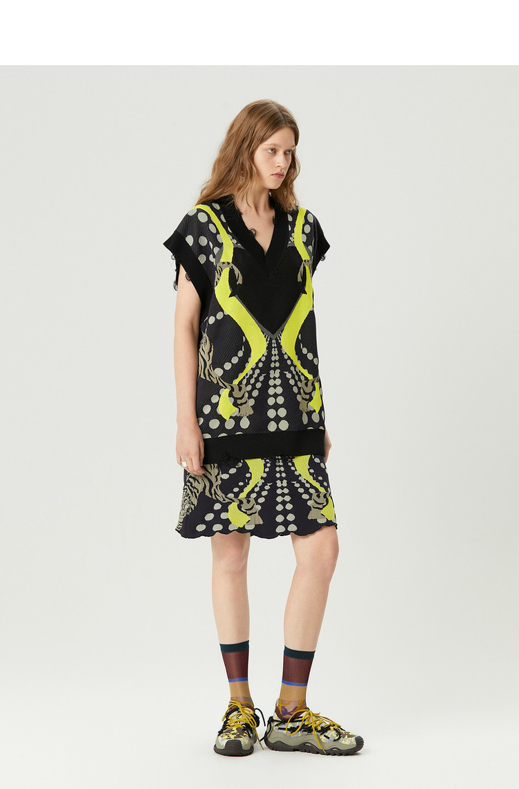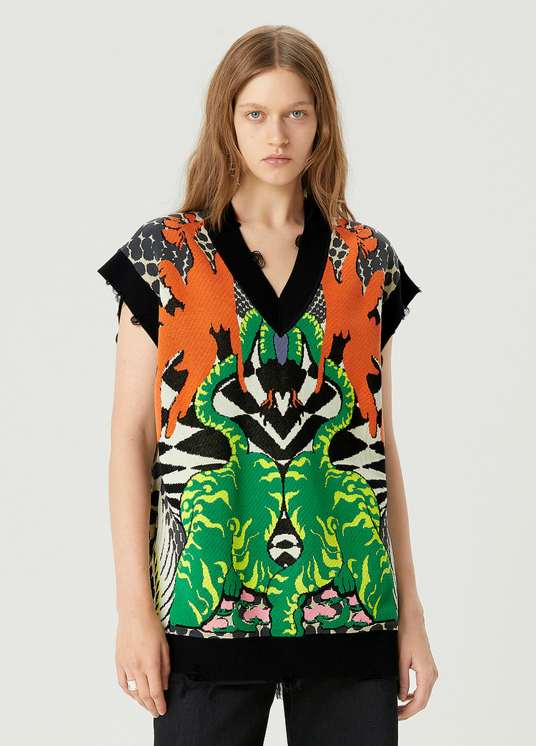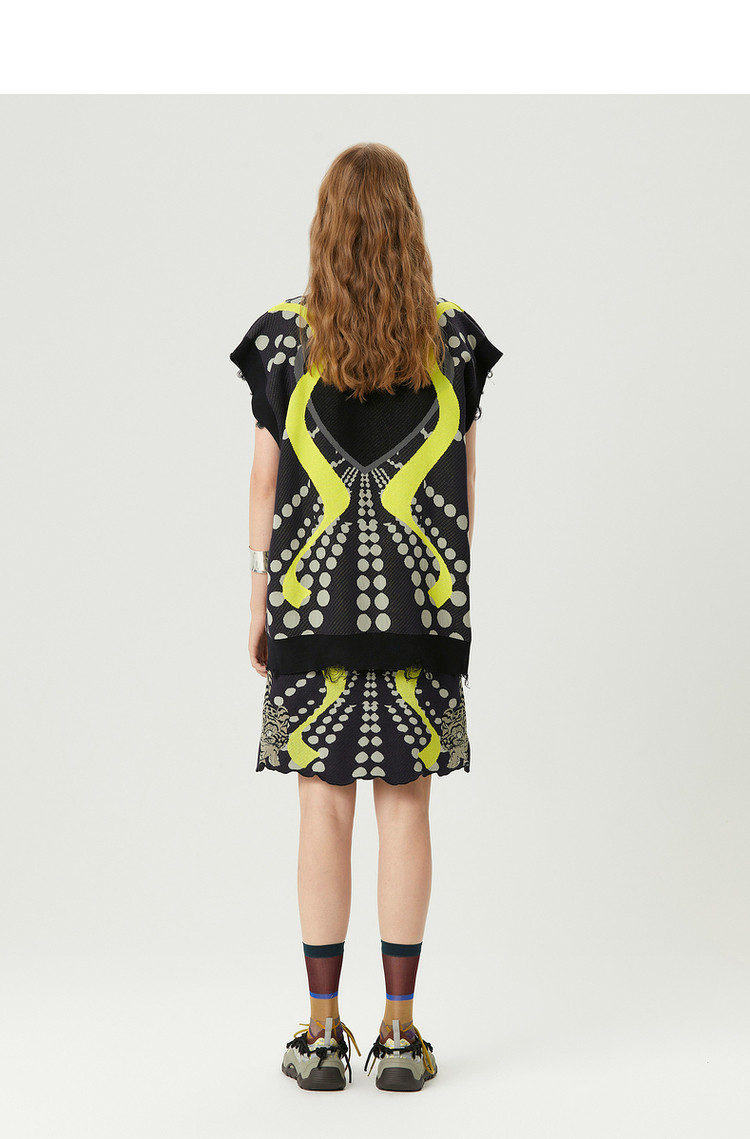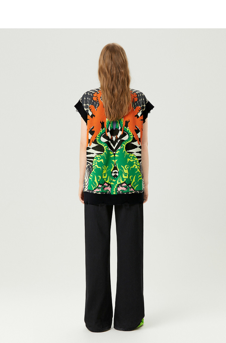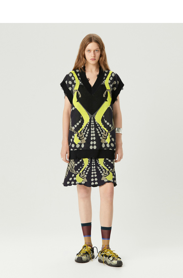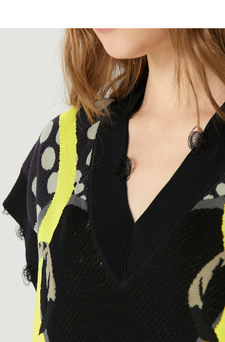 商品名称:春毛衫背心印花宽松V领针织衫女 452363