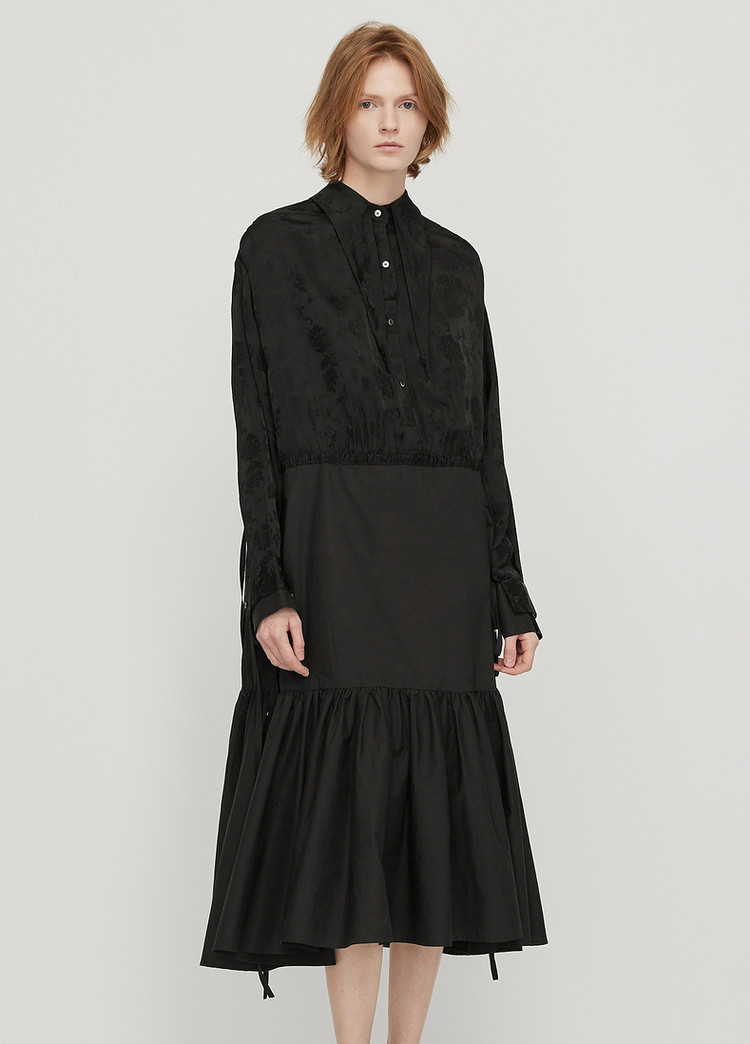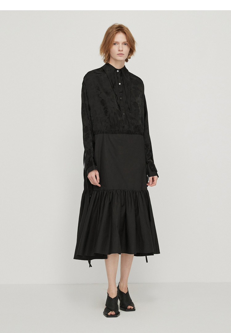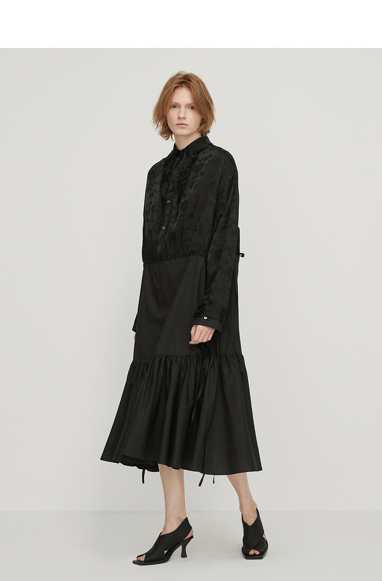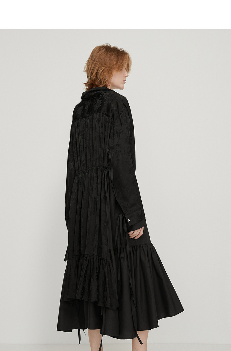 商品名称:春连衣裙翻领织带休闲拼接长裙女荷叶边裙 757323