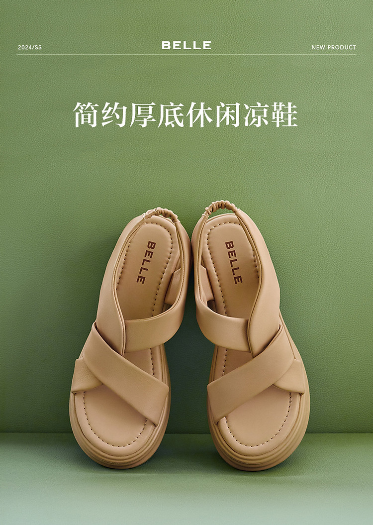 百丽厚底休闲凉鞋春夏罗马凉鞋女沙滩鞋运动凉鞋 268890