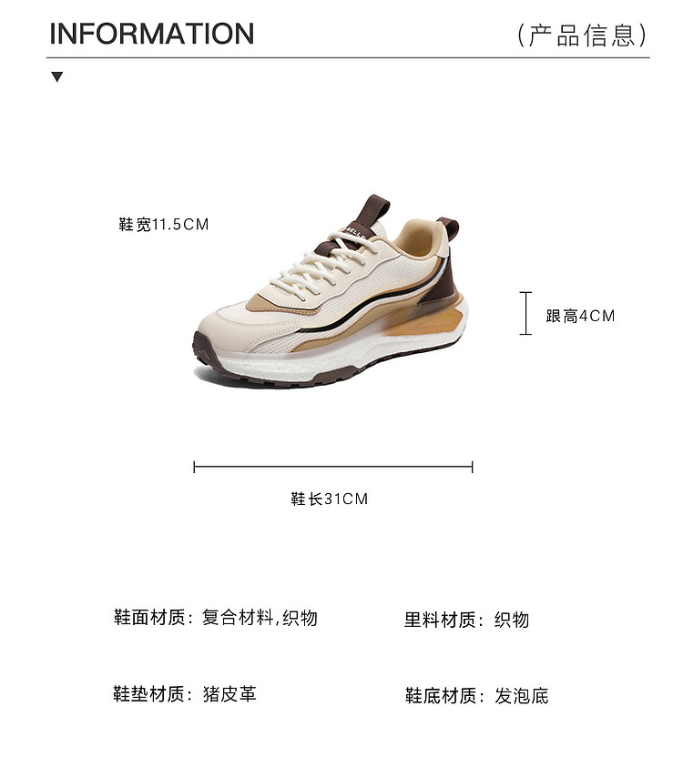 商品名称:百丽网面透气休闲鞋男春新轻便厚底户外运动风老爹鞋 787290
