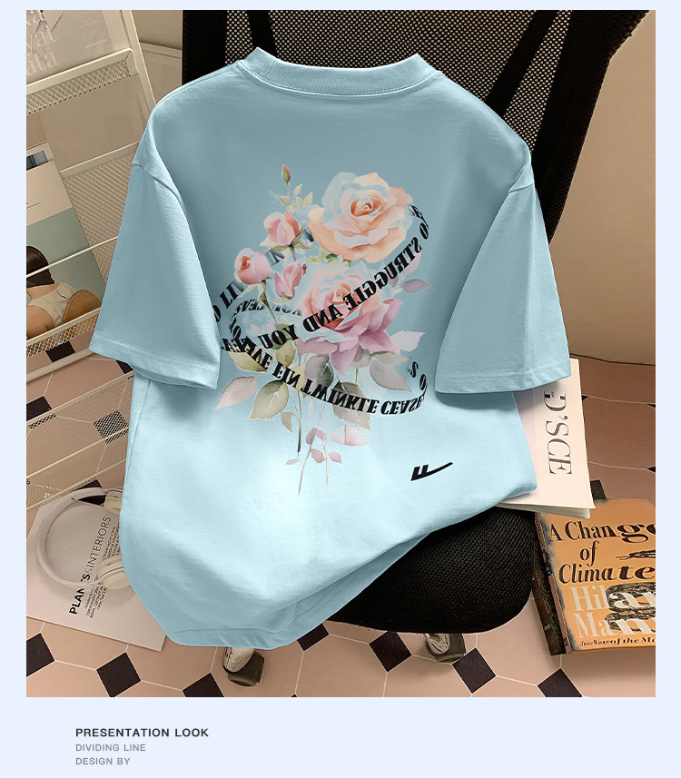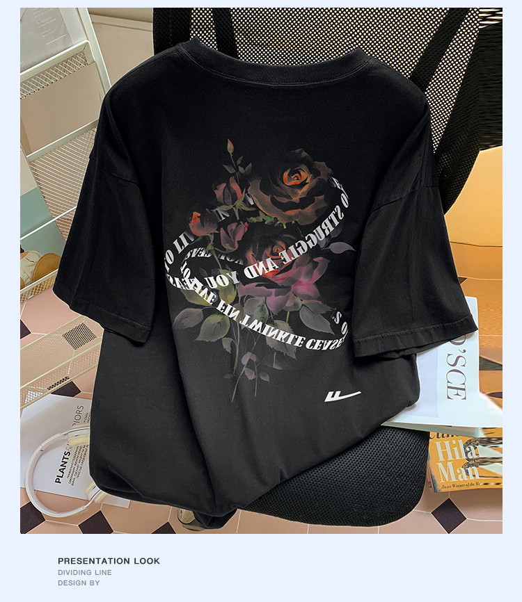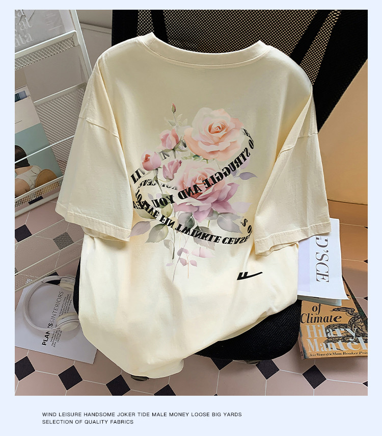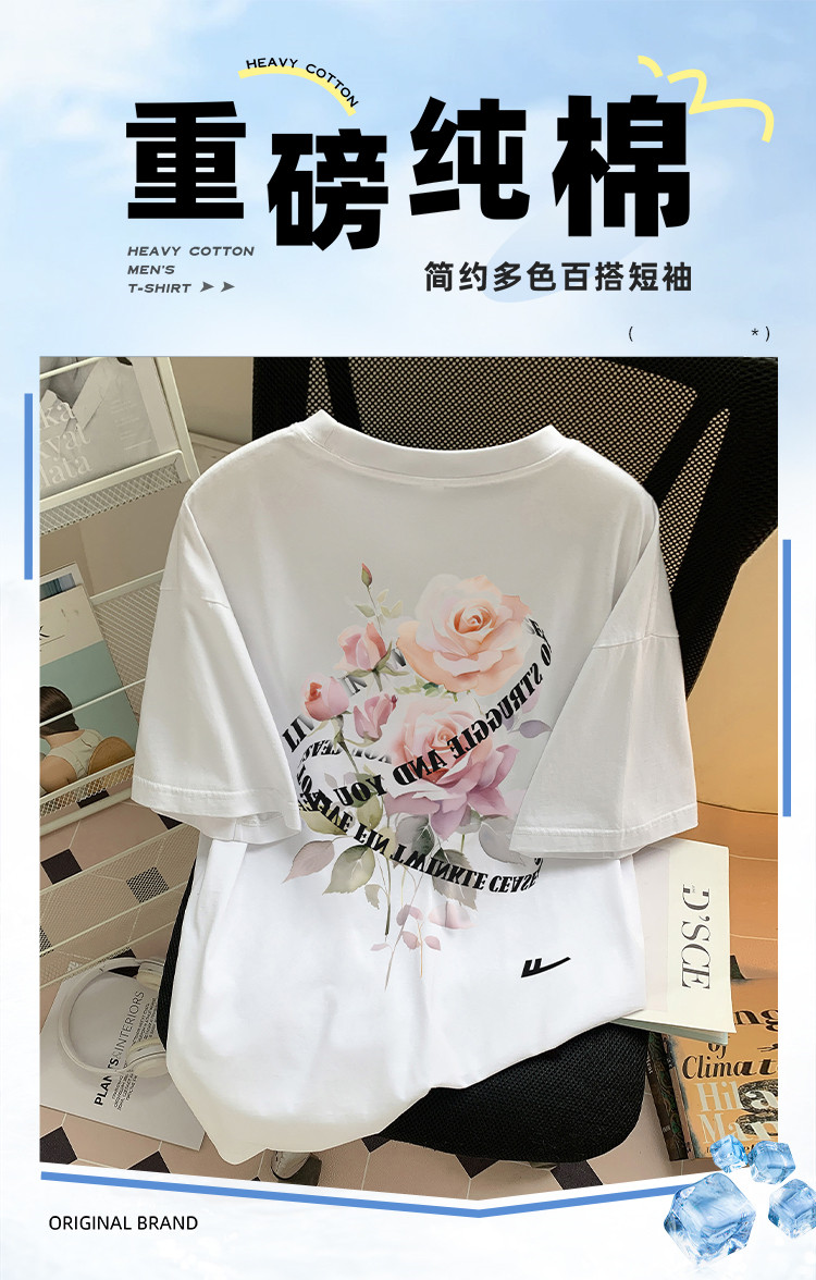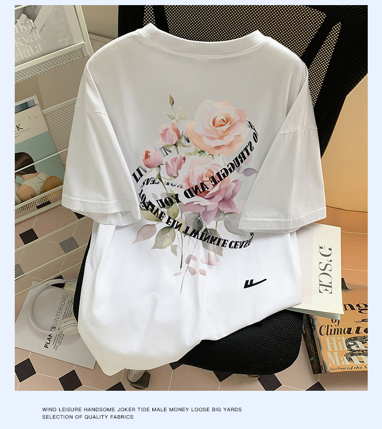 商品名称:【100%棉】情侣纯棉玫瑰印花T恤女短袖ins慵懒风宽松半袖 866323