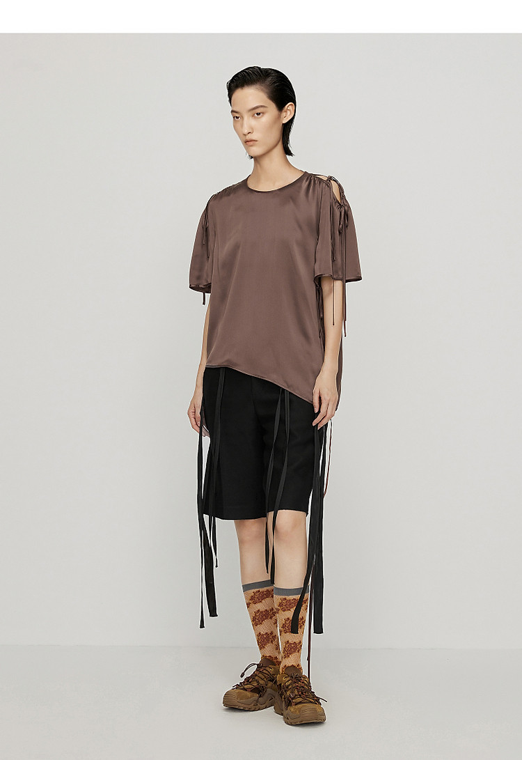 夏衬衣丝绸圆领短袖上衣女 038539