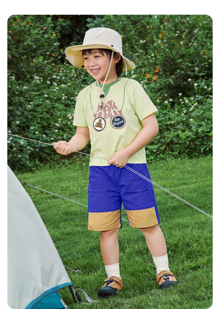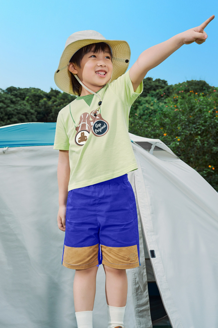 Gap男幼童2024春秋季刺绣logo撞色短裤儿童装运动休闲裤466595 028826