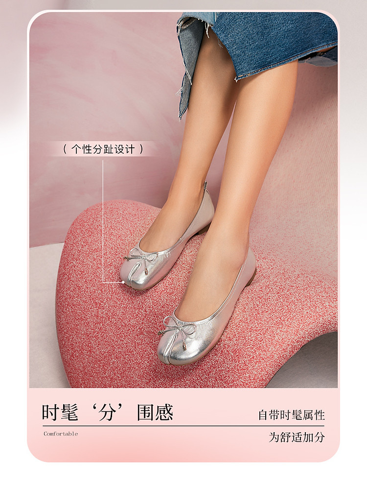 百丽分趾鞋软底芭蕾鞋小银鞋晚晚鞋子平底浅口单鞋女 967130