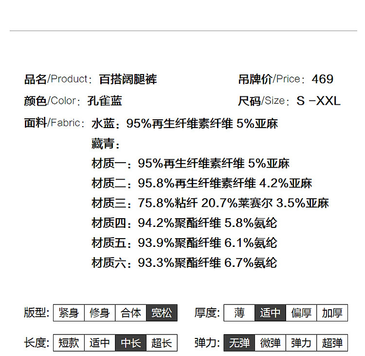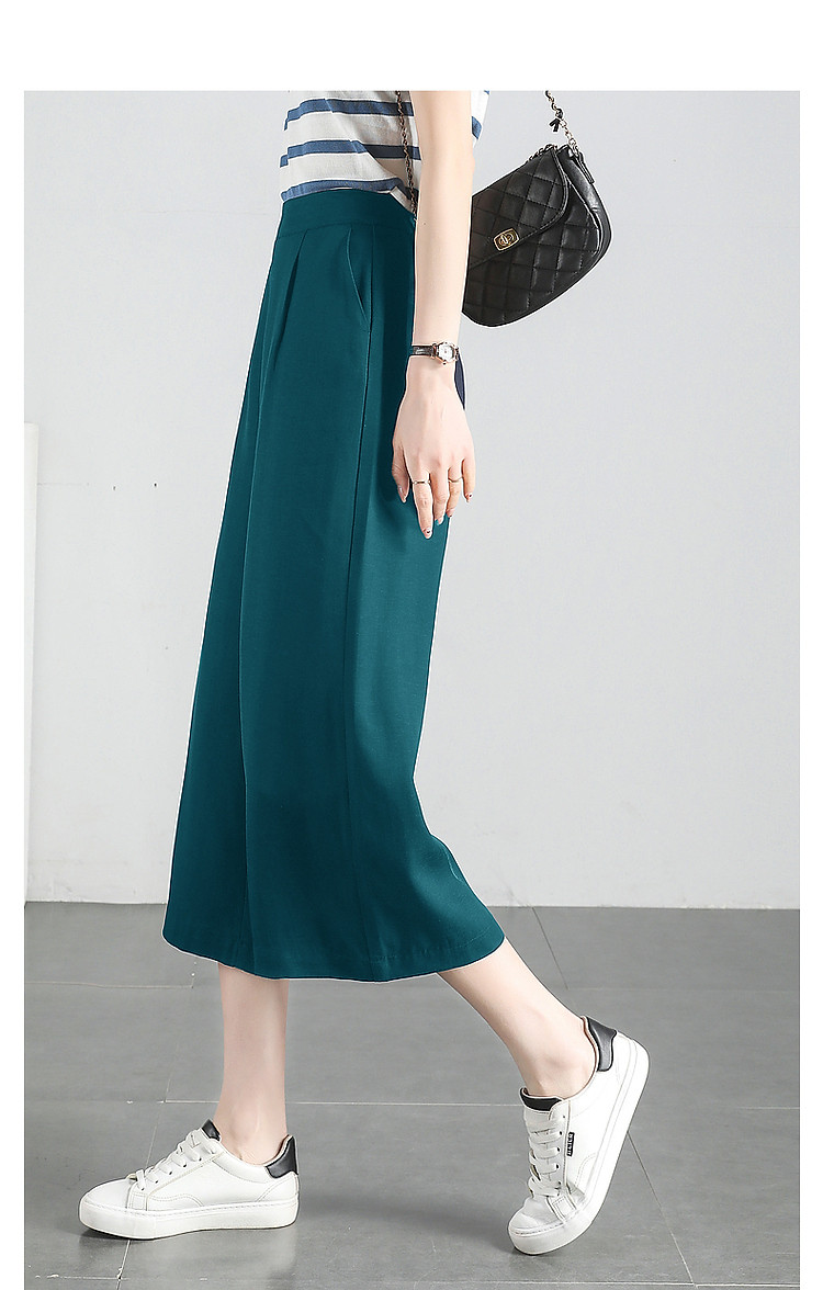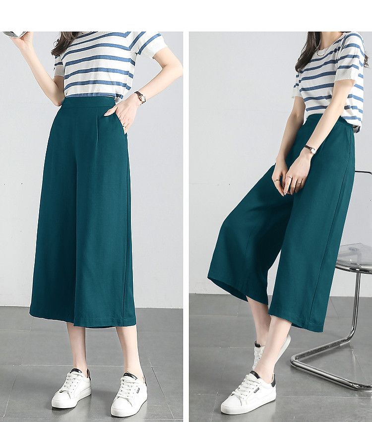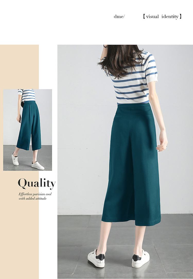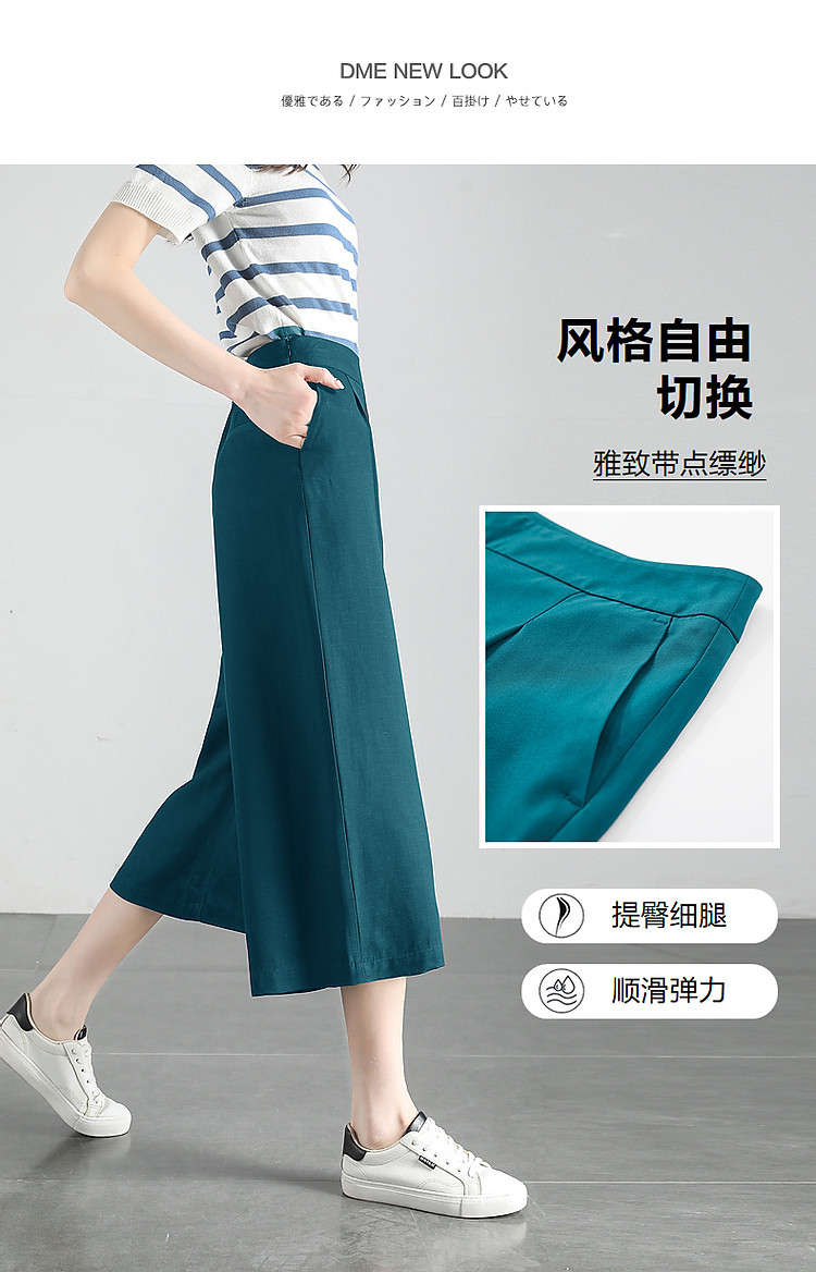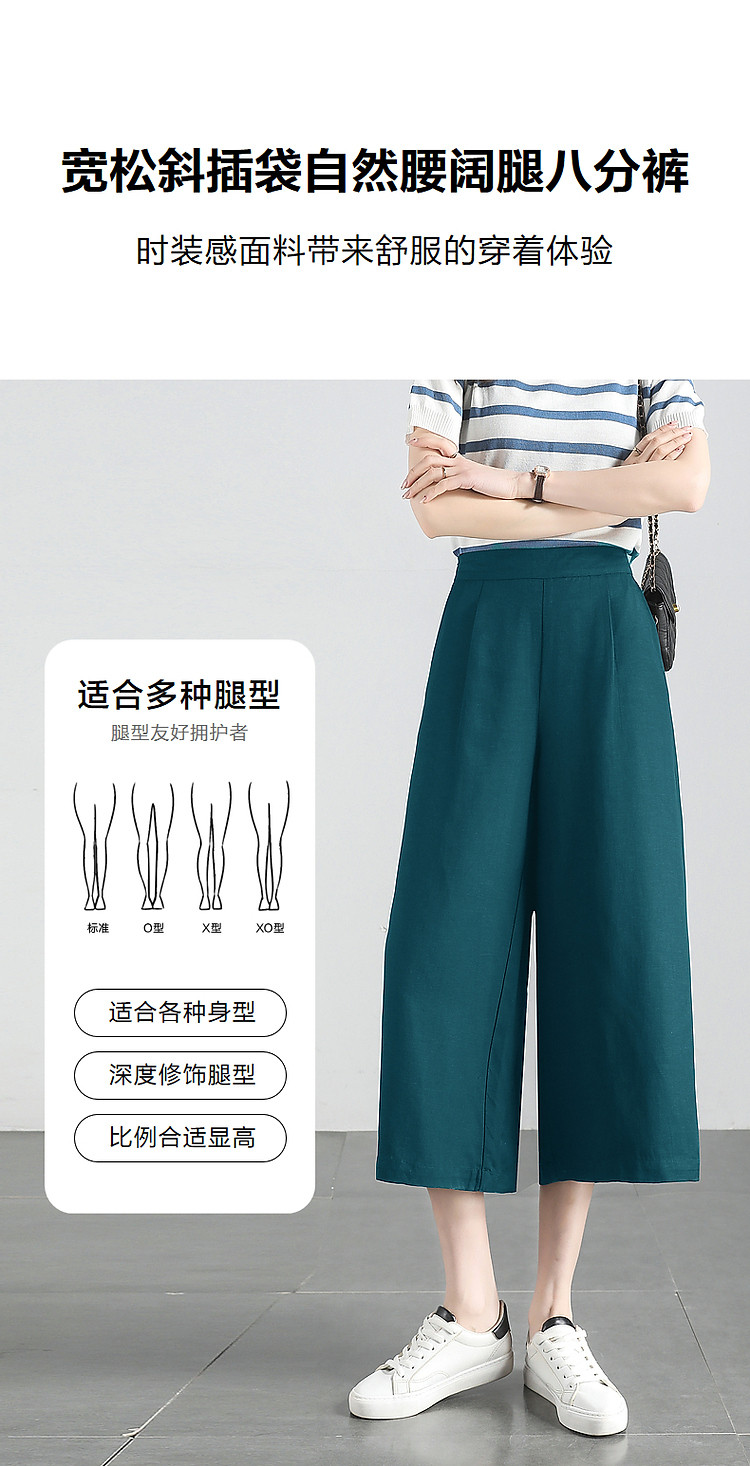 商品名称:【海盐薄荷】夏季含亚麻松弛感高腰阔腿裤小个子八分女式休闲裤 538625