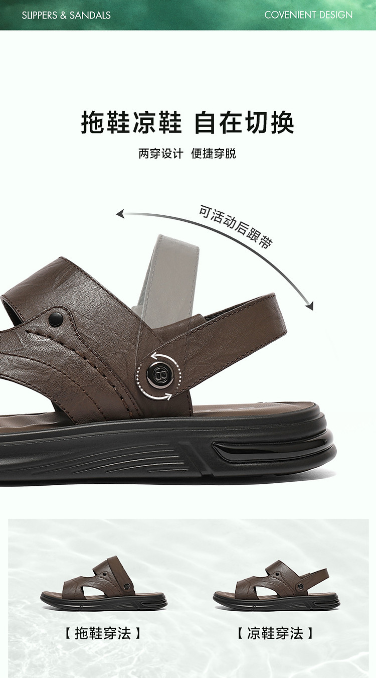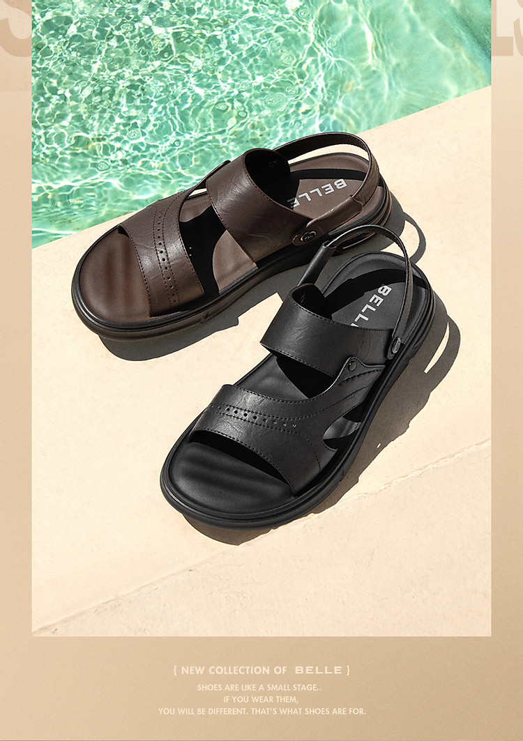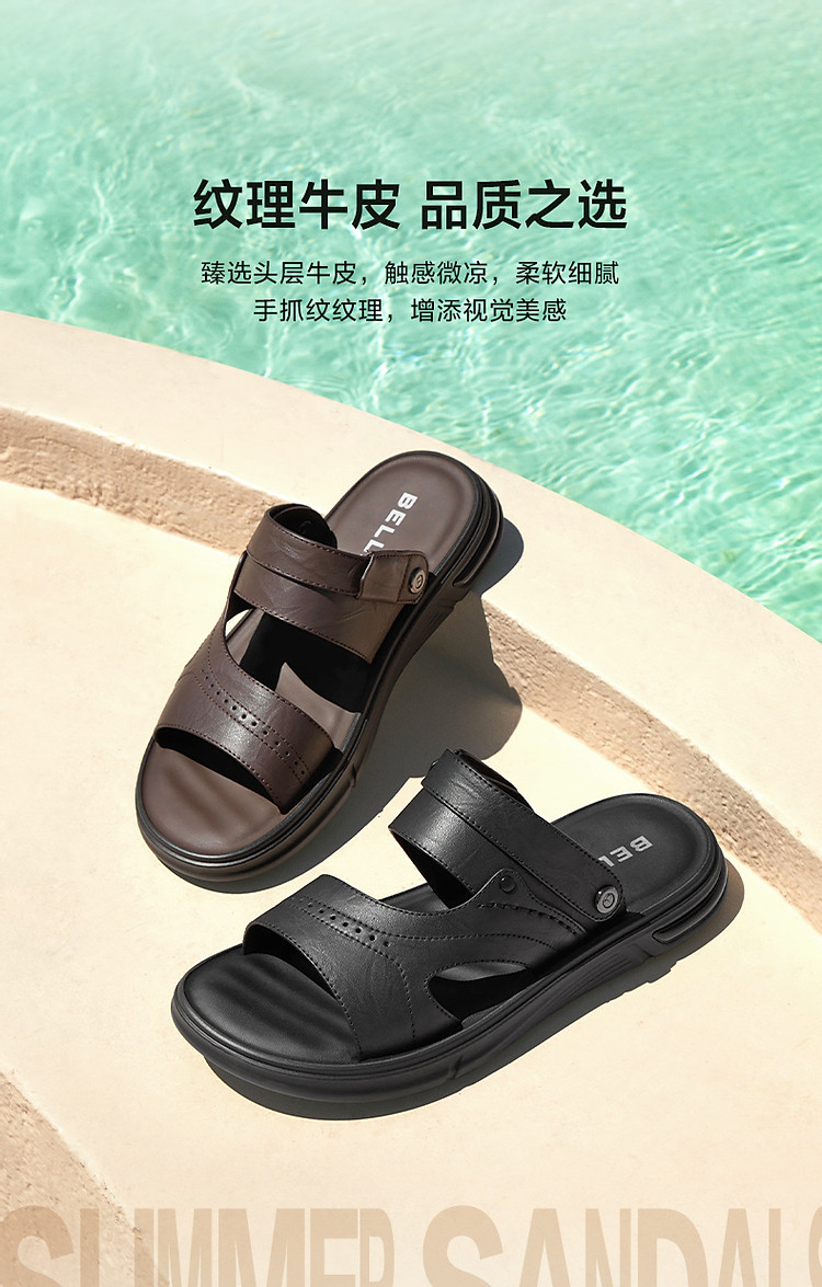 商品名称:百丽户外两穿凉拖男夏新商场同款牛皮革休闲沙滩凉鞋 492058